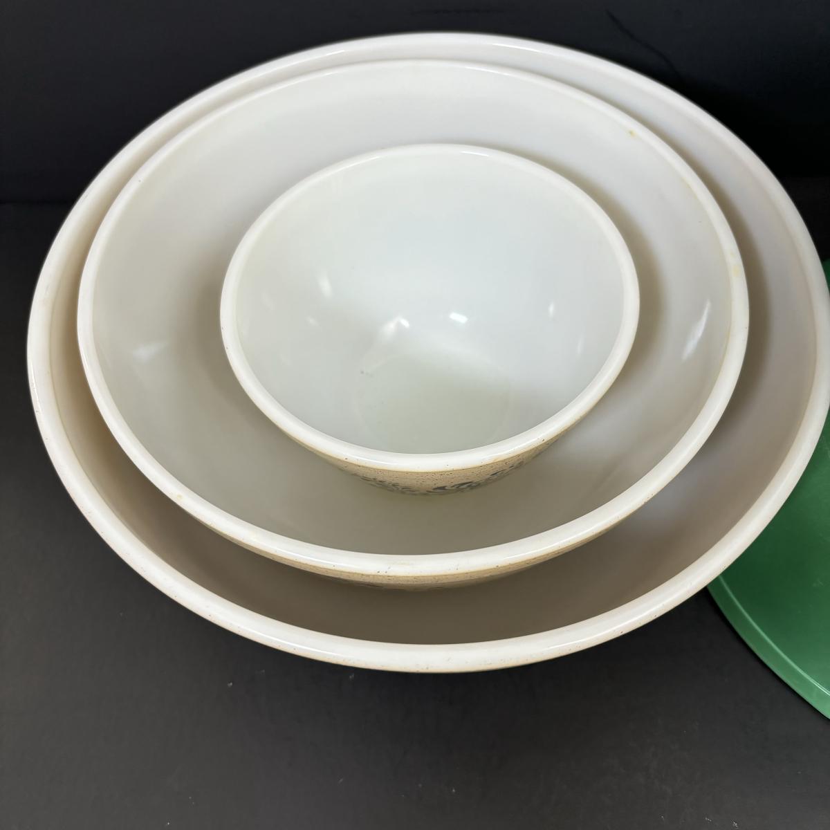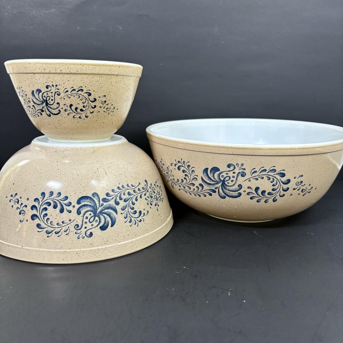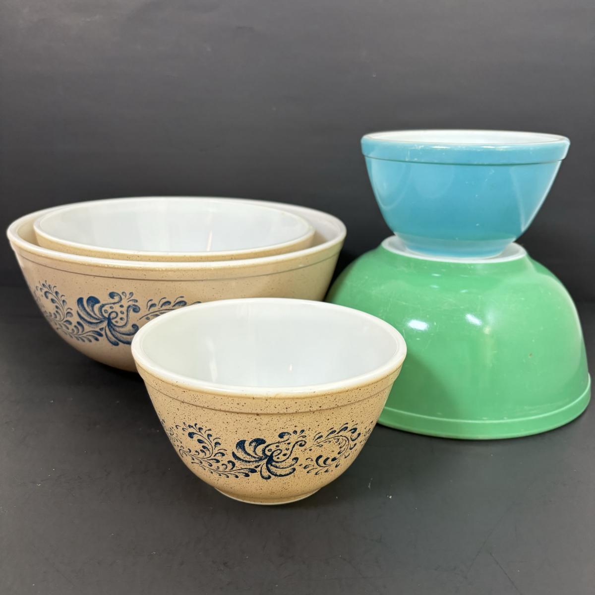 LOT 100: Vintage Pyrex Mixing Bowls: Homestead & Primary Colors