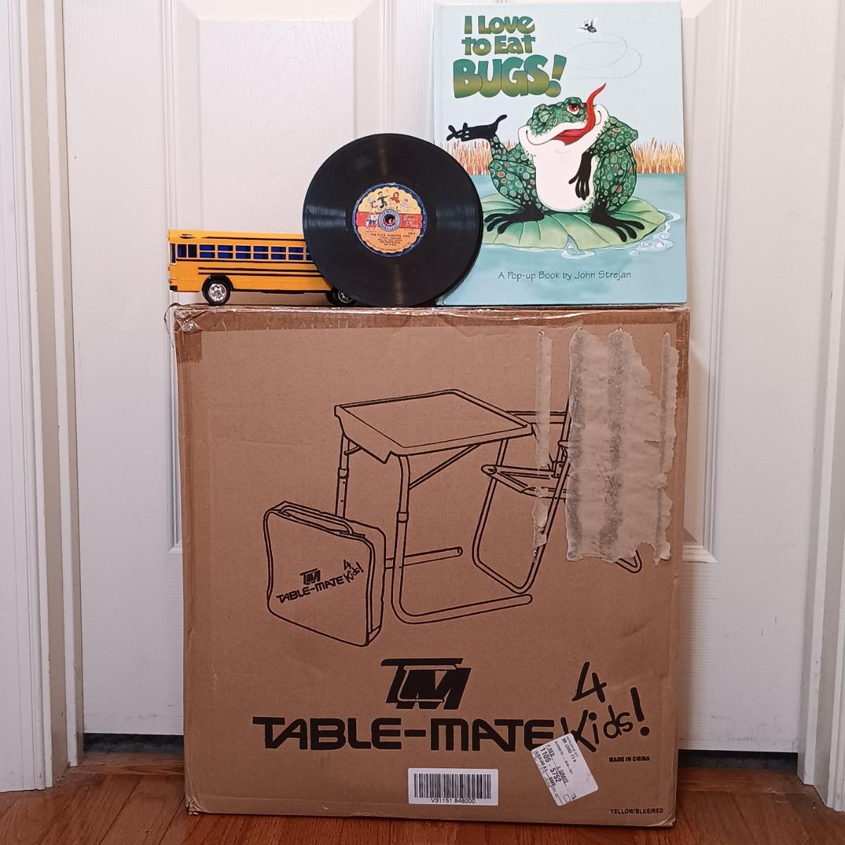 LOT 110: NIB Table Mate 4 Kids Portable Table with Vintage Children's Records, Pop-Up Book and Bus Bank