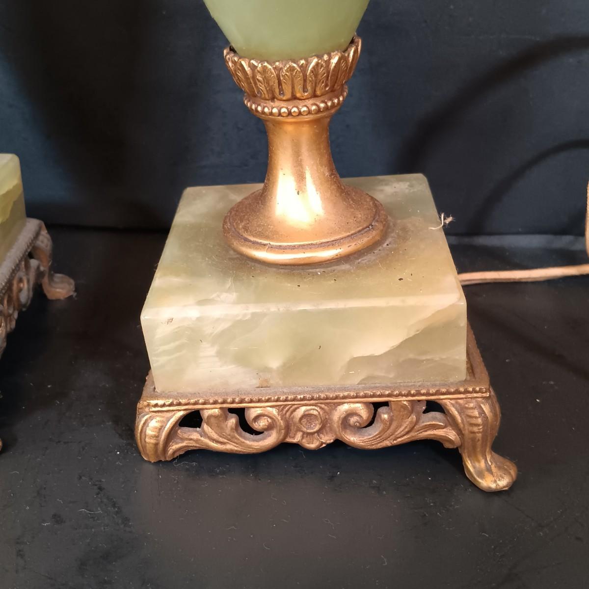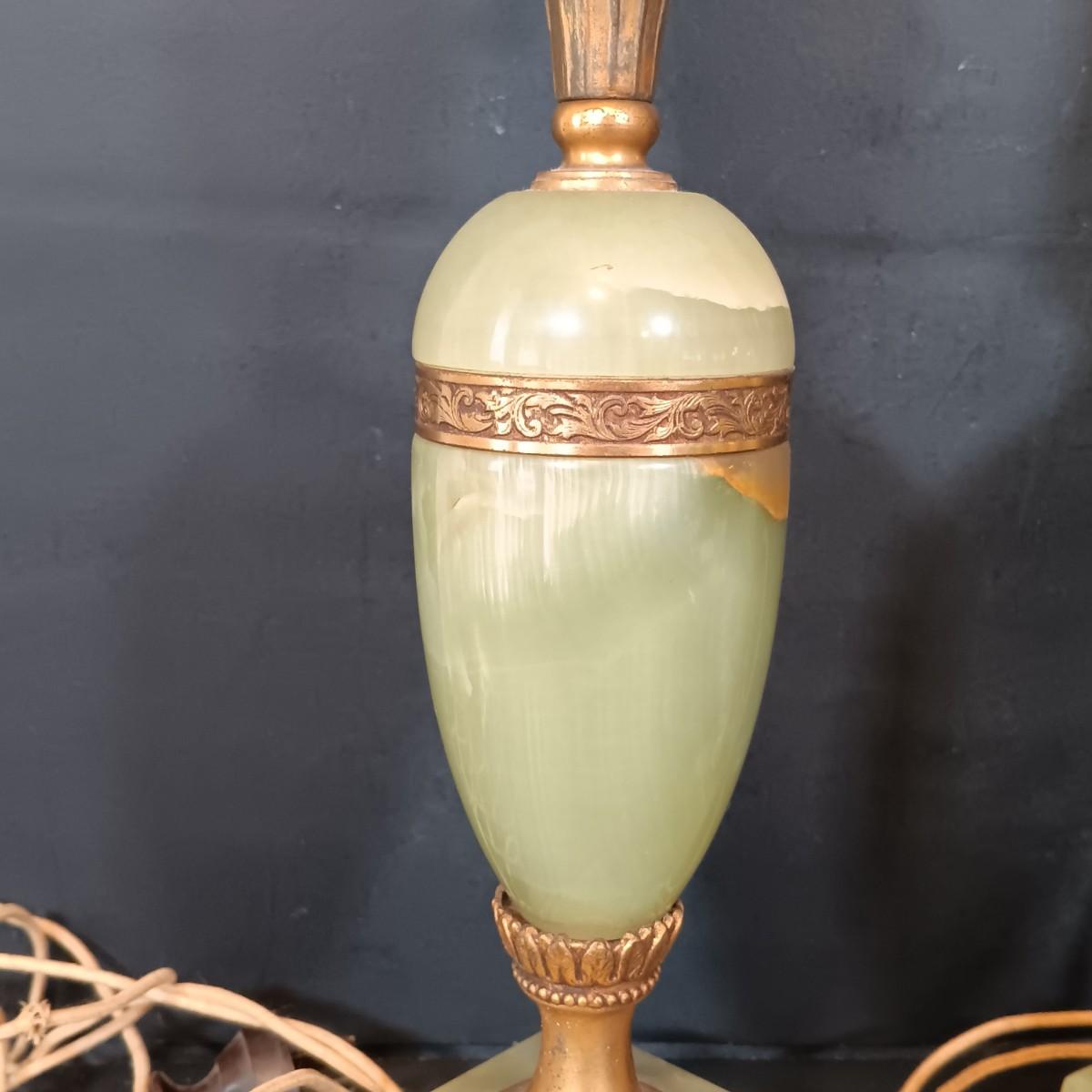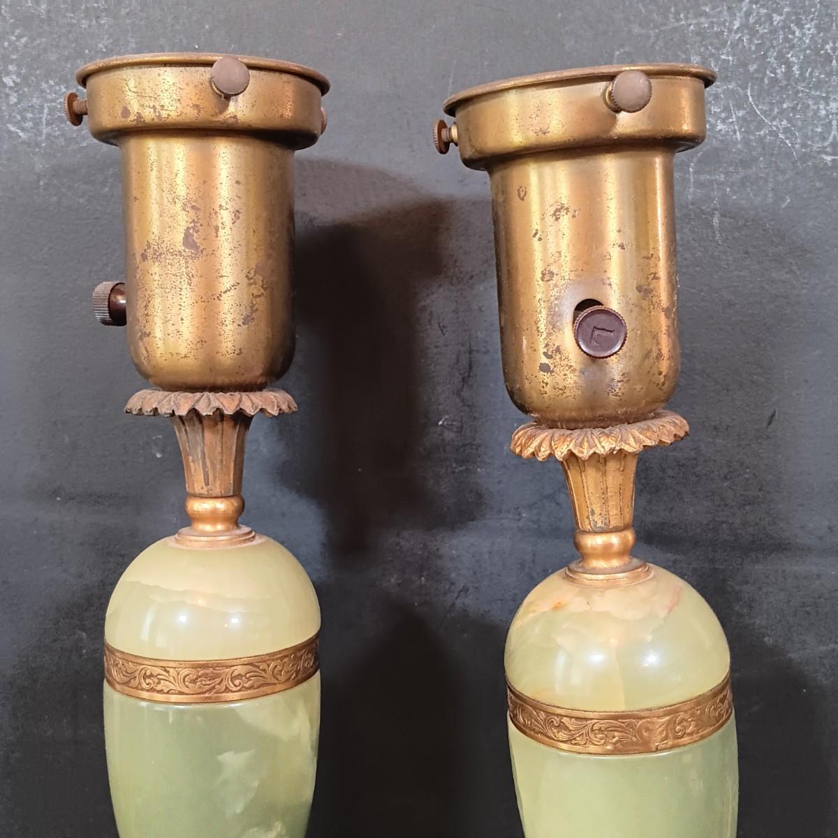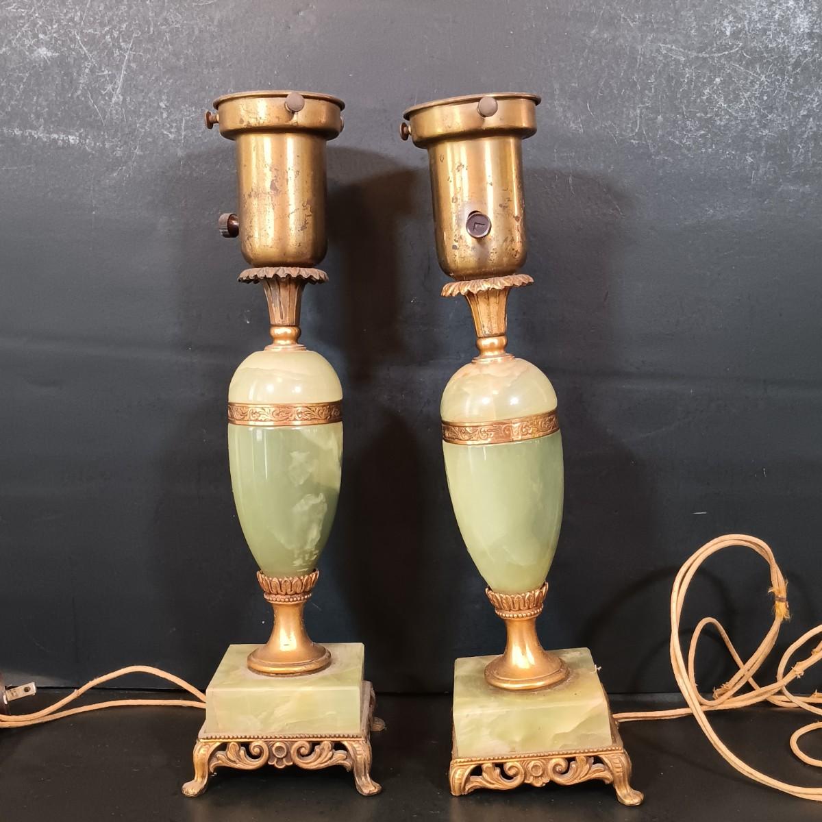 LOT 116: Vintage Green Onyx and Metal Lamps
