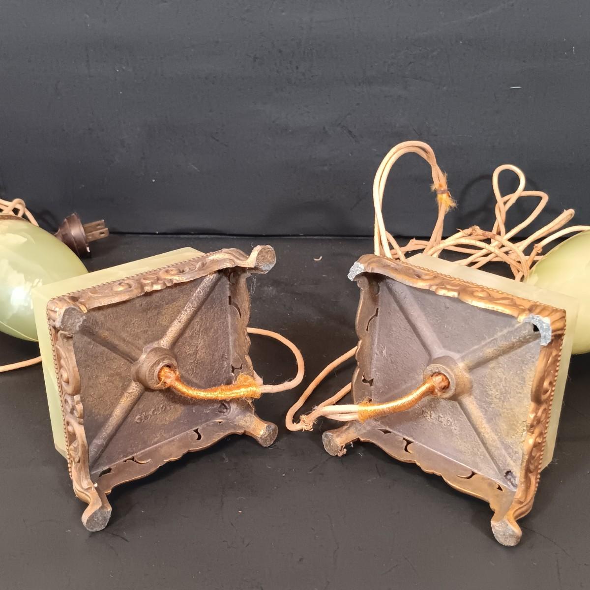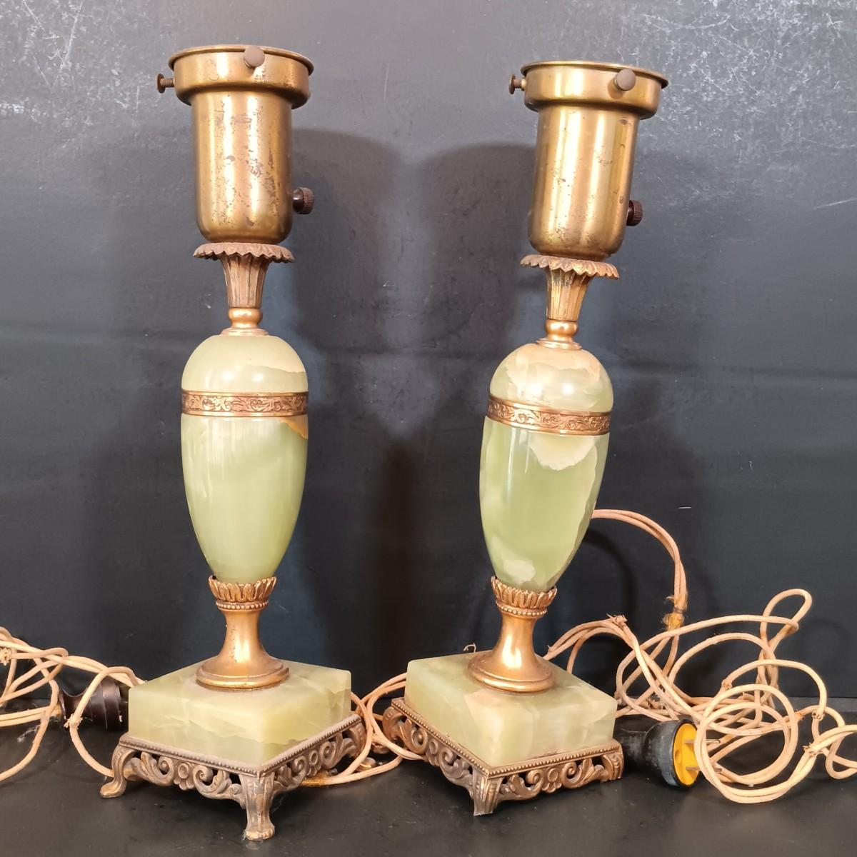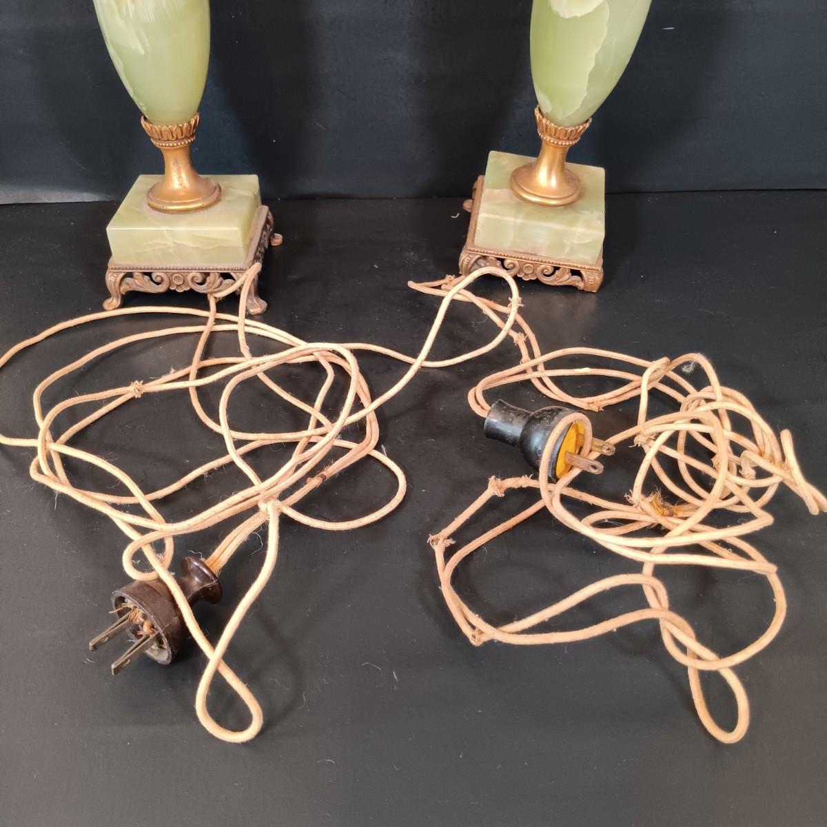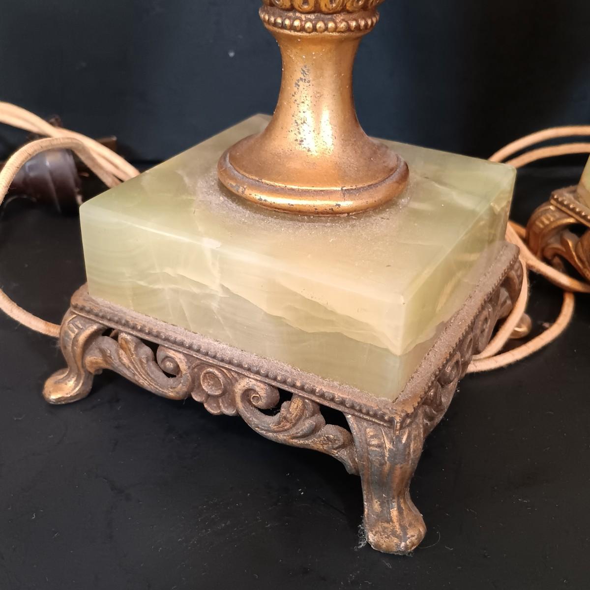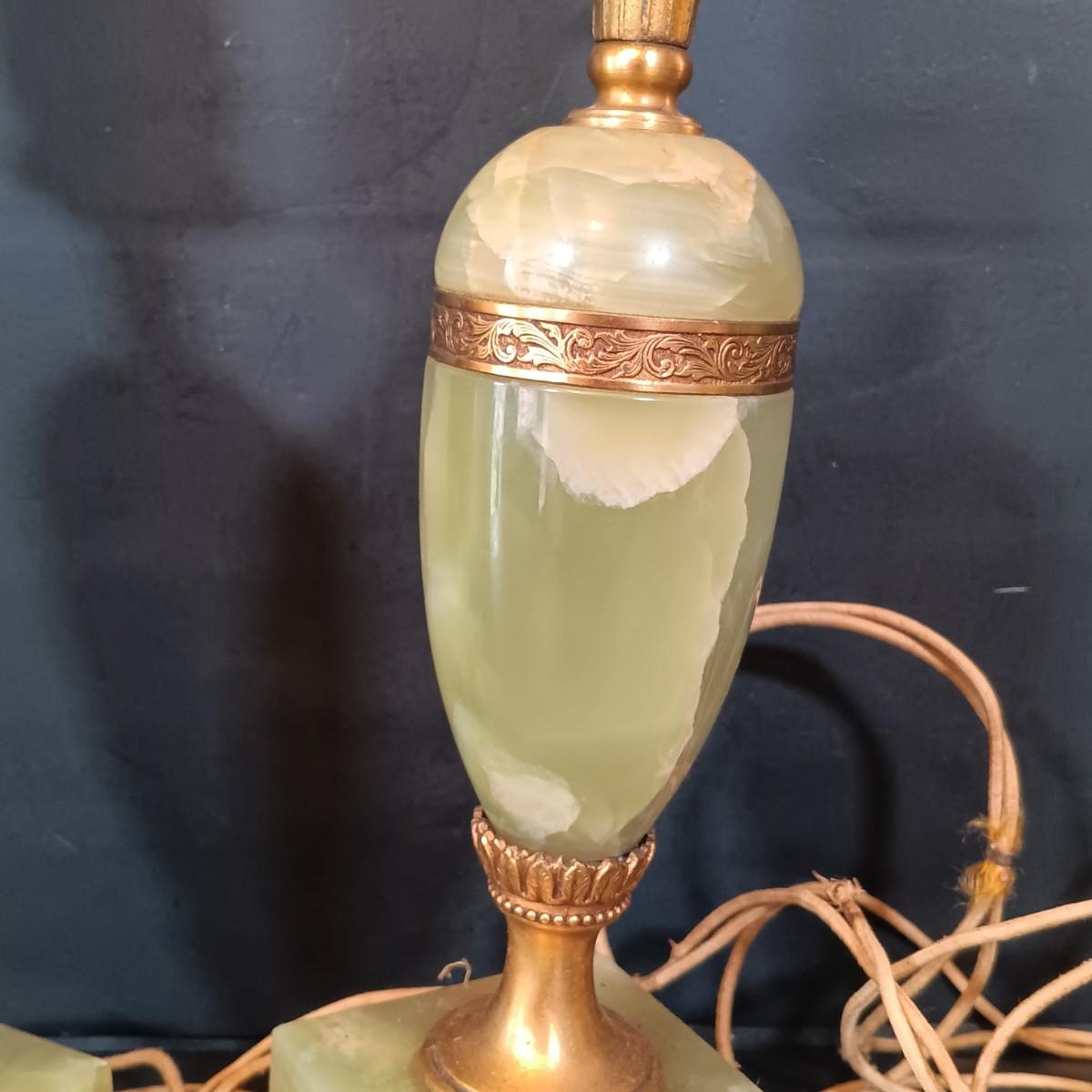 LOT 116: Vintage Green Onyx and Metal Lamps