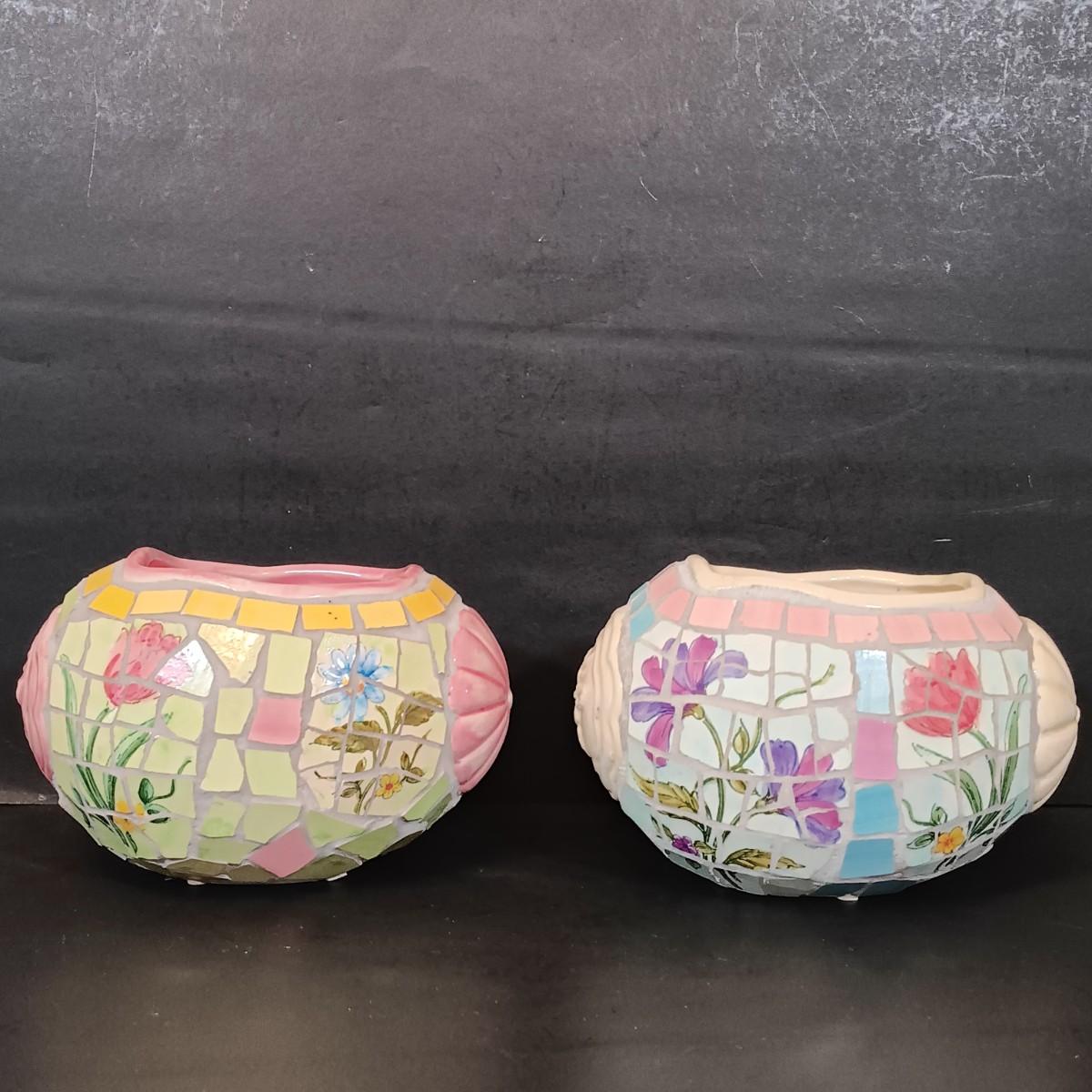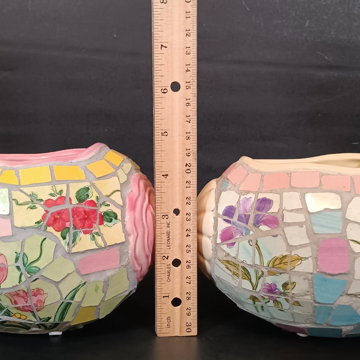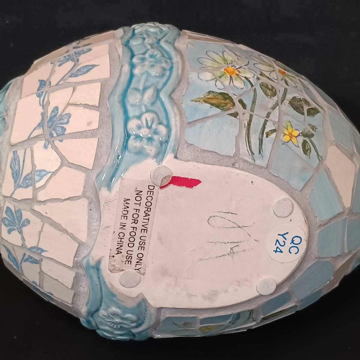 LOT 118: Handcrafted Mosaic Tile Rooster and Egg Planters