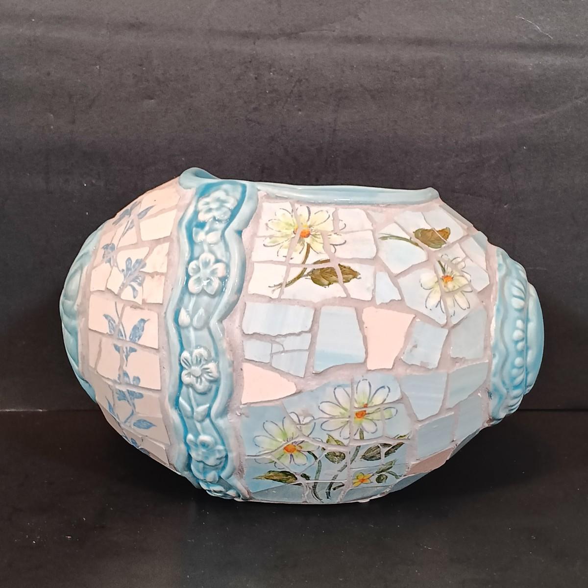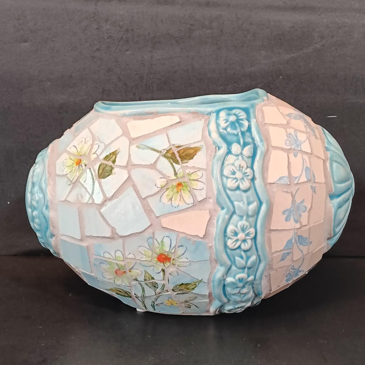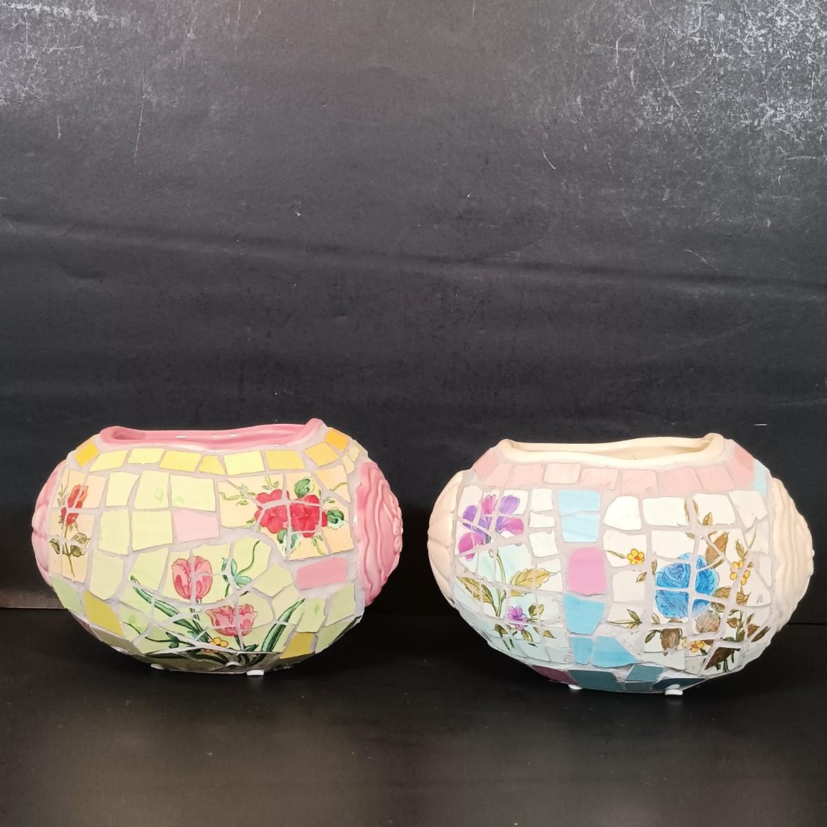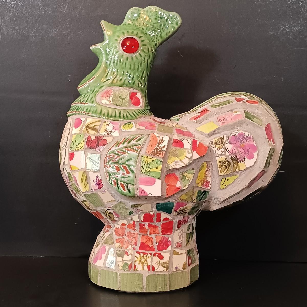 LOT 118: Handcrafted Mosaic Tile Rooster and Egg Planters
