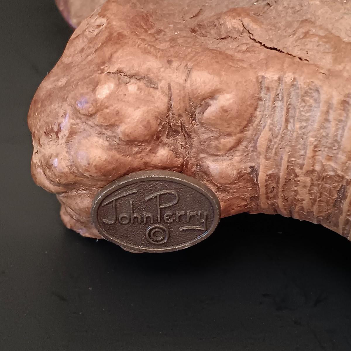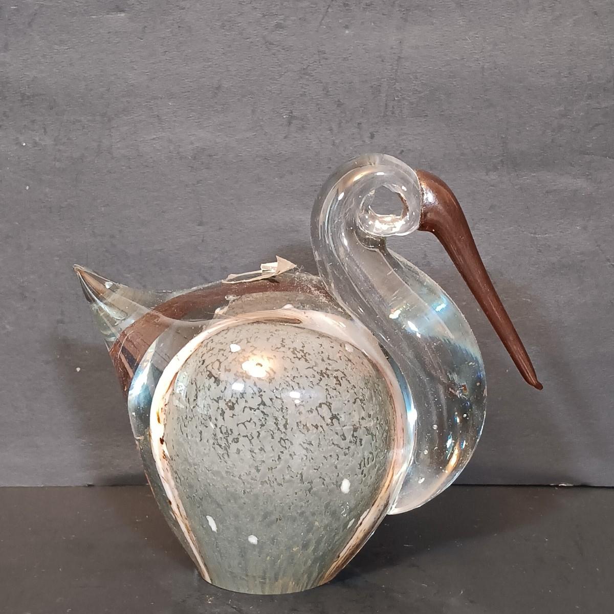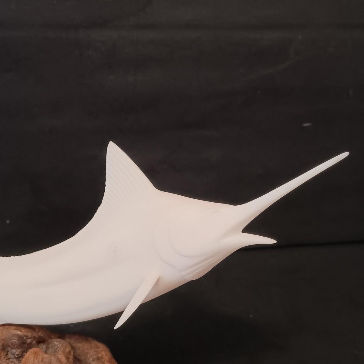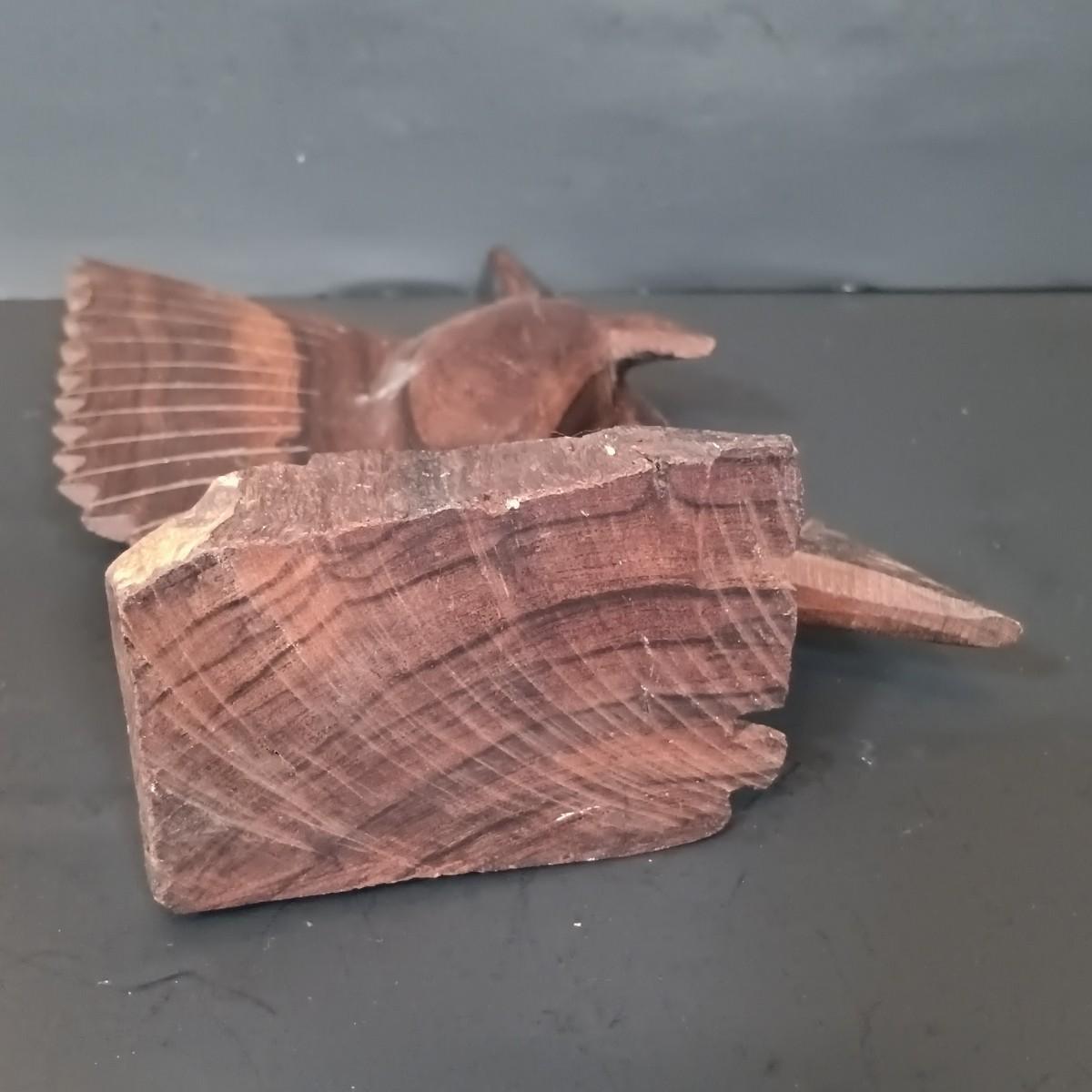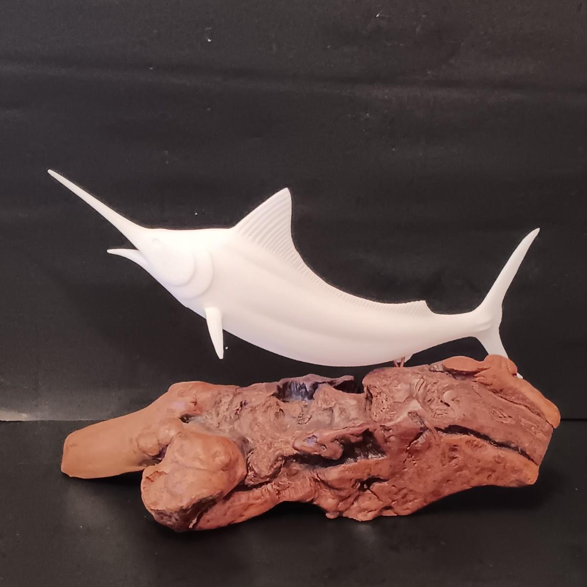 LOT 123: Vintage John Perry Swordfish Sculpture, HQT Glass Bird, Hand Carved Wood Swordfish & Large Red Abalone Shell
