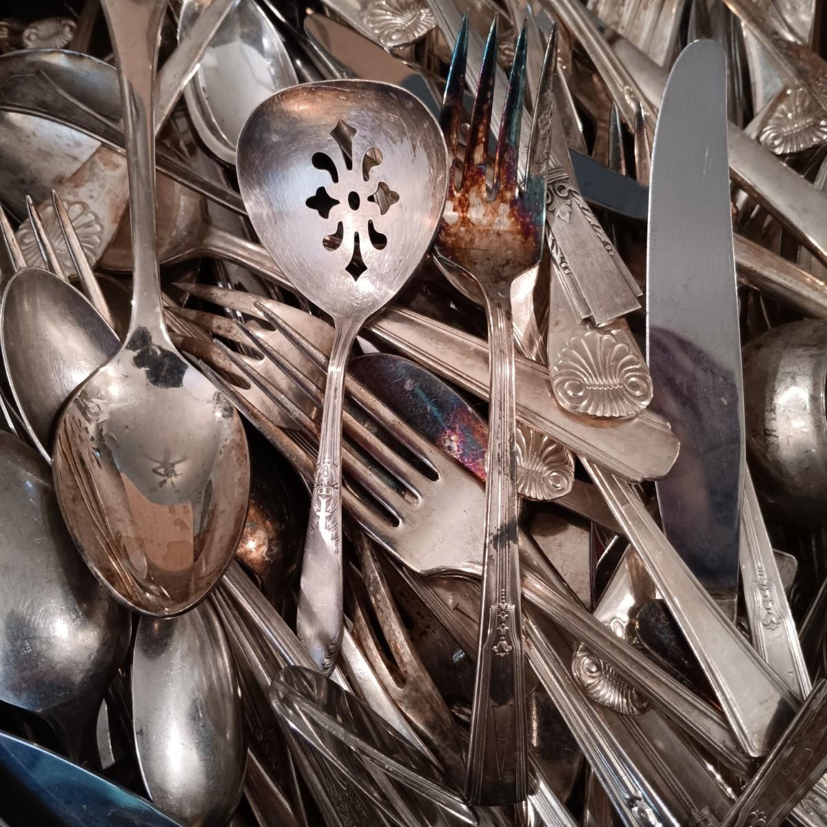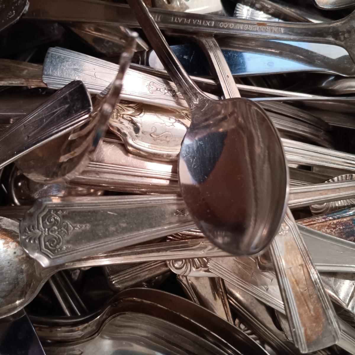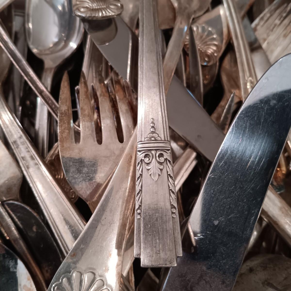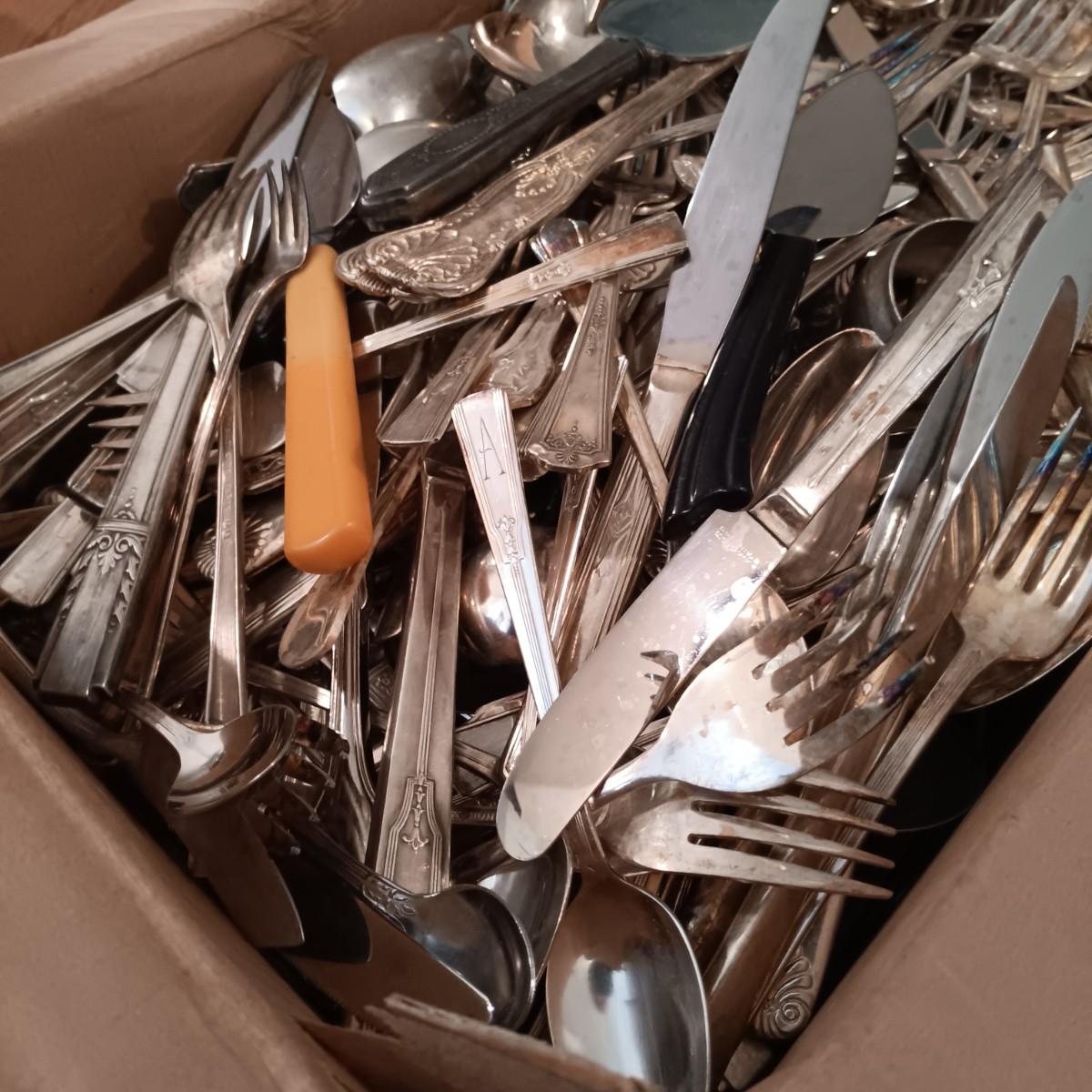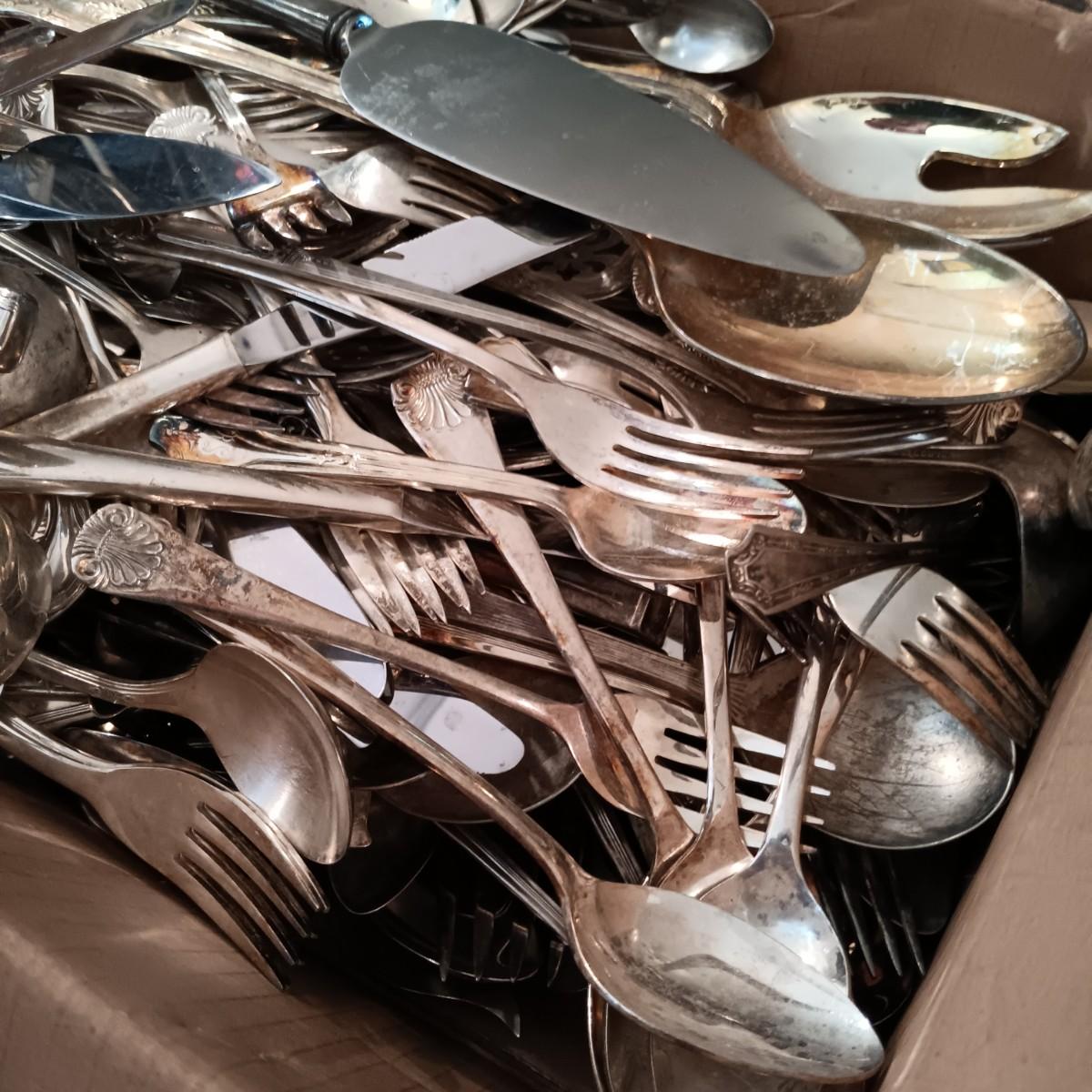 LOT 124: Large Mixed Lot of Vintage Silver Plate and Stainless Steel Flatware