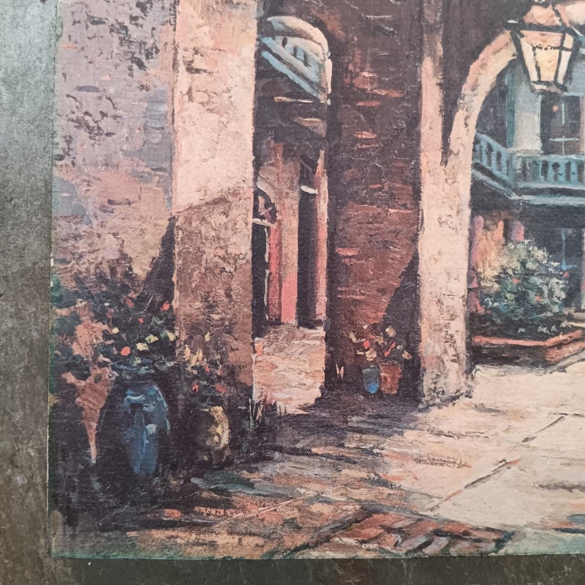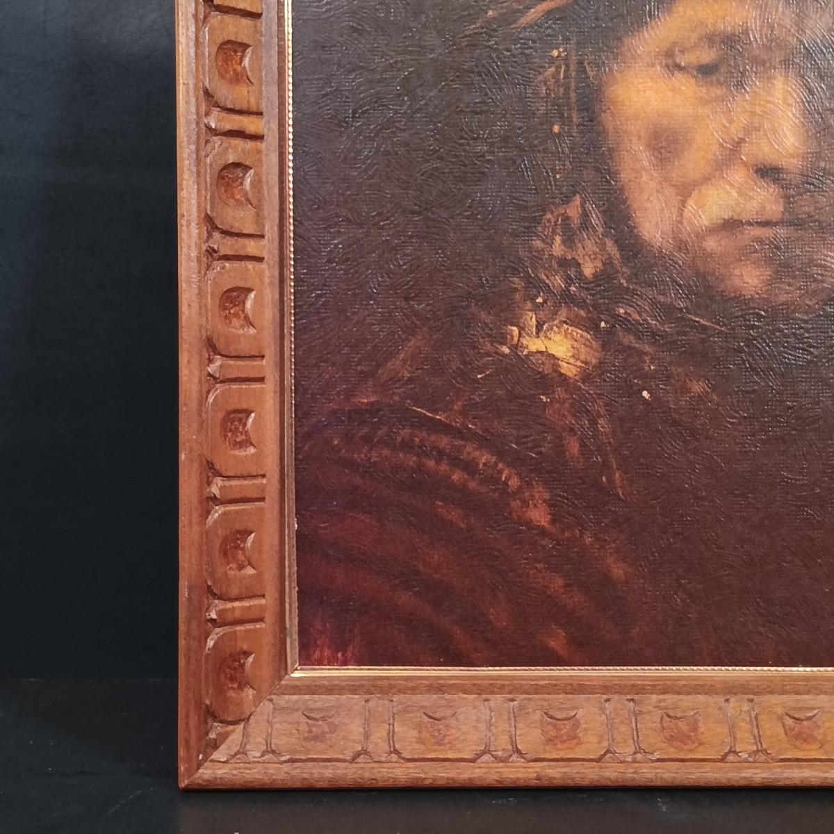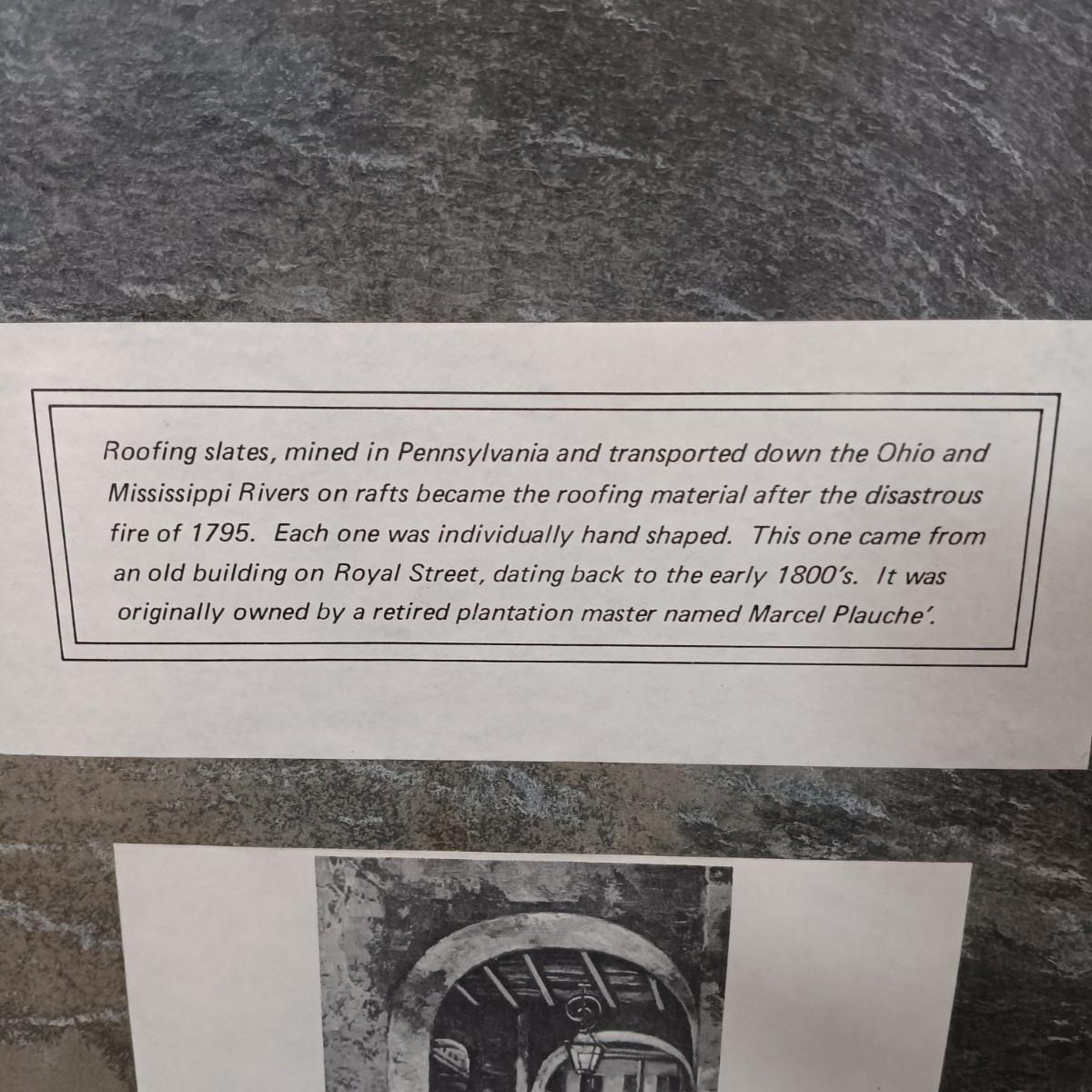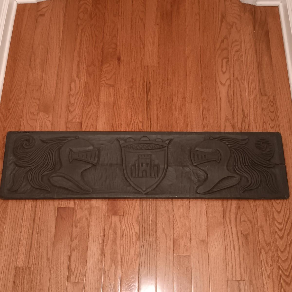 LOT 127: Antique Roofing Slate with Vintage Print, 'The Man With the Golden Helmet' Framed Print & Handcarved Wood Medieval Decor