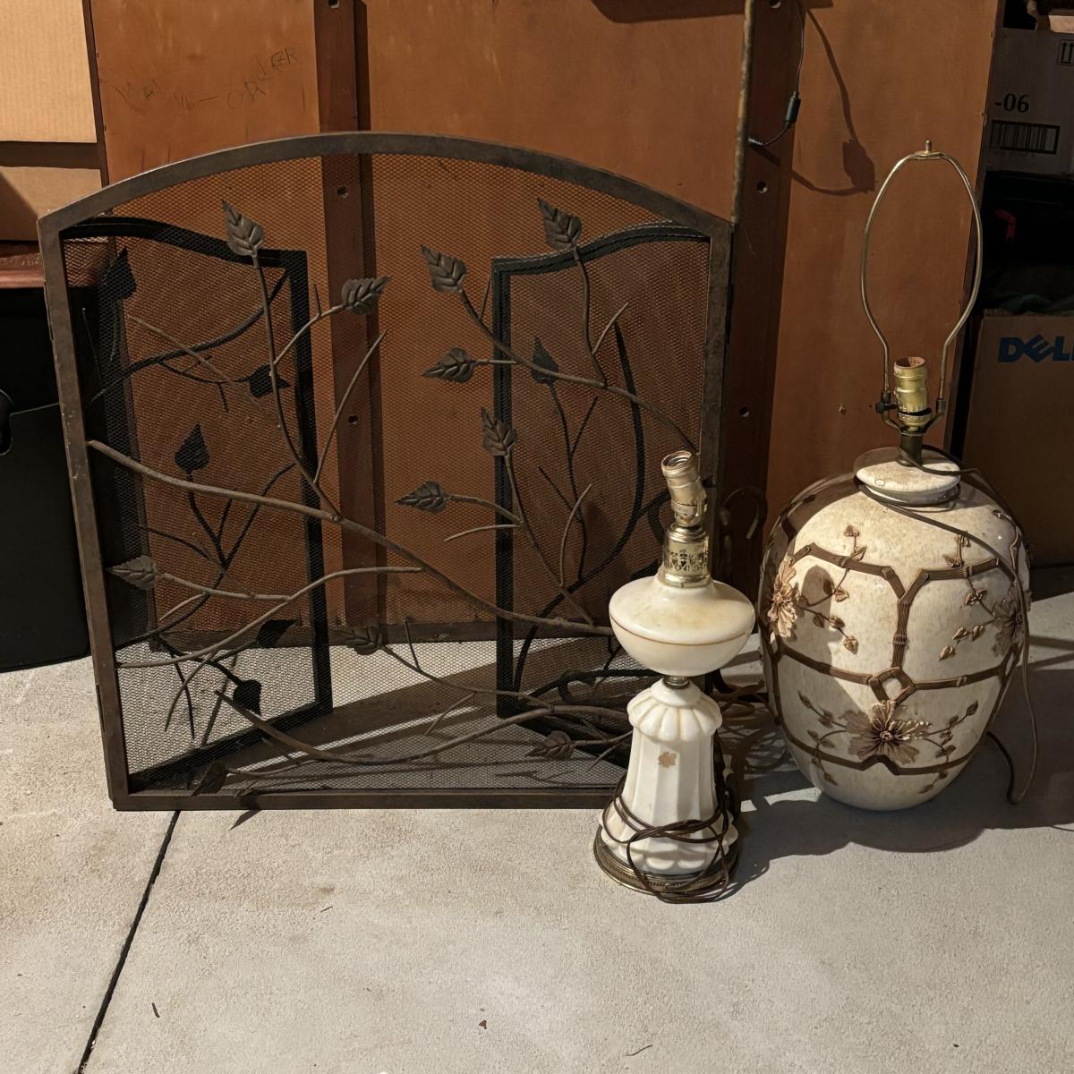 LOT 500/130: Fireplace Screen, Lamps and Floor Lamp