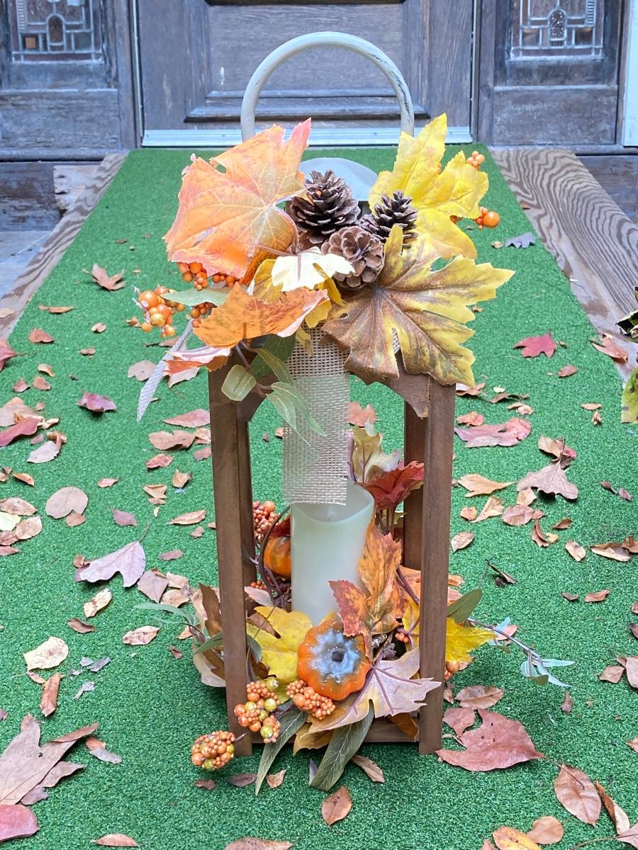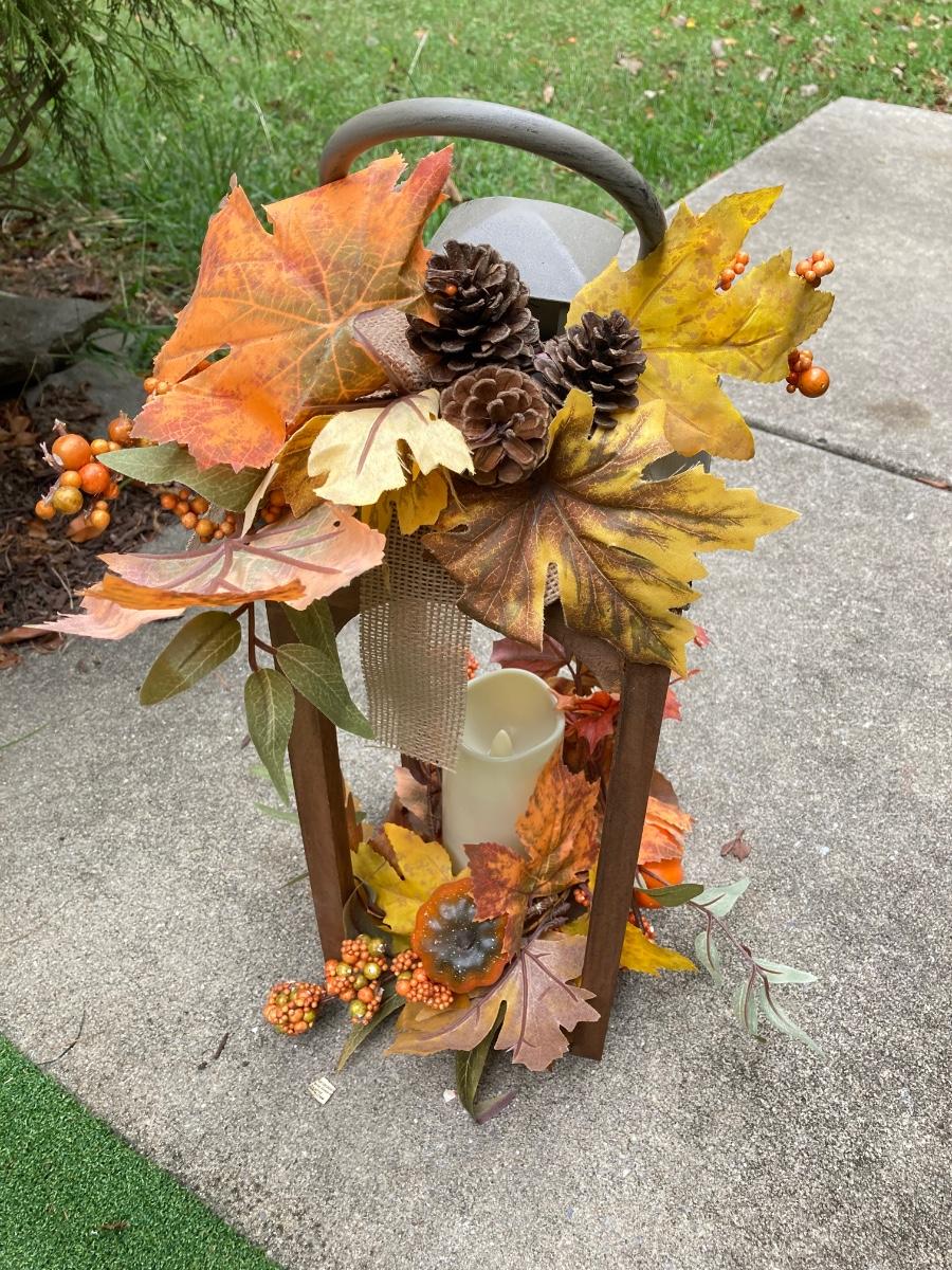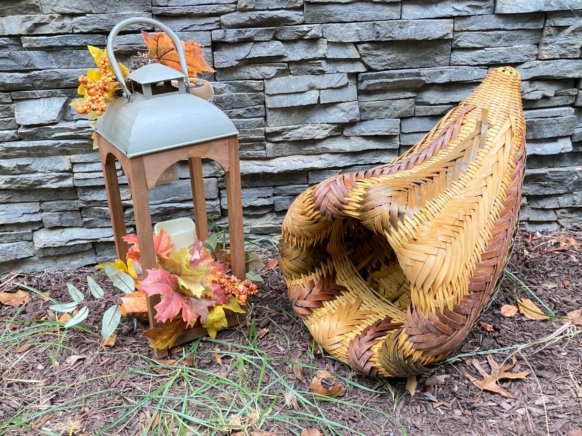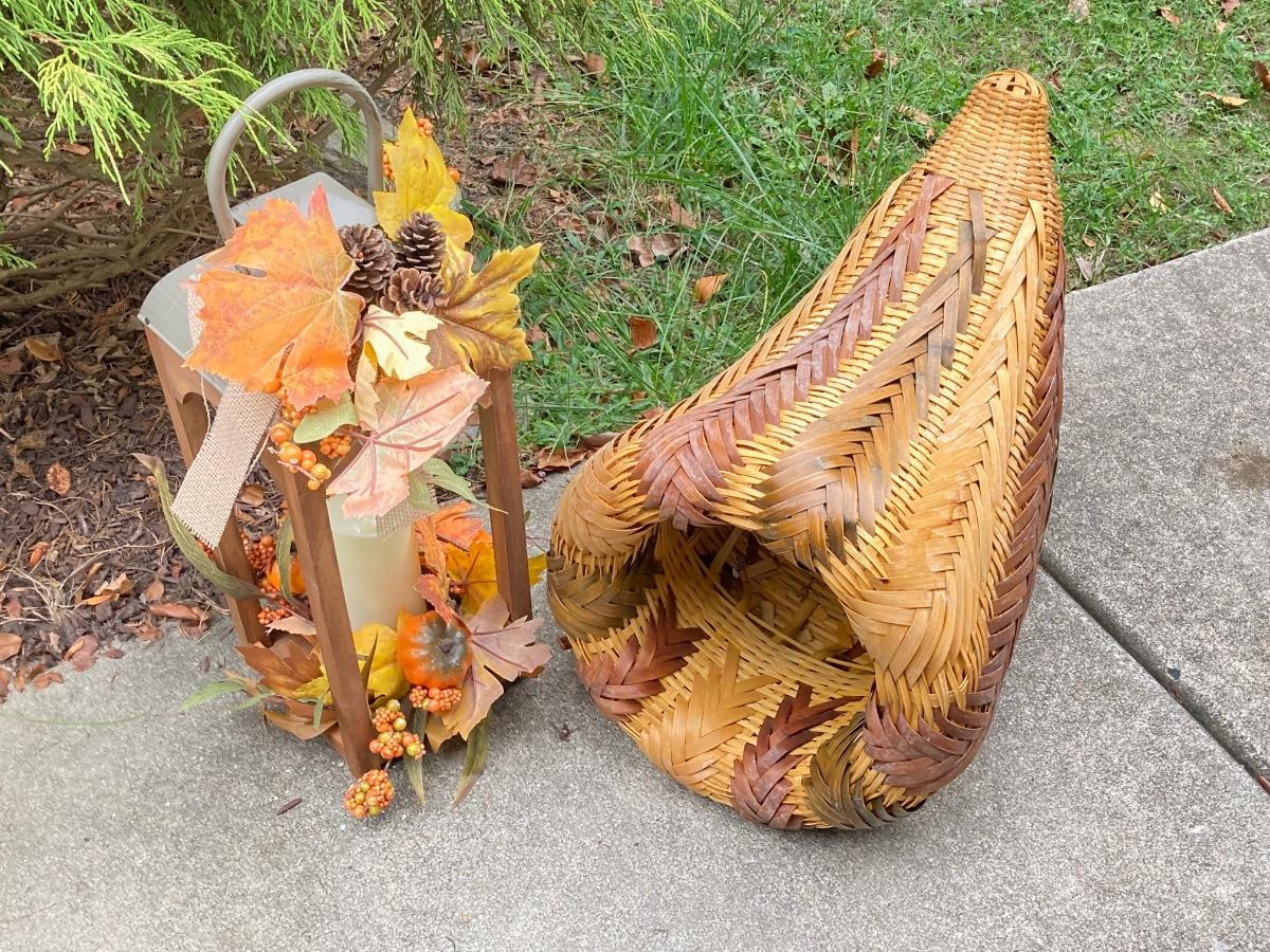 LOT 146G: Fall Decor - Weaved Cornucopia and Lantern Candle Holder