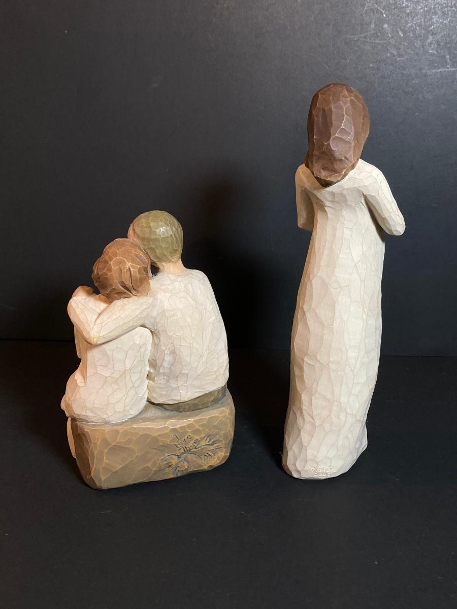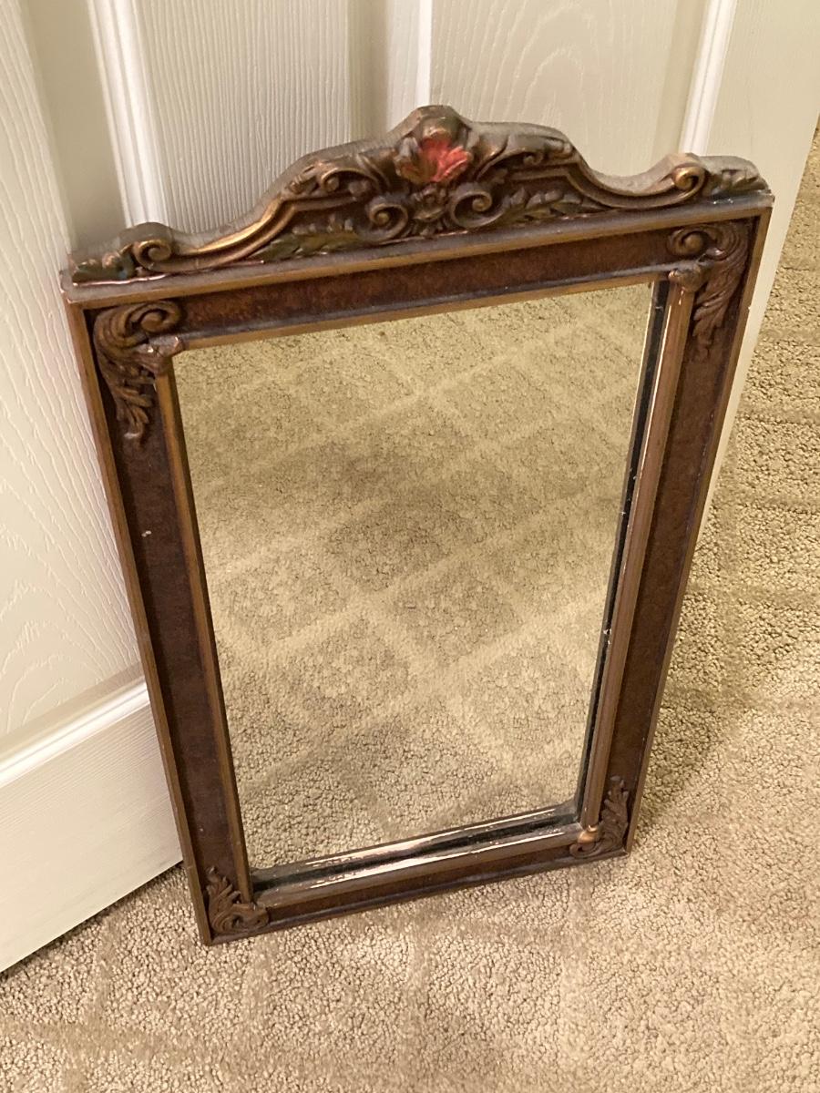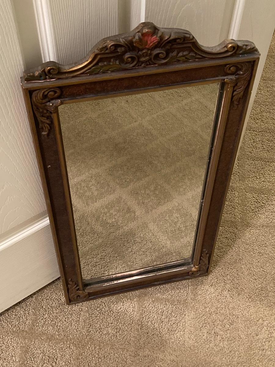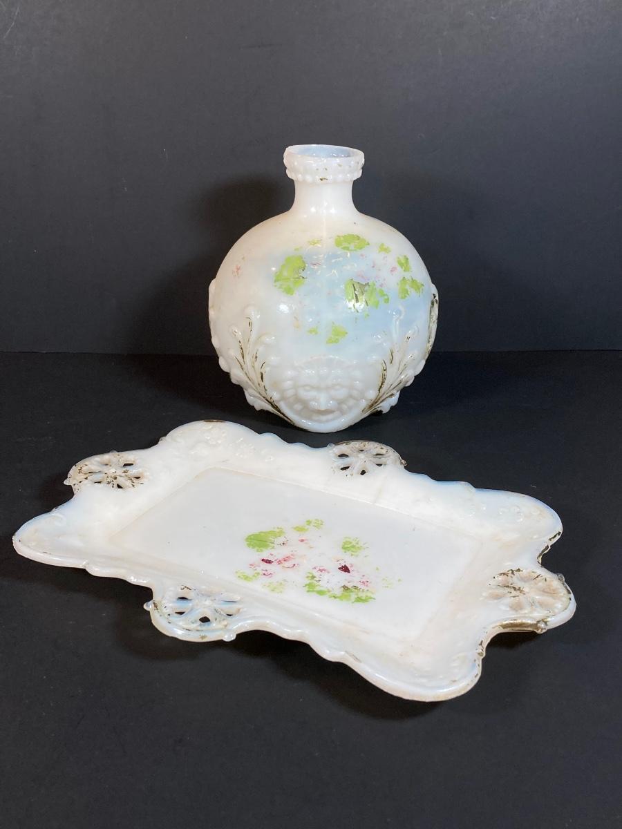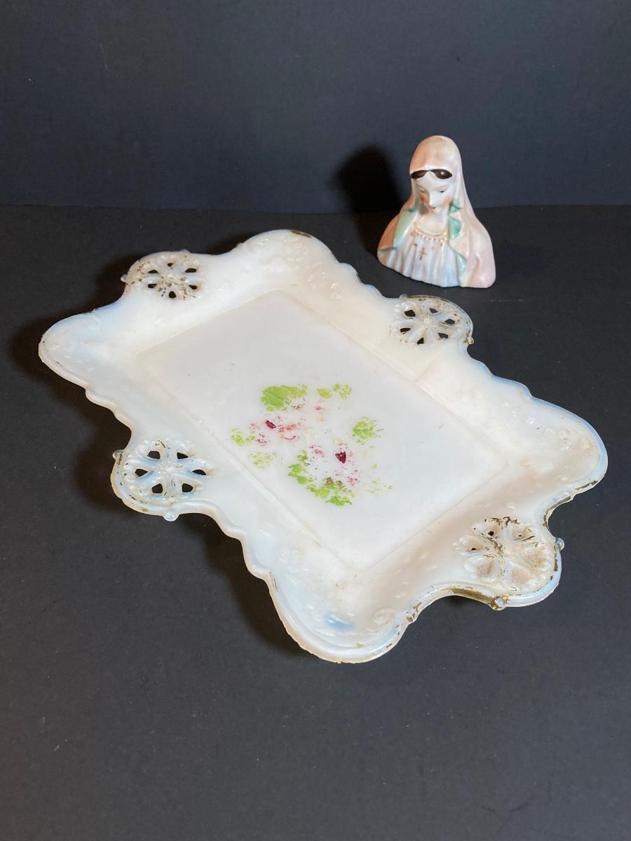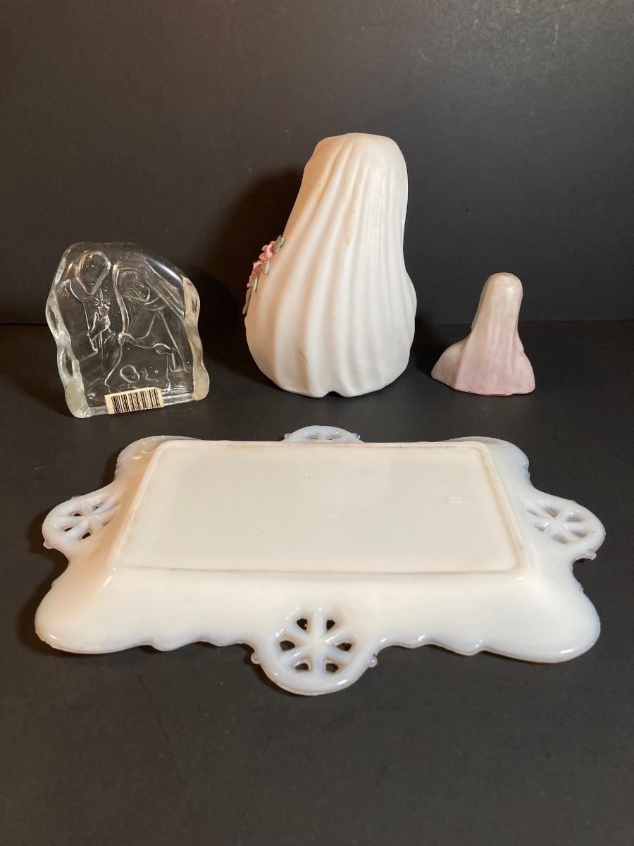 LOT 148L: Collection of Vintage Home Decor - Victorian Milk Glass, Carved Wood Wall Mirror, Willow Tree Figurines and More