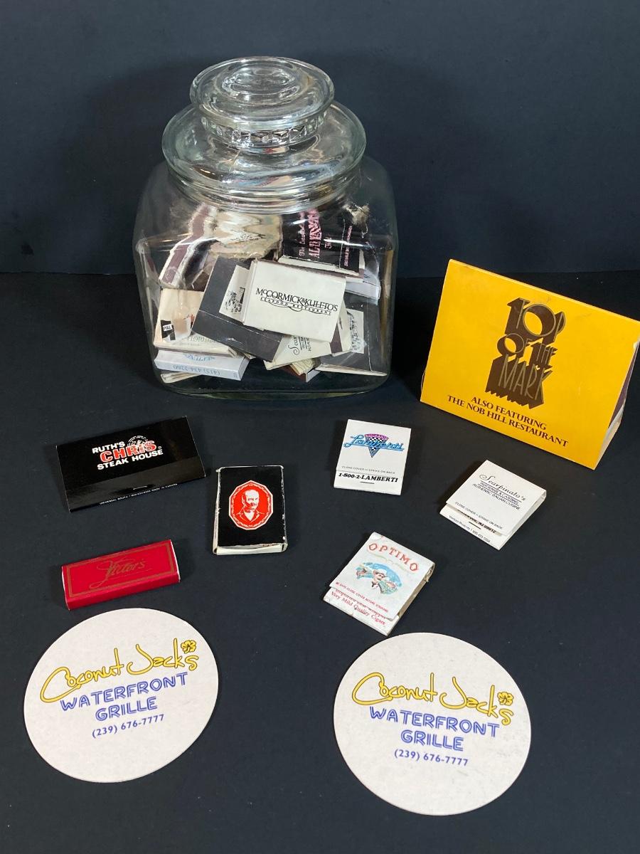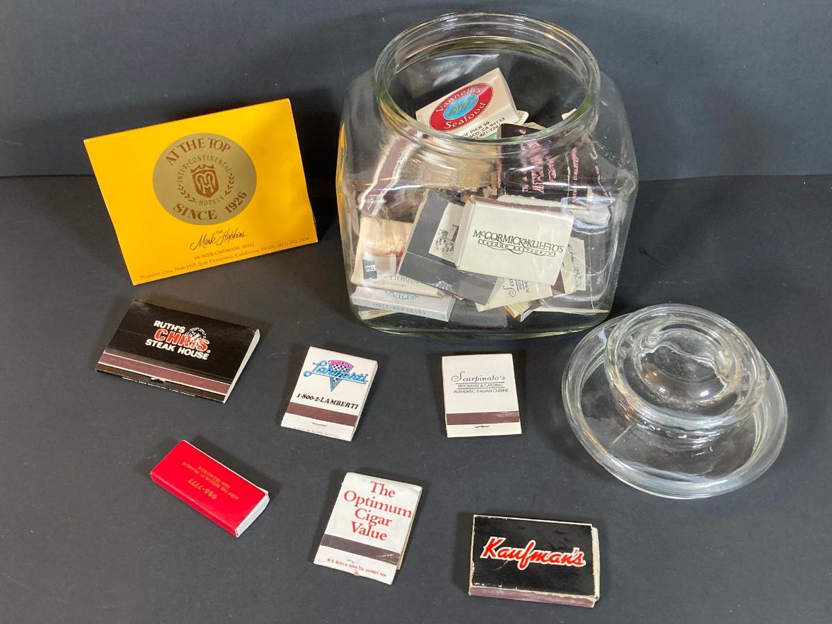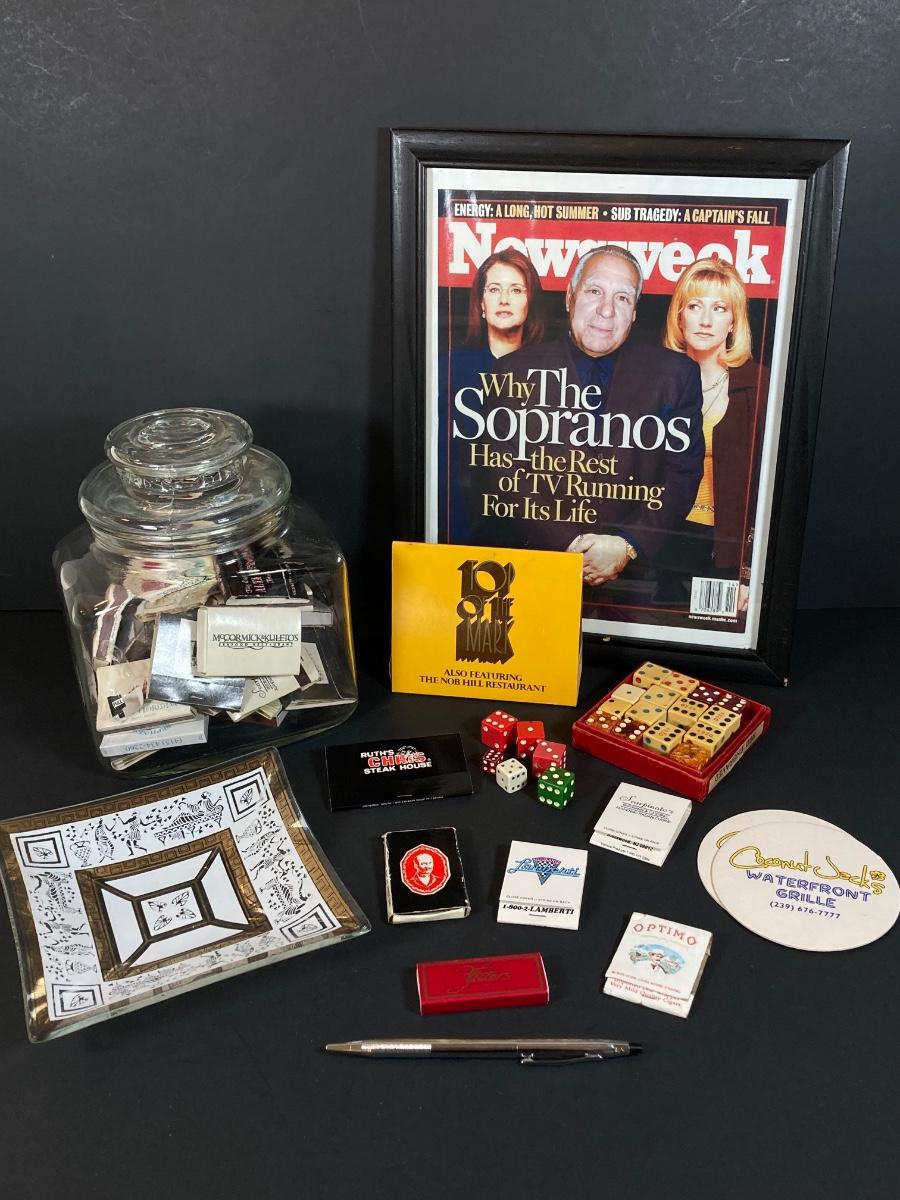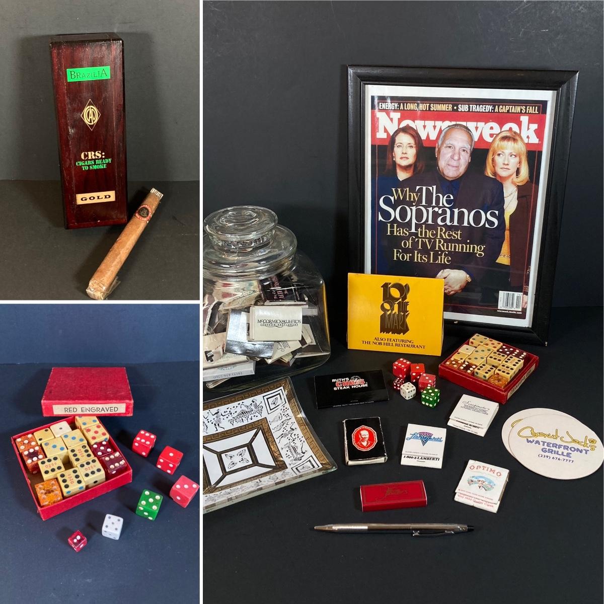 LOT 150L: Vintage Collection of Matchbooks, Cross Pen, Dice, Tobacco Jar, Ashtray and More