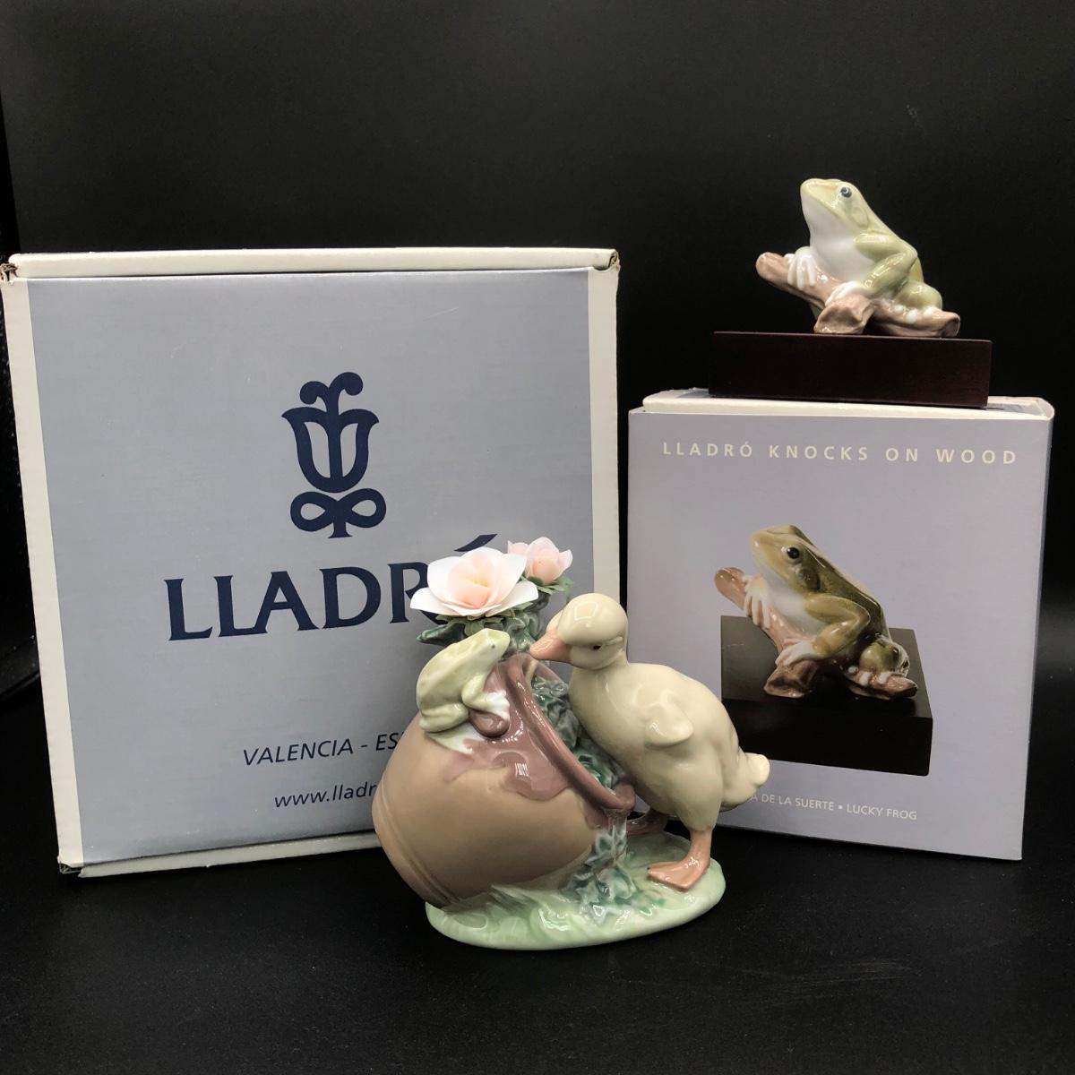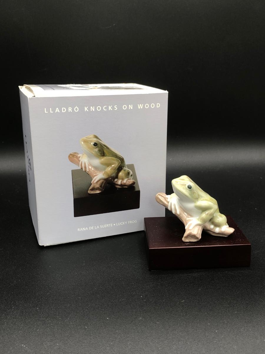 LOT 14L: 2003 Lladró ¿Tu por Aqui? / How Are You? #010.08025 & 2005 Knocks on Wood Rana de la Suerte / Lucky Frog #0101.8037 - Both w/ Original Boxes