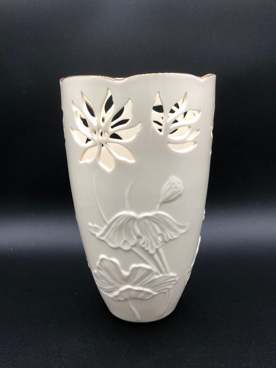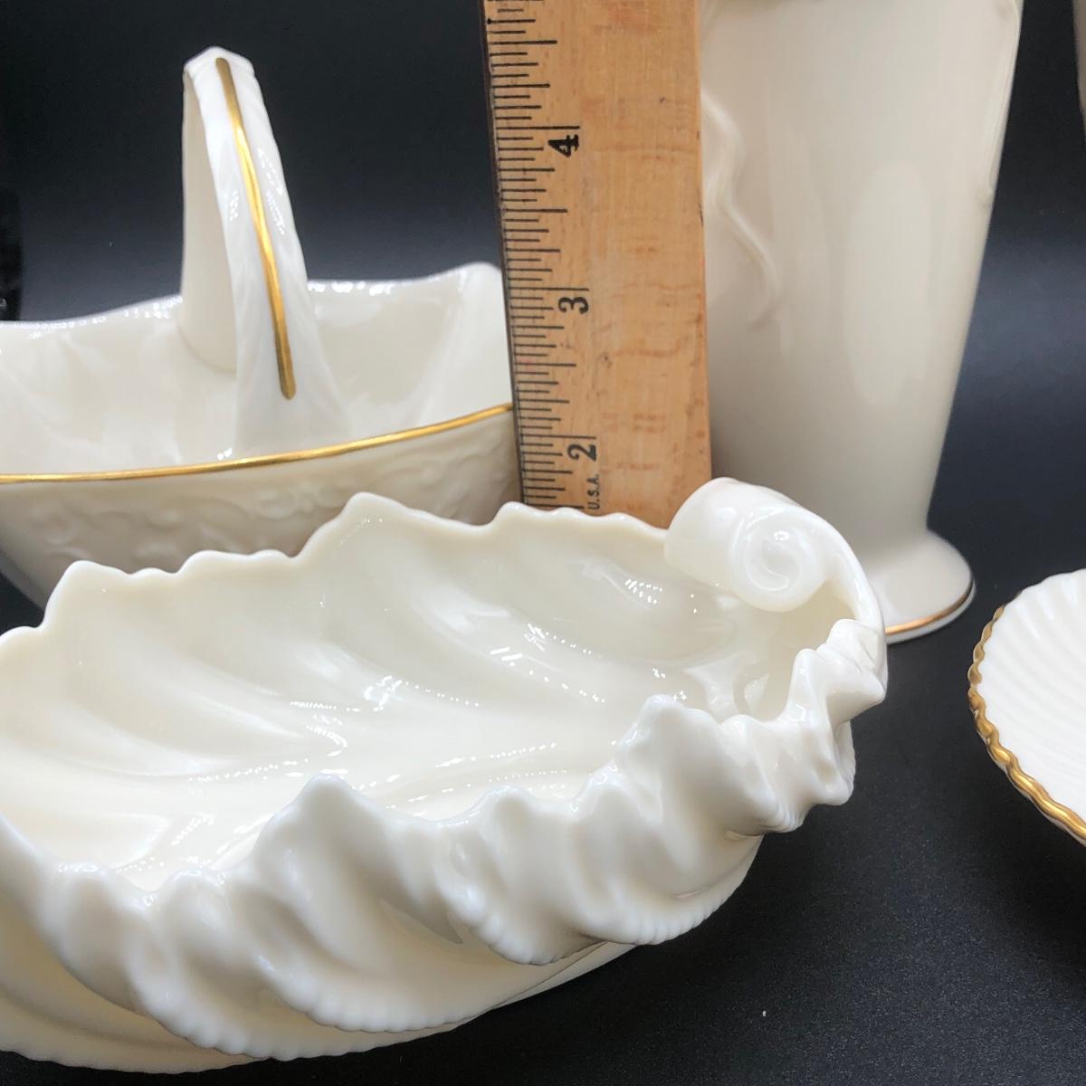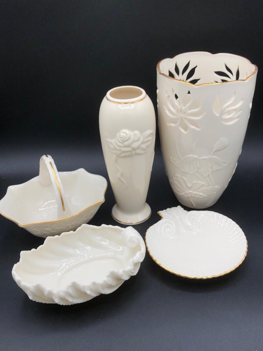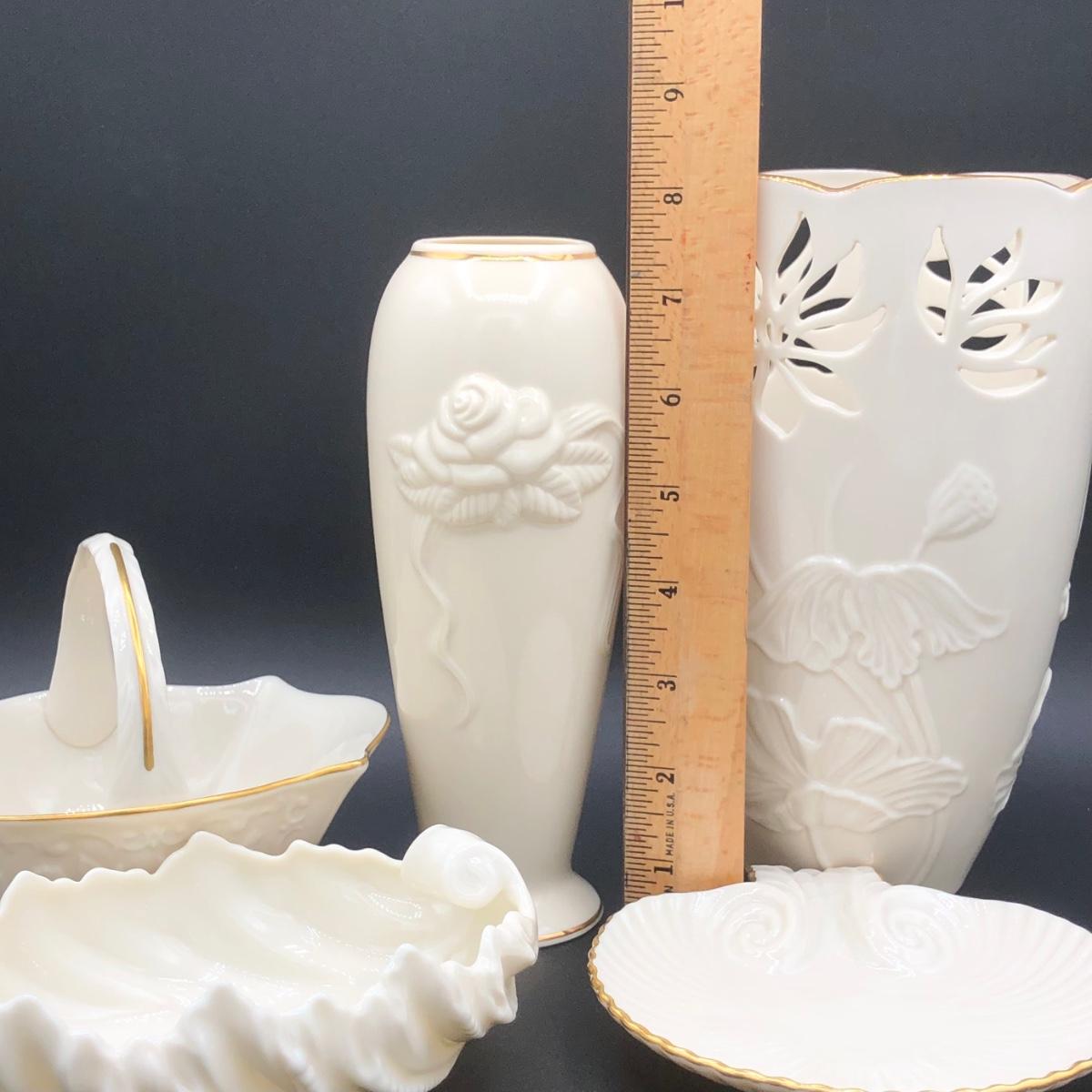 LOT 17L: Lenox Collection - Westbury Pierced Flower Vase, Rose Blossom Bud Vase, Aegean Shell Dish, Sans Souci Basket & Vintage Acanthus Leaf Bowl
