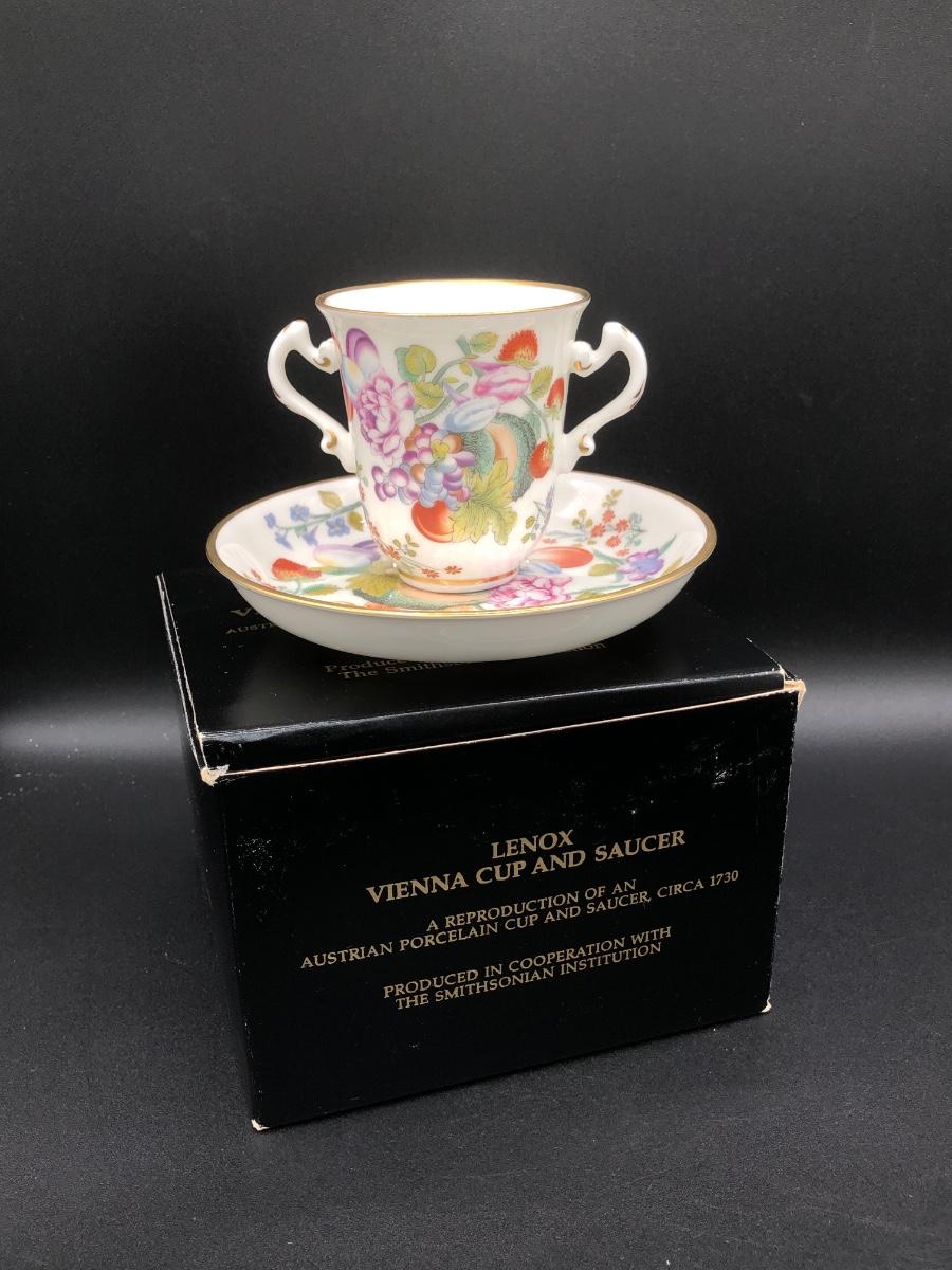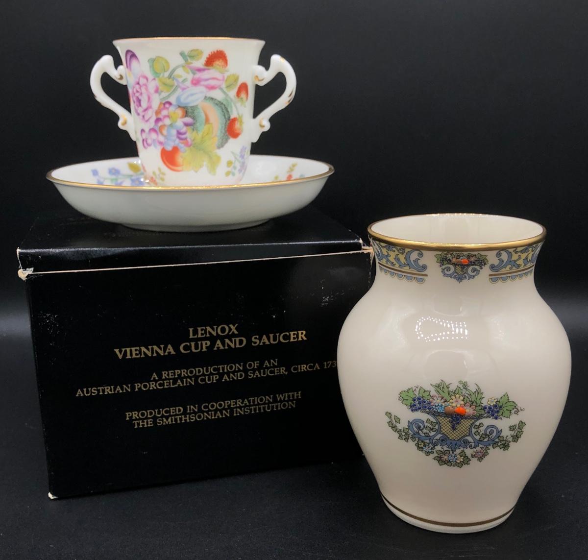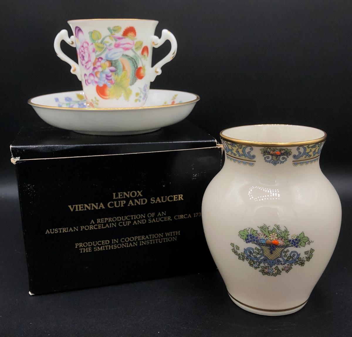 LOT 18L: 1983 Lenox / Smithsonian Vienna Cup & Saucer w/ Original Box & Autumn Bud Vase