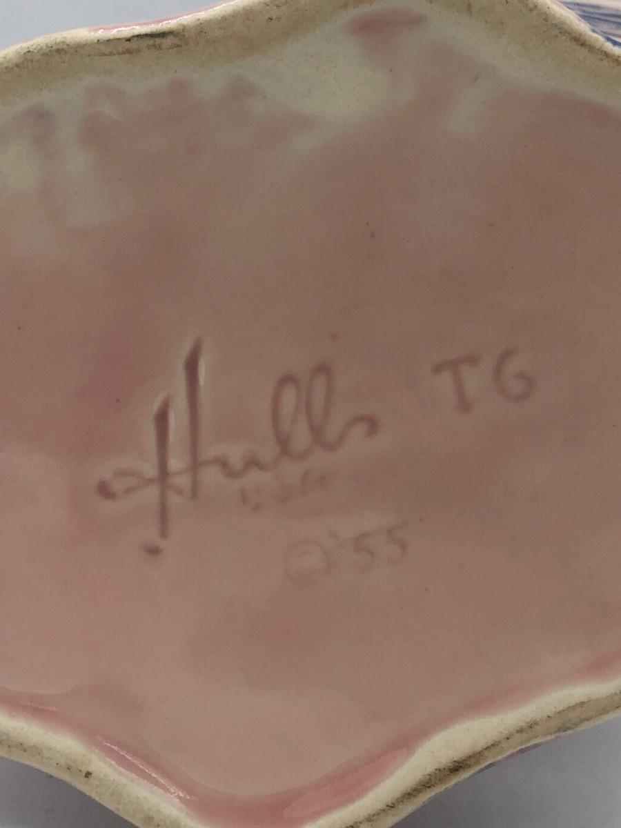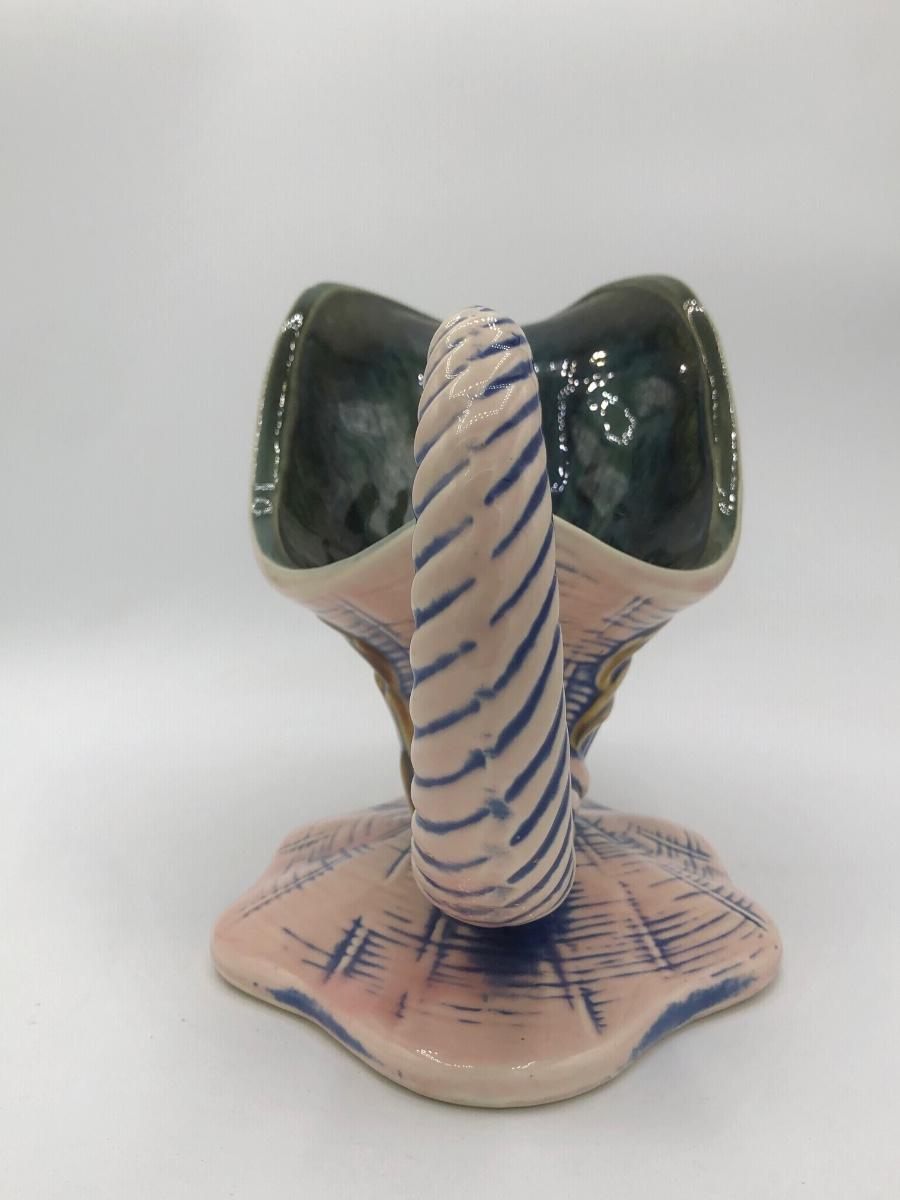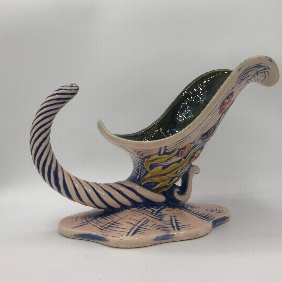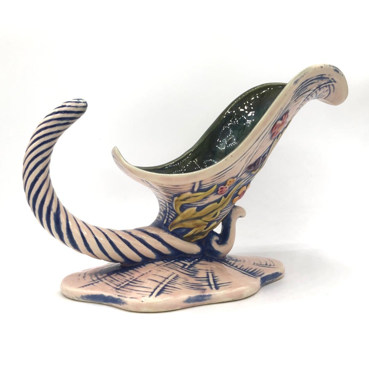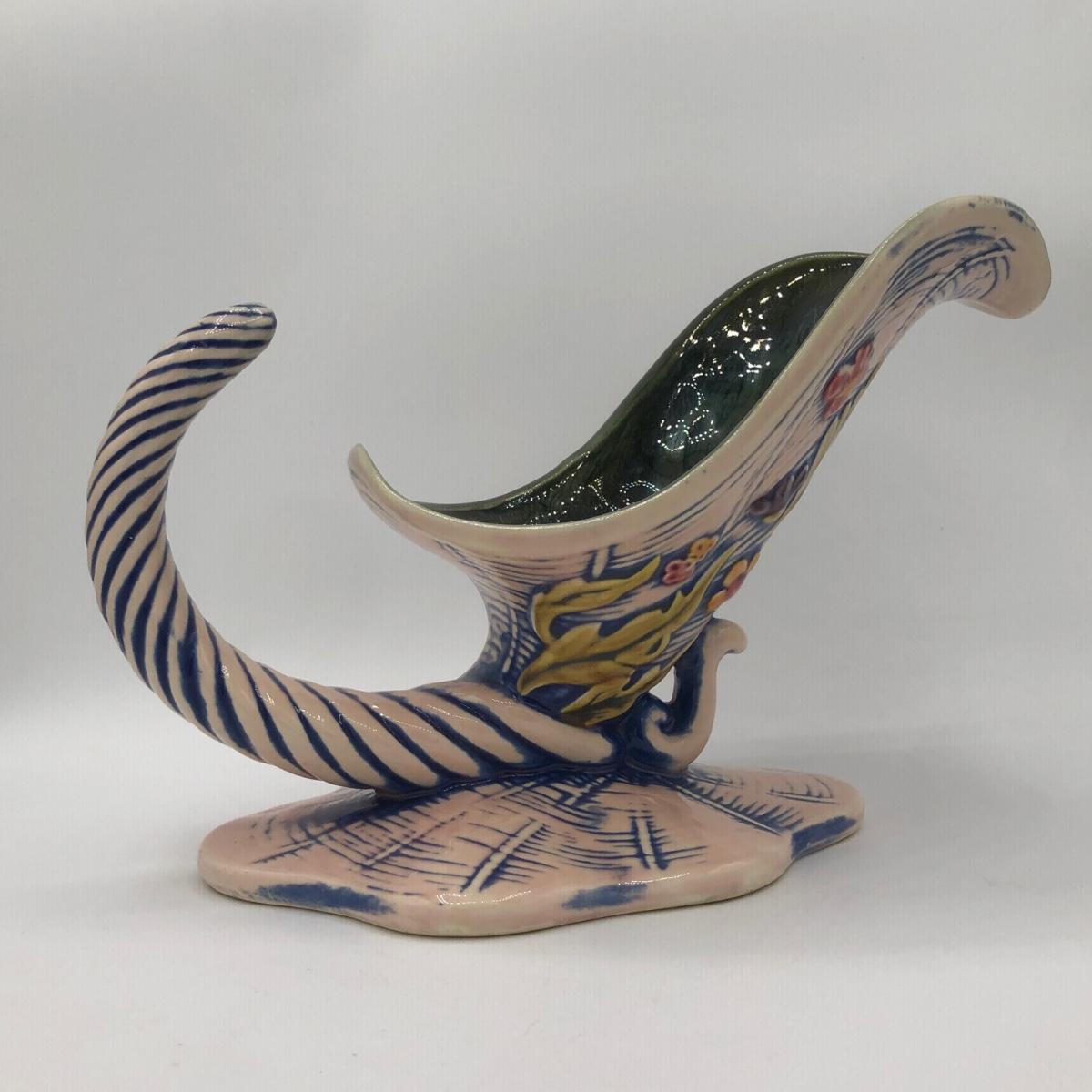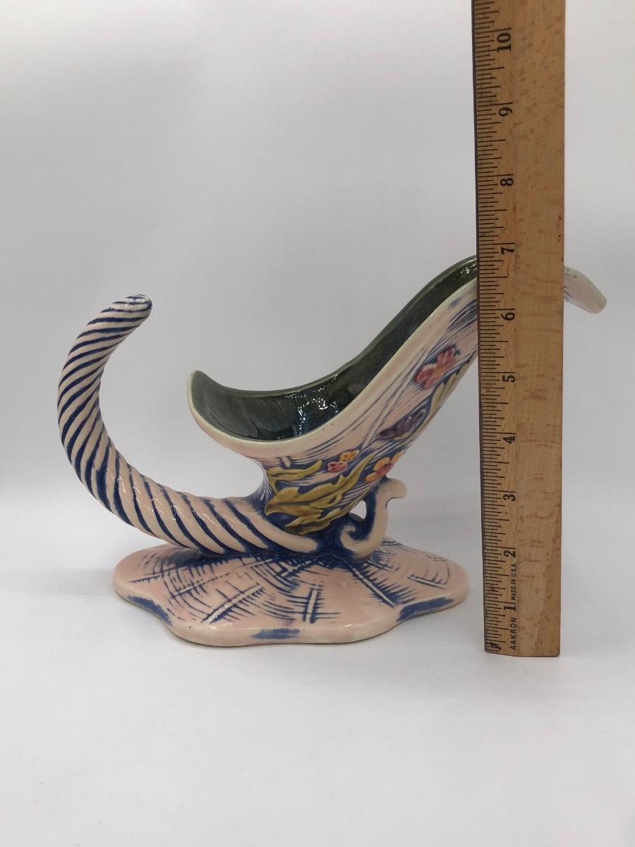 LOT 27L: Unique Pink & Green 1955 Hull USA Art Pottery Blossom Flight T6 Cornucopia Vase