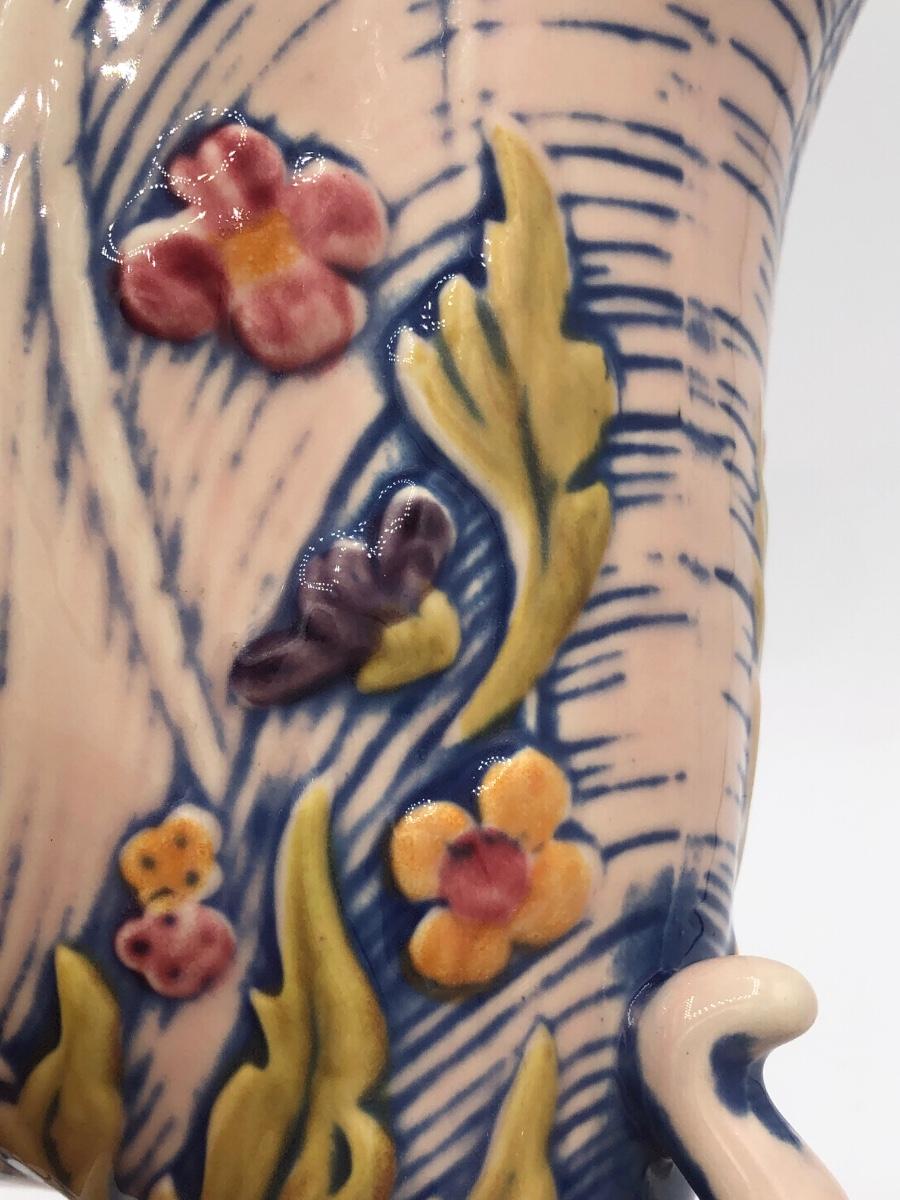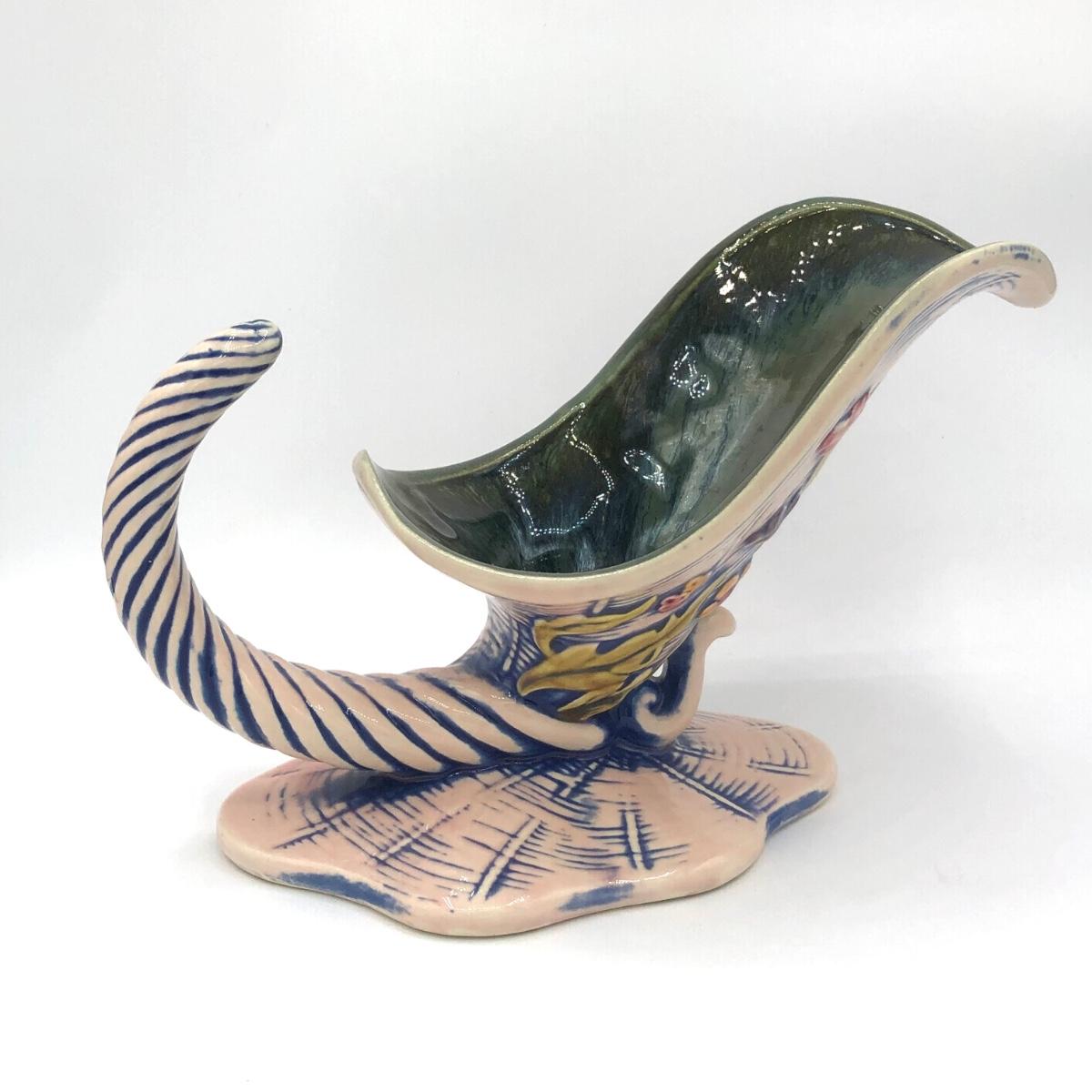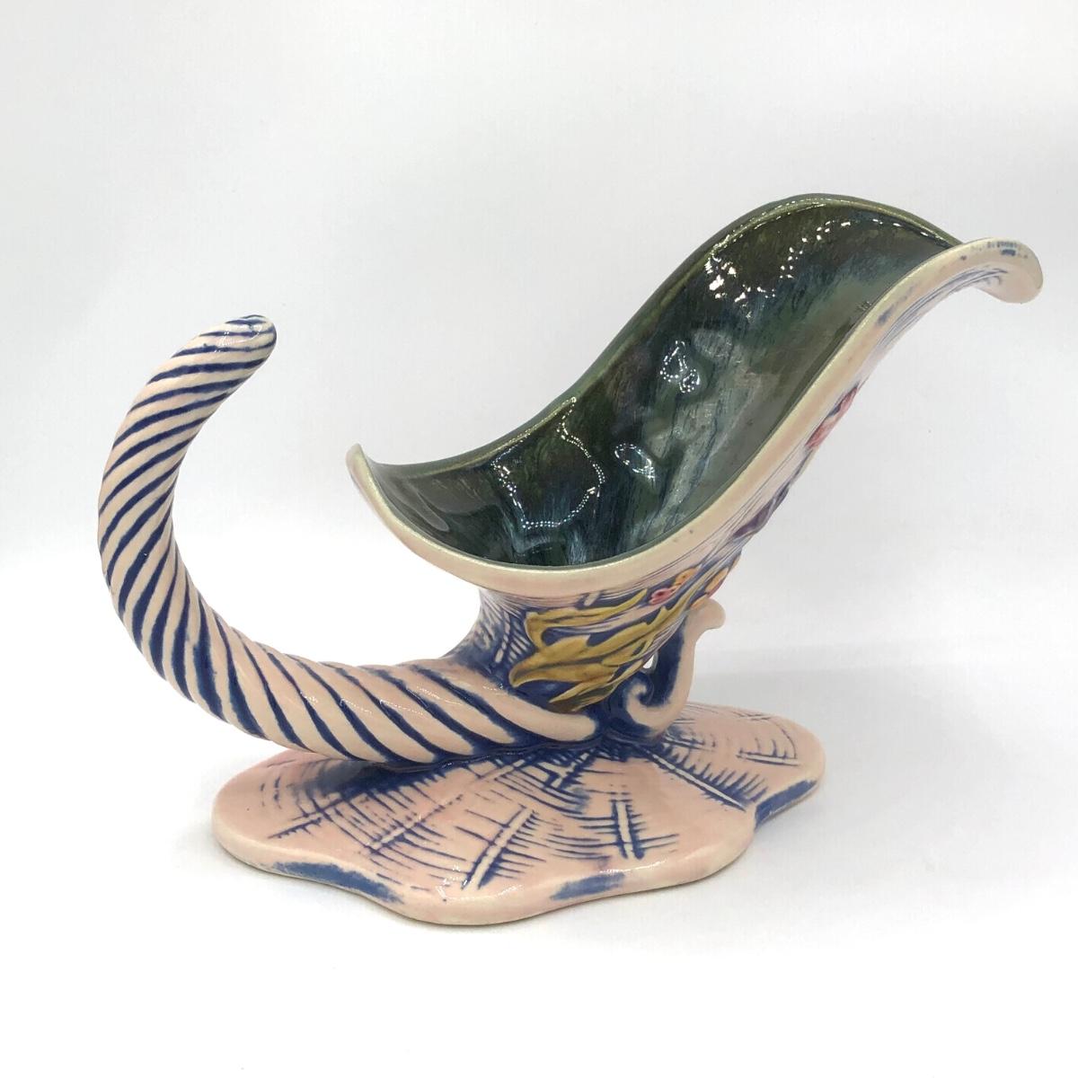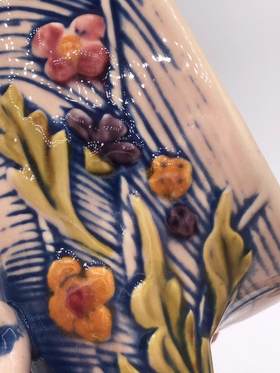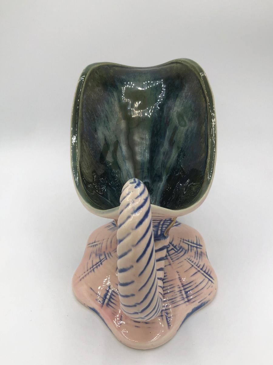 LOT 27L: Unique Pink & Green 1955 Hull USA Art Pottery Blossom Flight T6 Cornucopia Vase