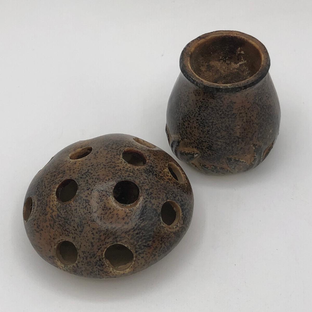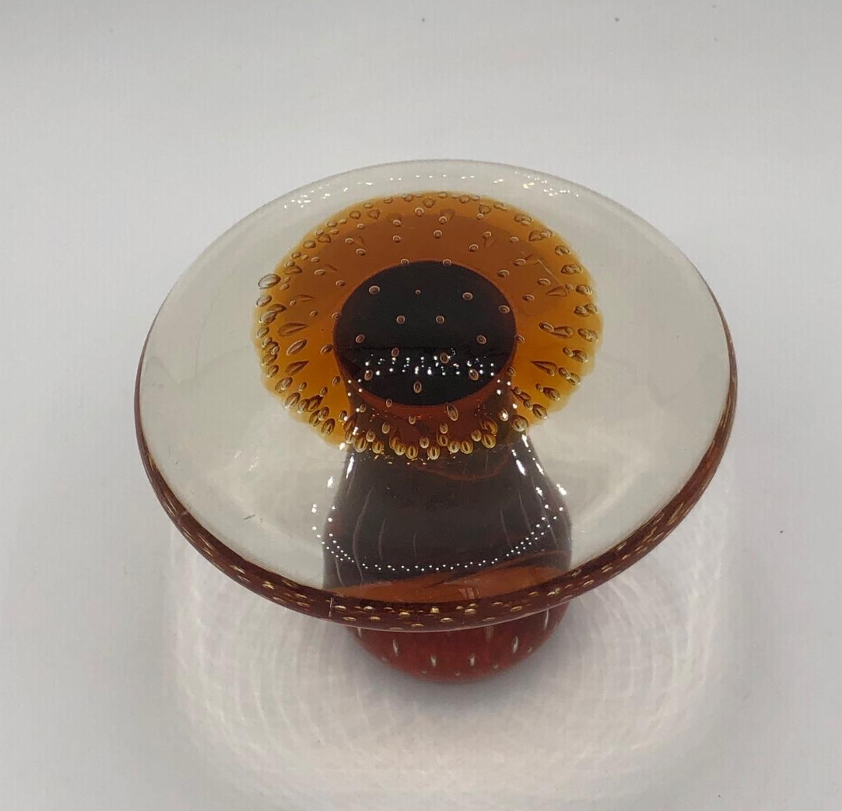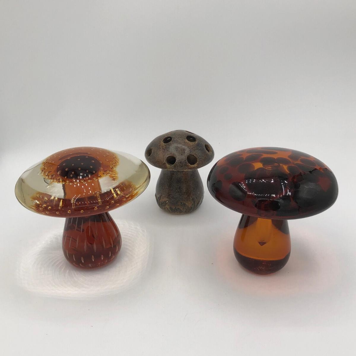 LOT 30L: Art Glass Mushroom Paperweights & Vintage OMC Ceramic Mushroom Flower Frog