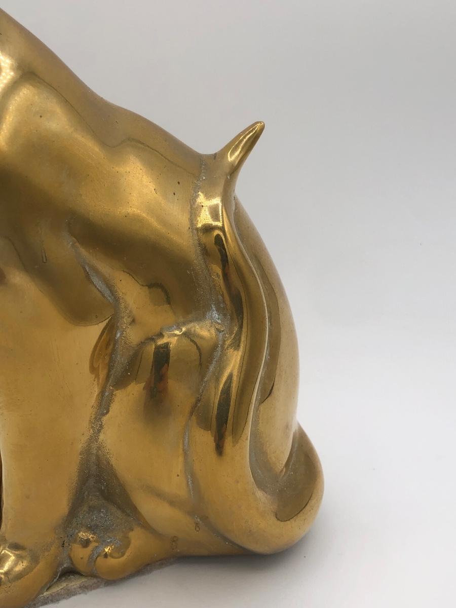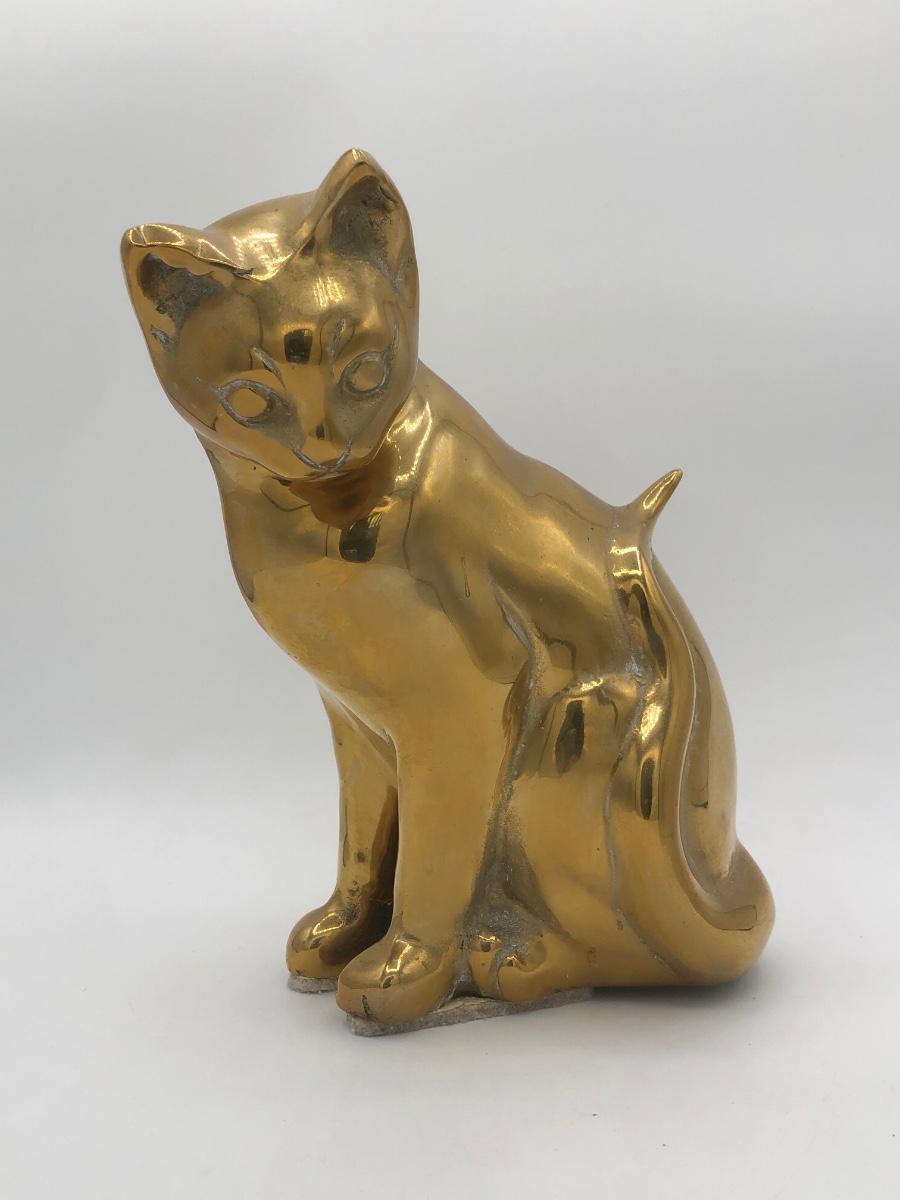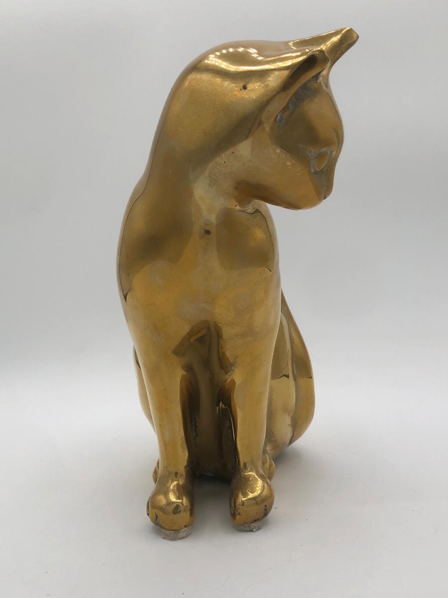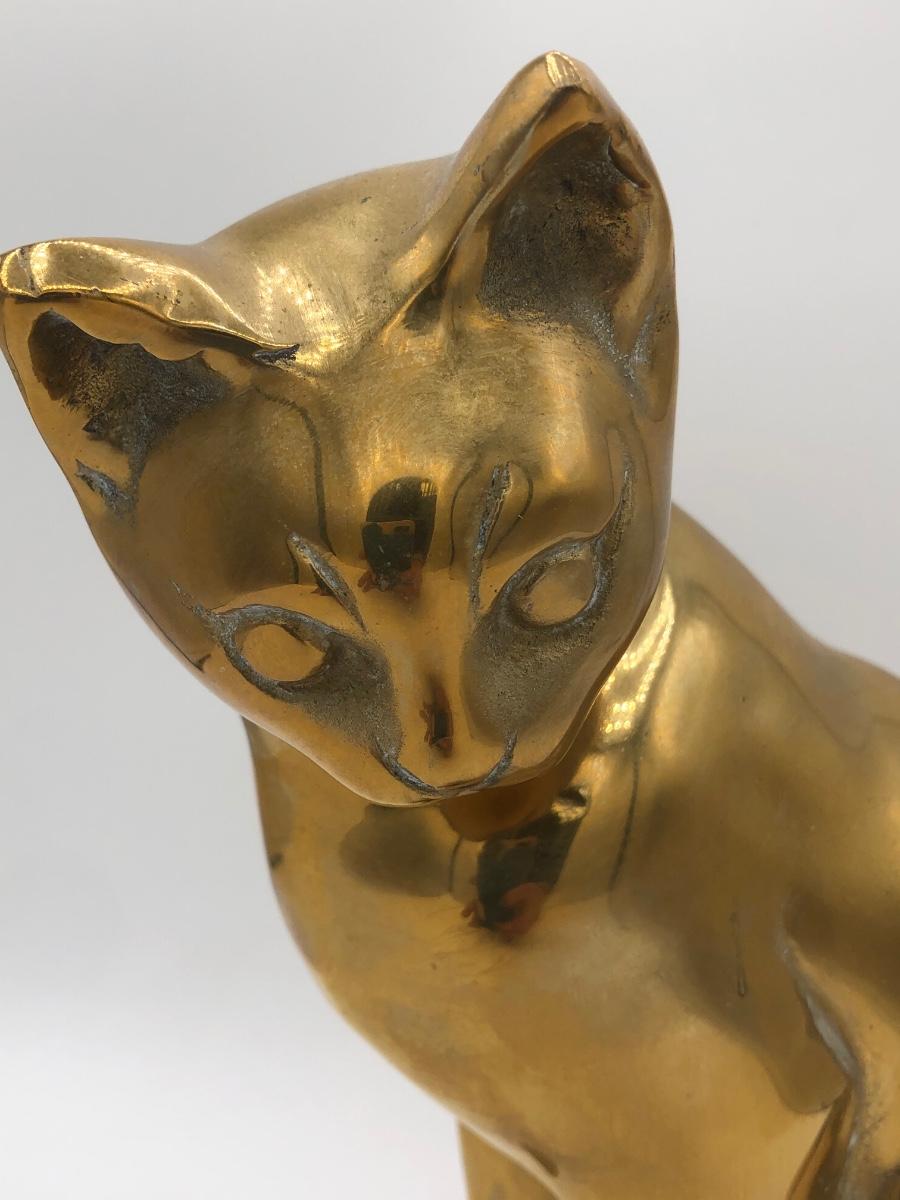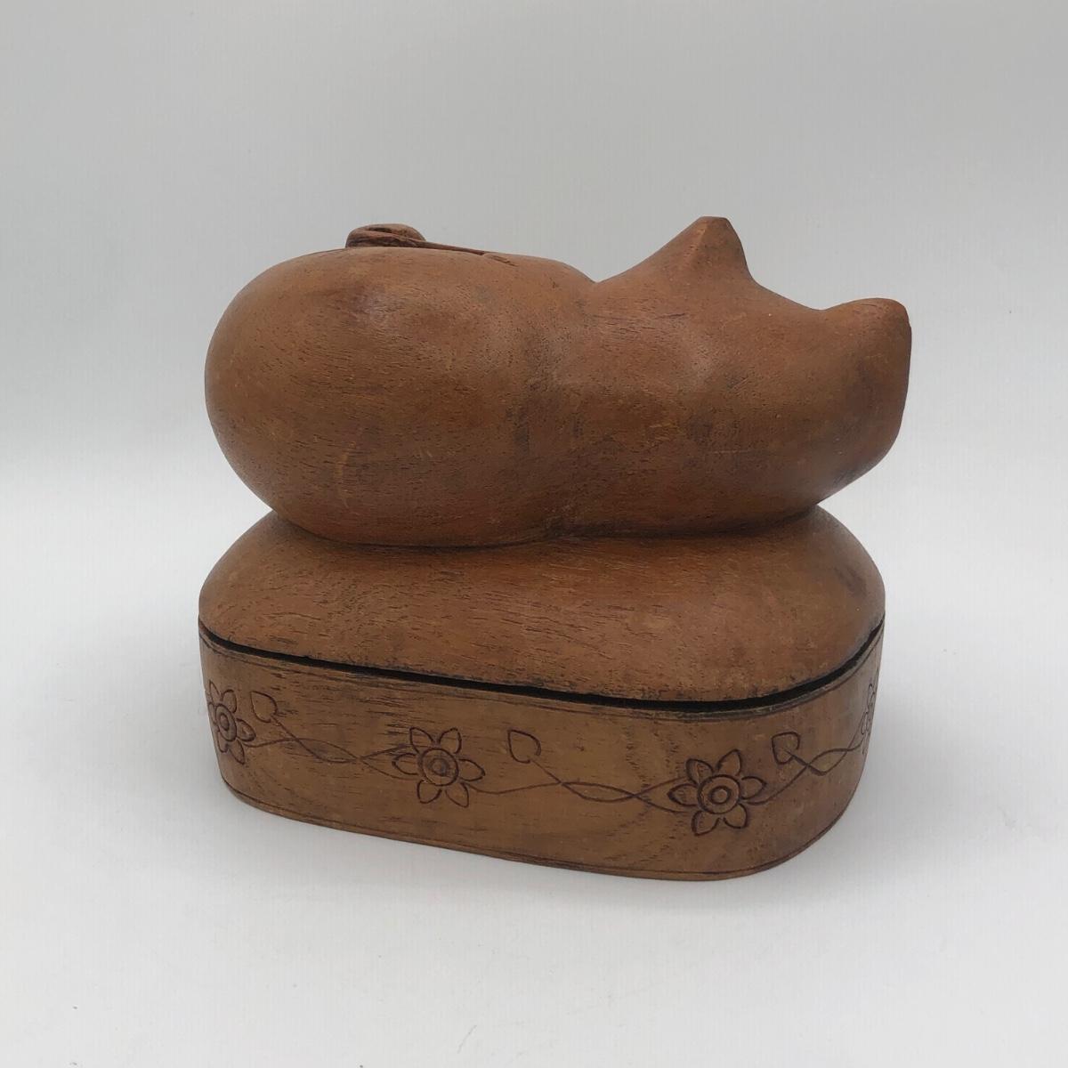LOT 31L: Vintage Brass Cat Statue Door Stop & Sleeping Cat Wooden Trinket Box