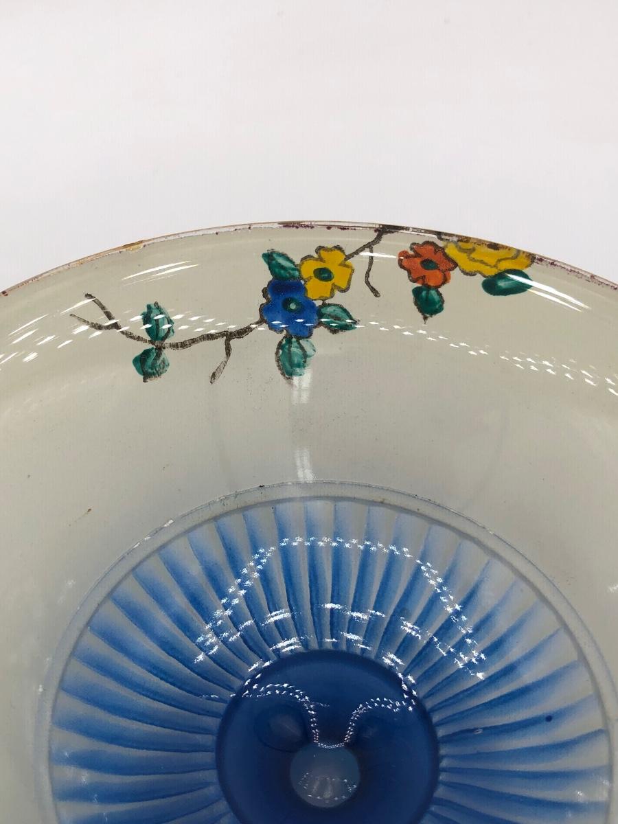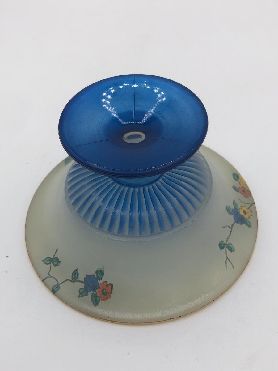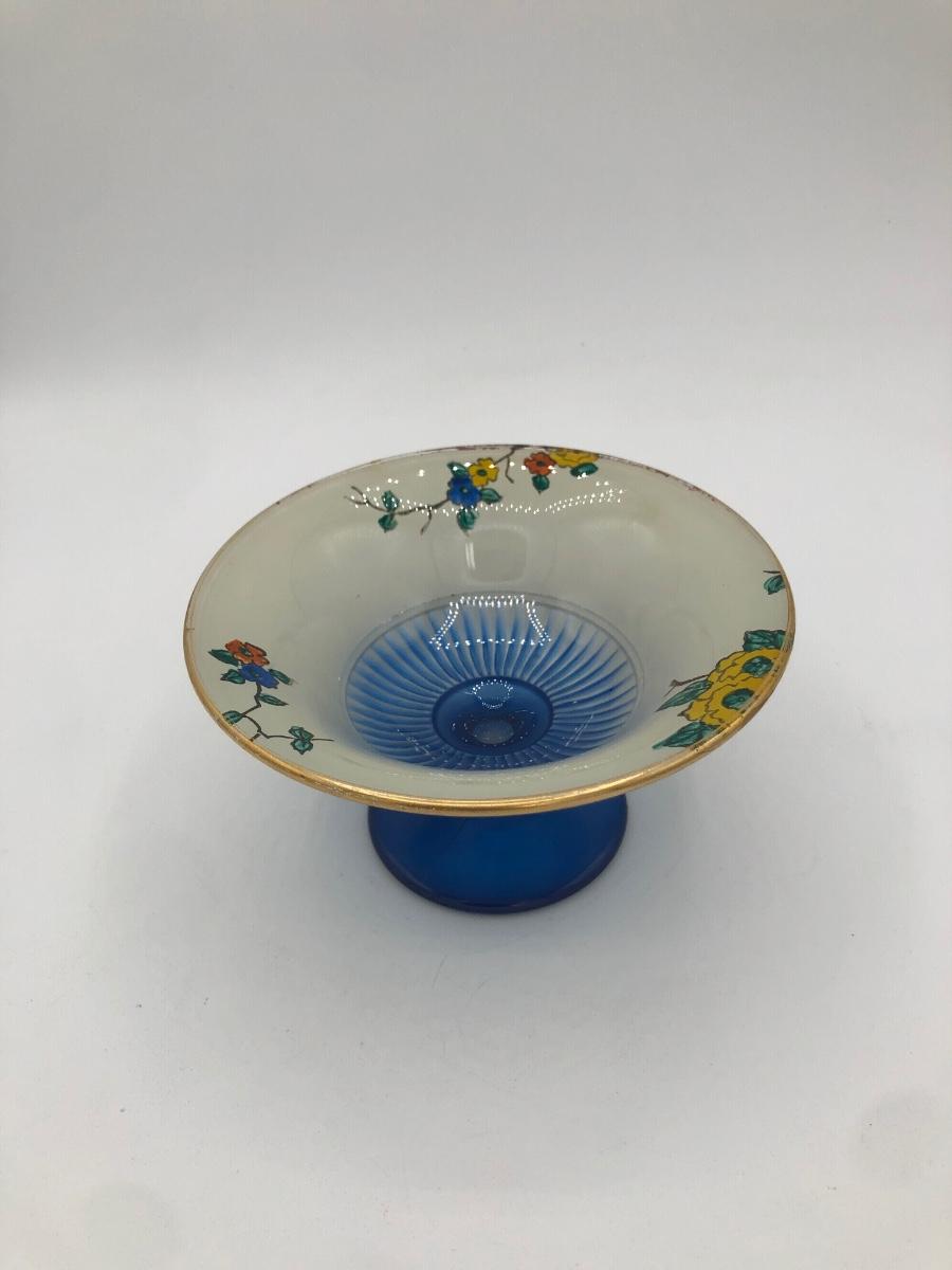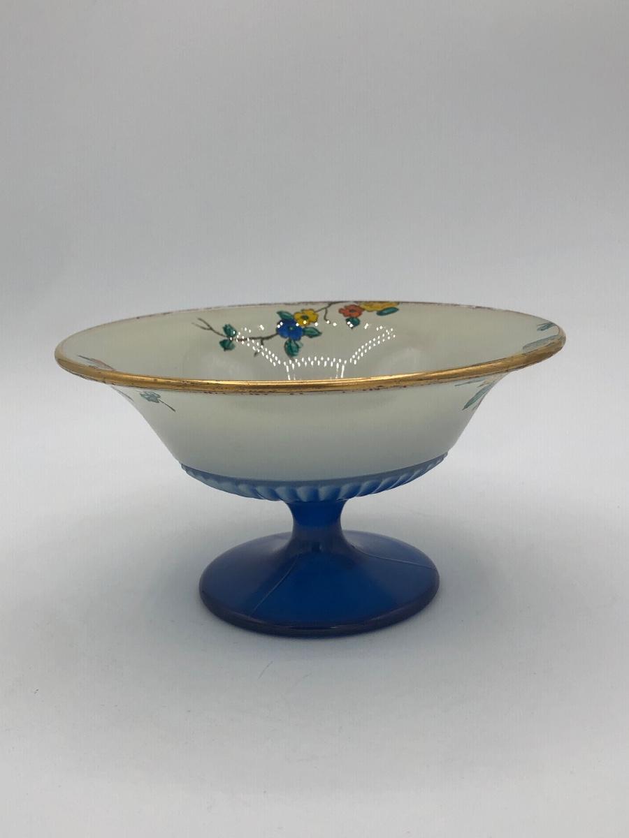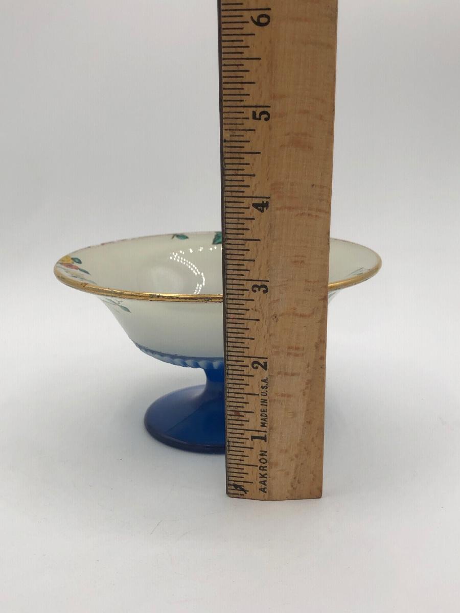 LOT 34L: Signed V Cline Fenton Hand Painted French Opalescent Poinsettia Vase w/ Original Box & Glass Pedestal Compote Dish