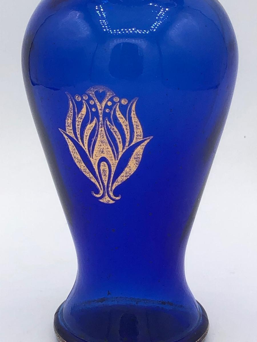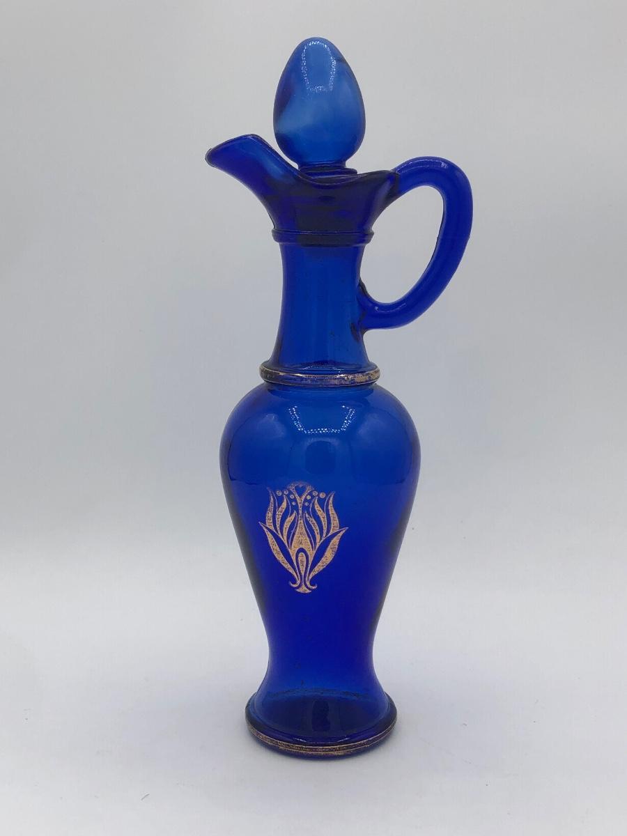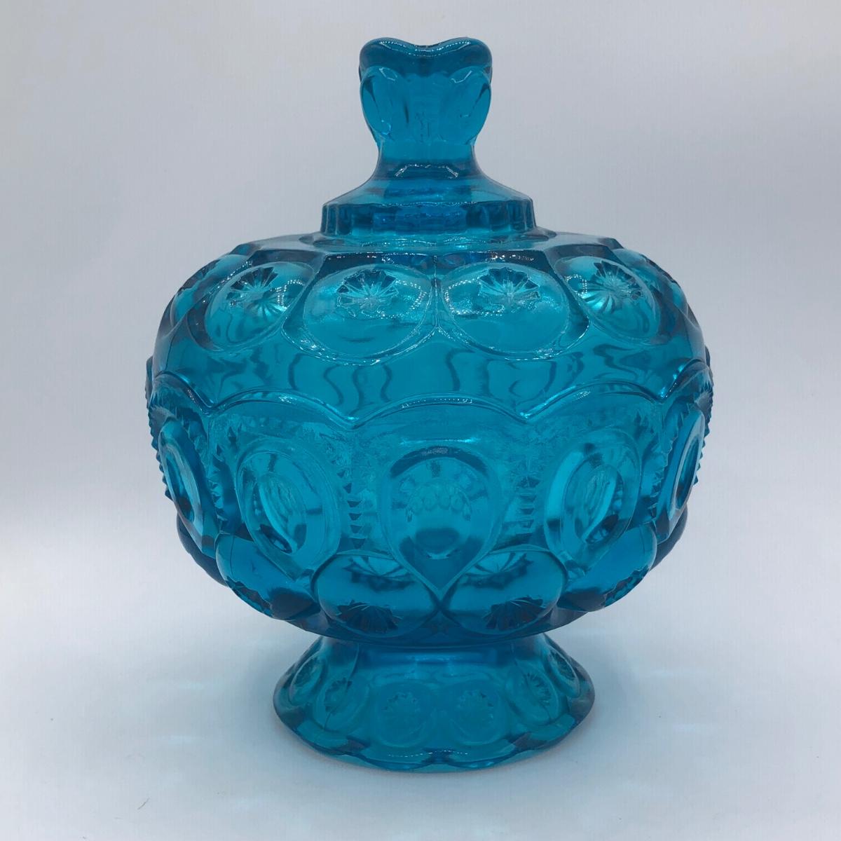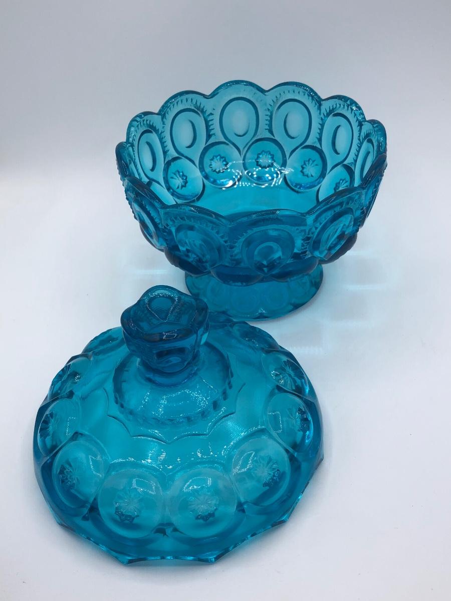 LOT 36L: Vintage L E Smith Blue Moon & Stars Candy Dish & Cobalt Blue Glass Bottles