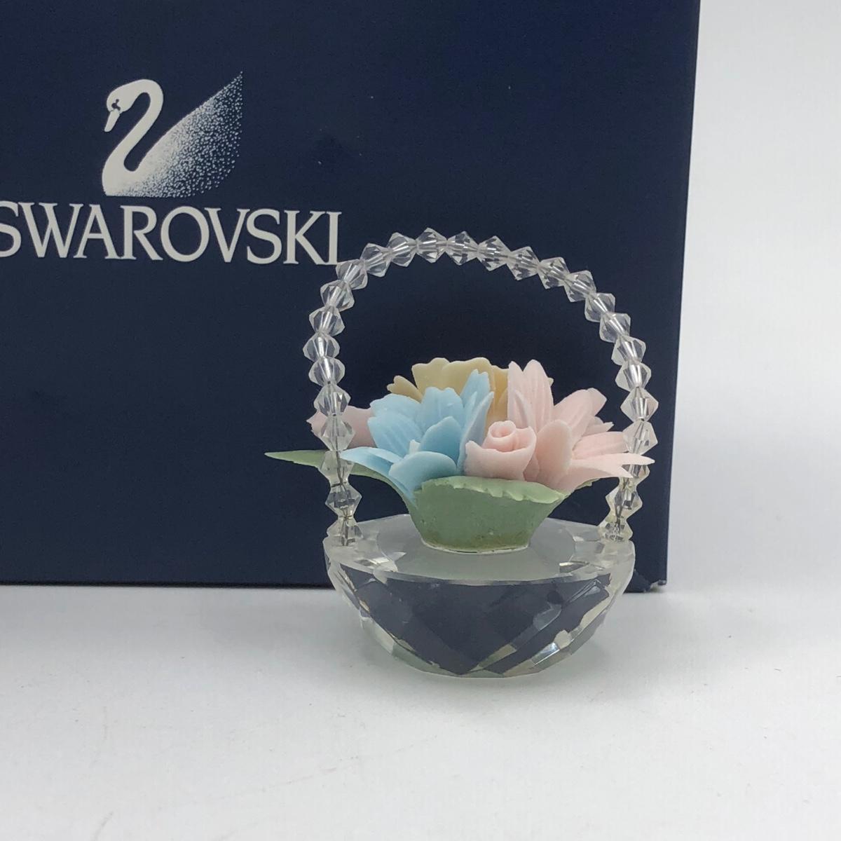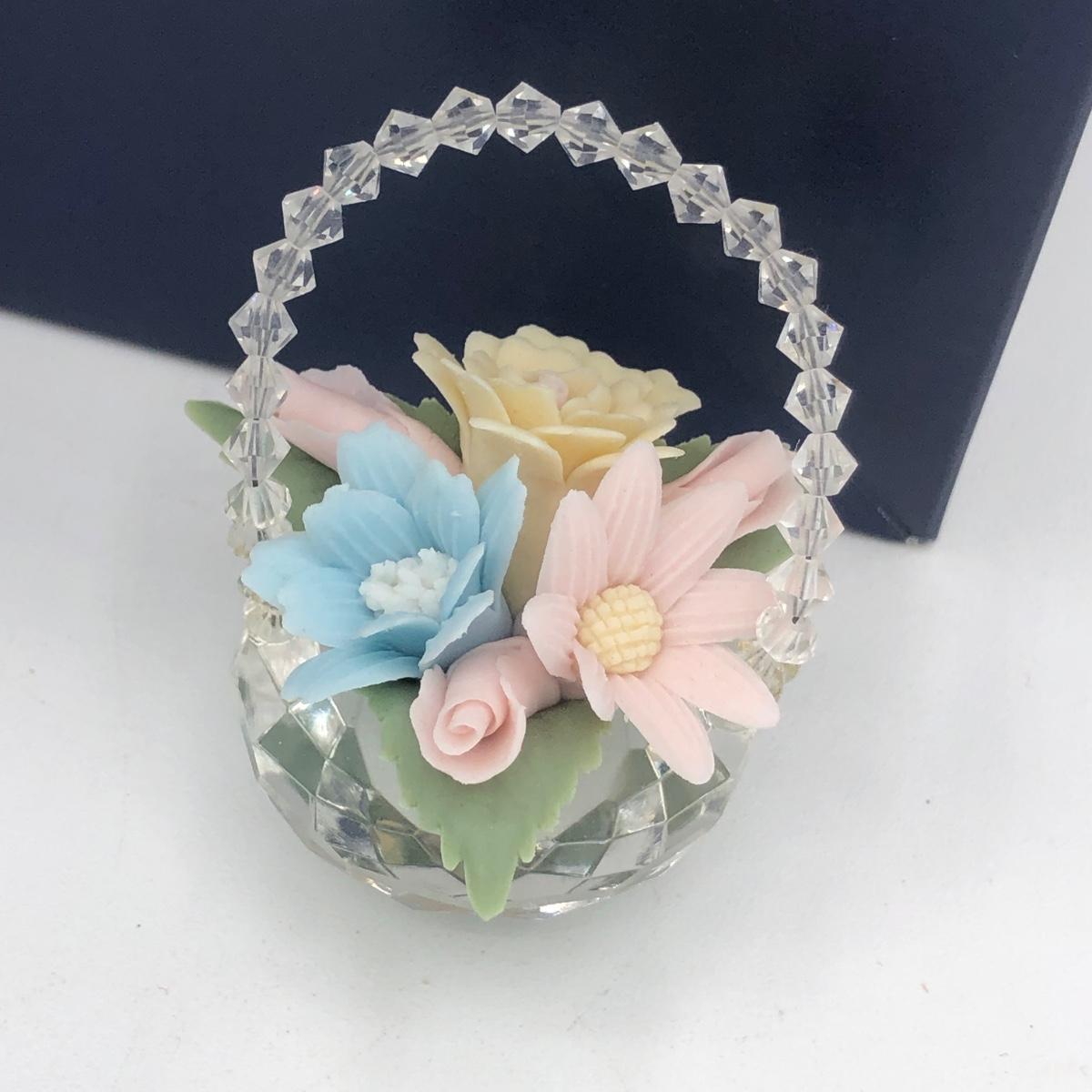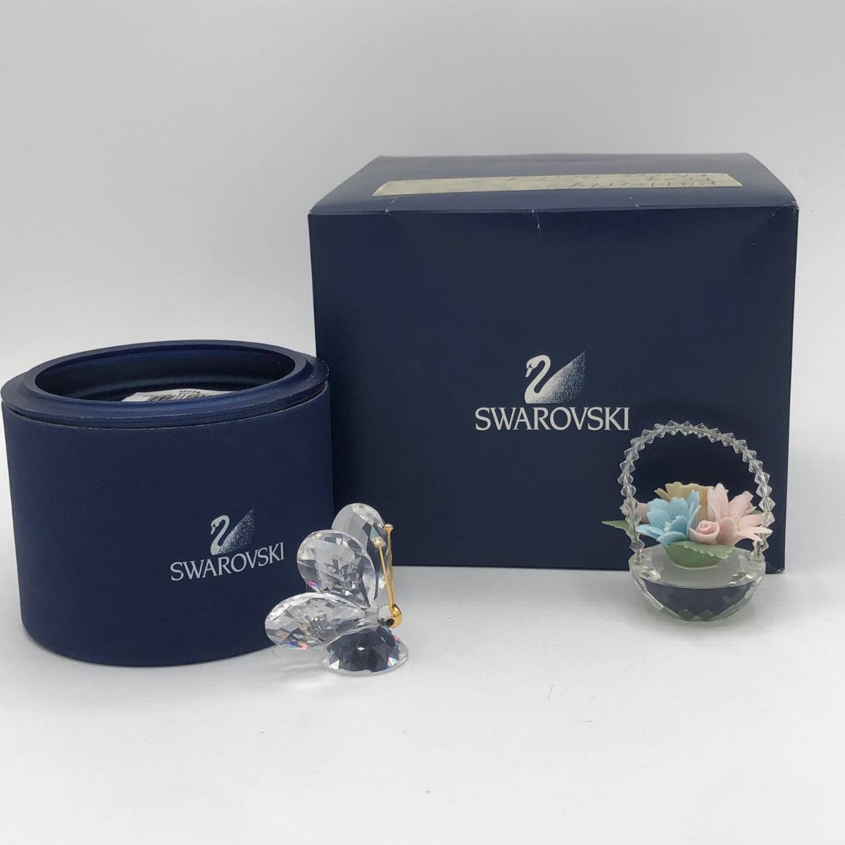 LOT 38L: Swarovski Crystal Miniature Butterfly w/ Original Box & Unmarked Crystal Flower Basket