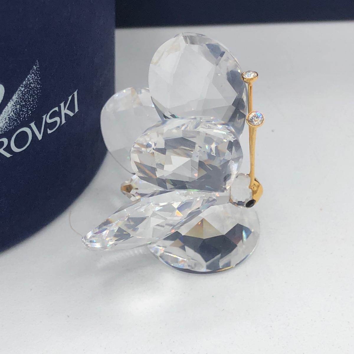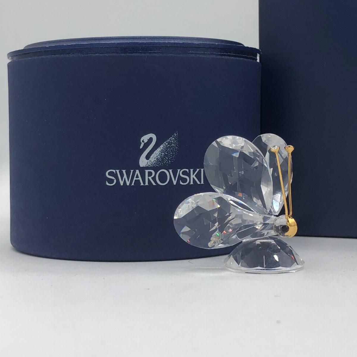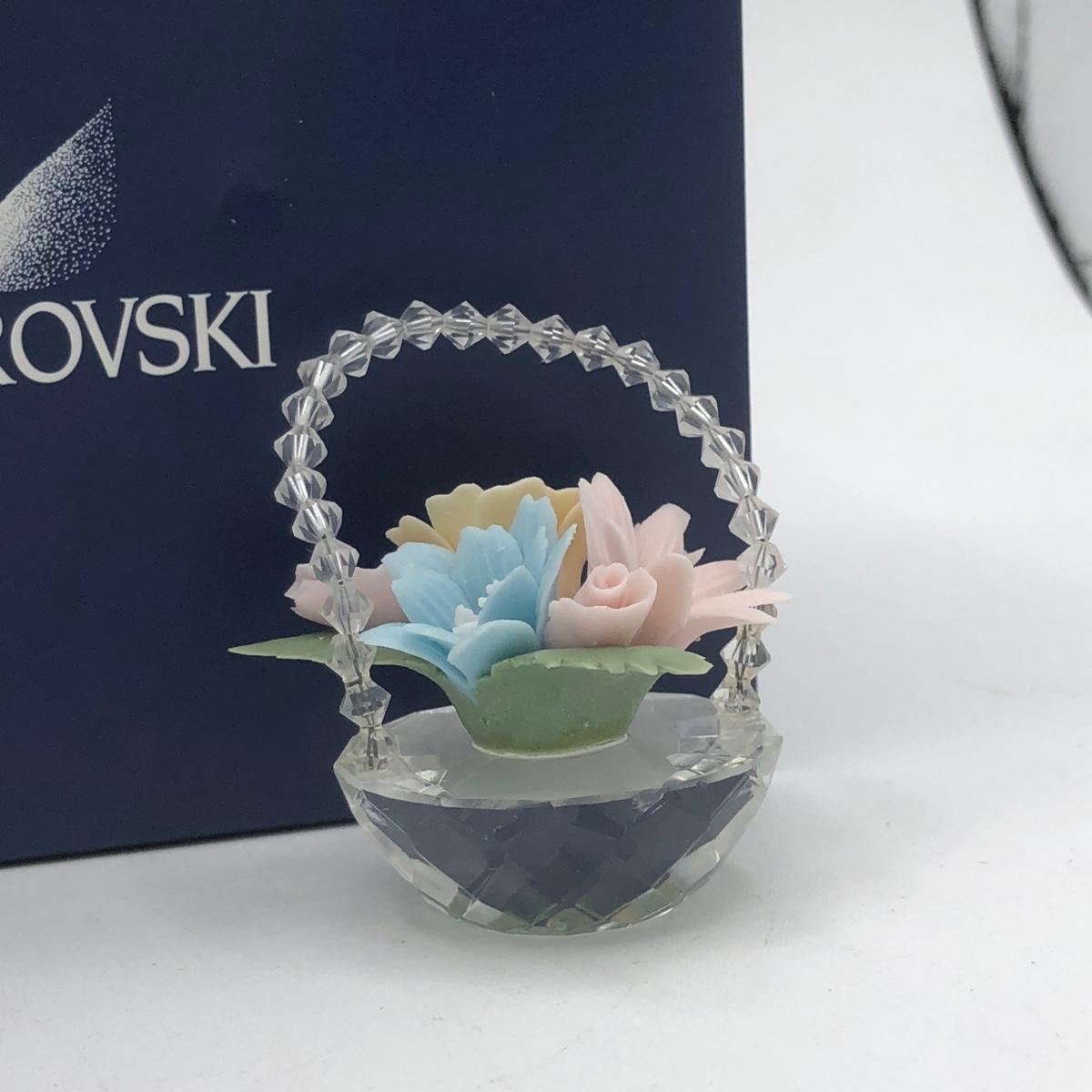 LOT 38L: Swarovski Crystal Miniature Butterfly w/ Original Box & Unmarked Crystal Flower Basket