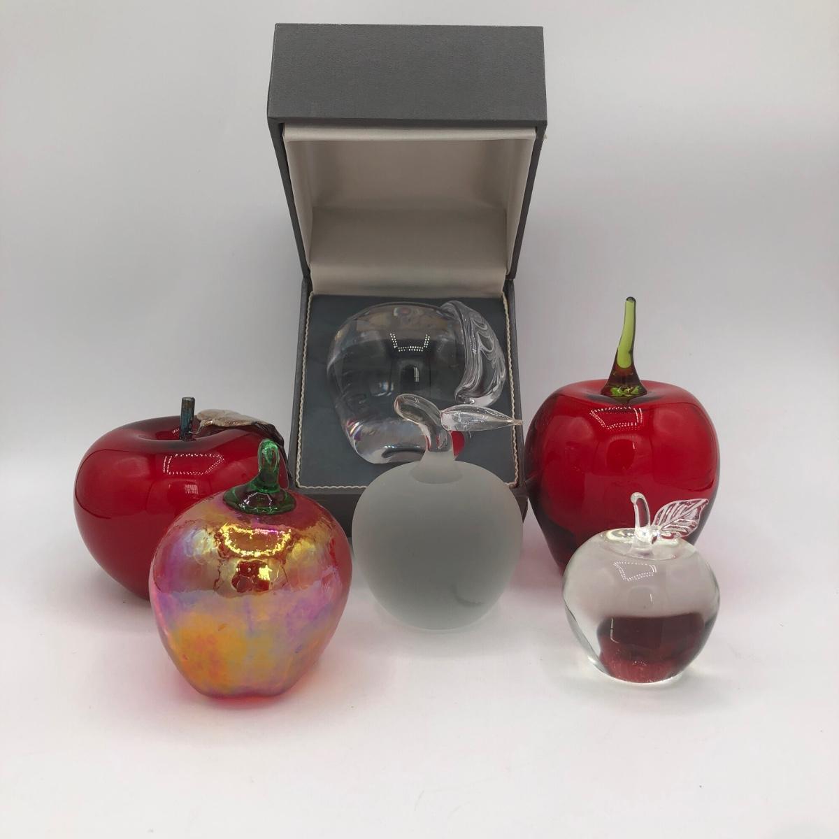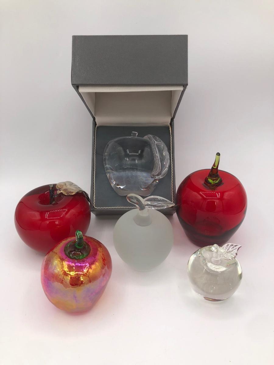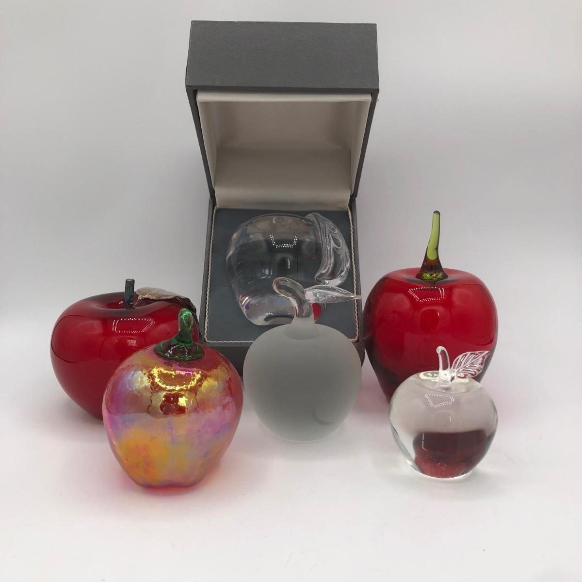 LOT 40L: Crystal & Glass Apples - Signed Elwood M Hammond, Astral w/ Box & More
