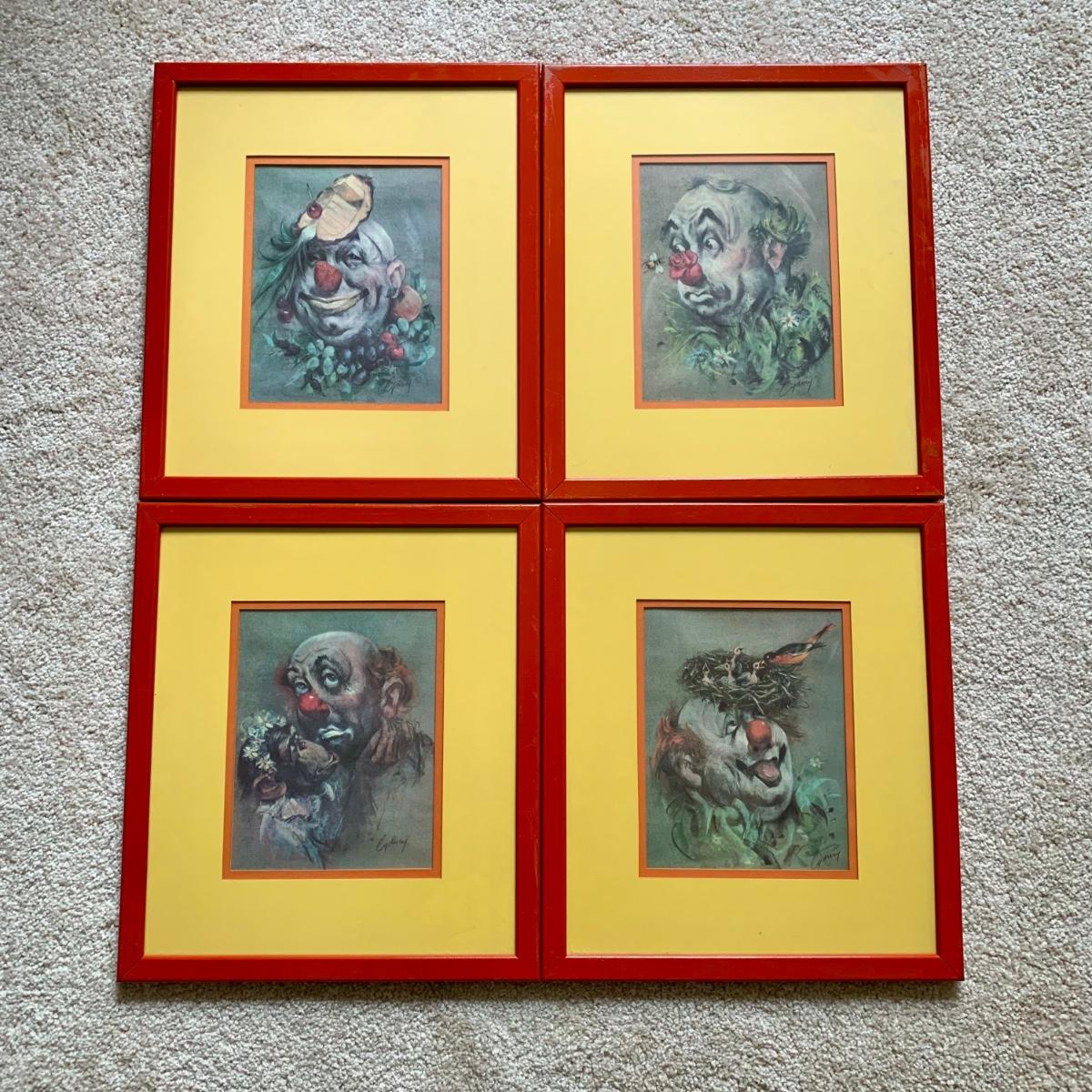 LOT 46 B: Set of 4 Framed Vintage Cydney Grossman Clown Portrait Prints