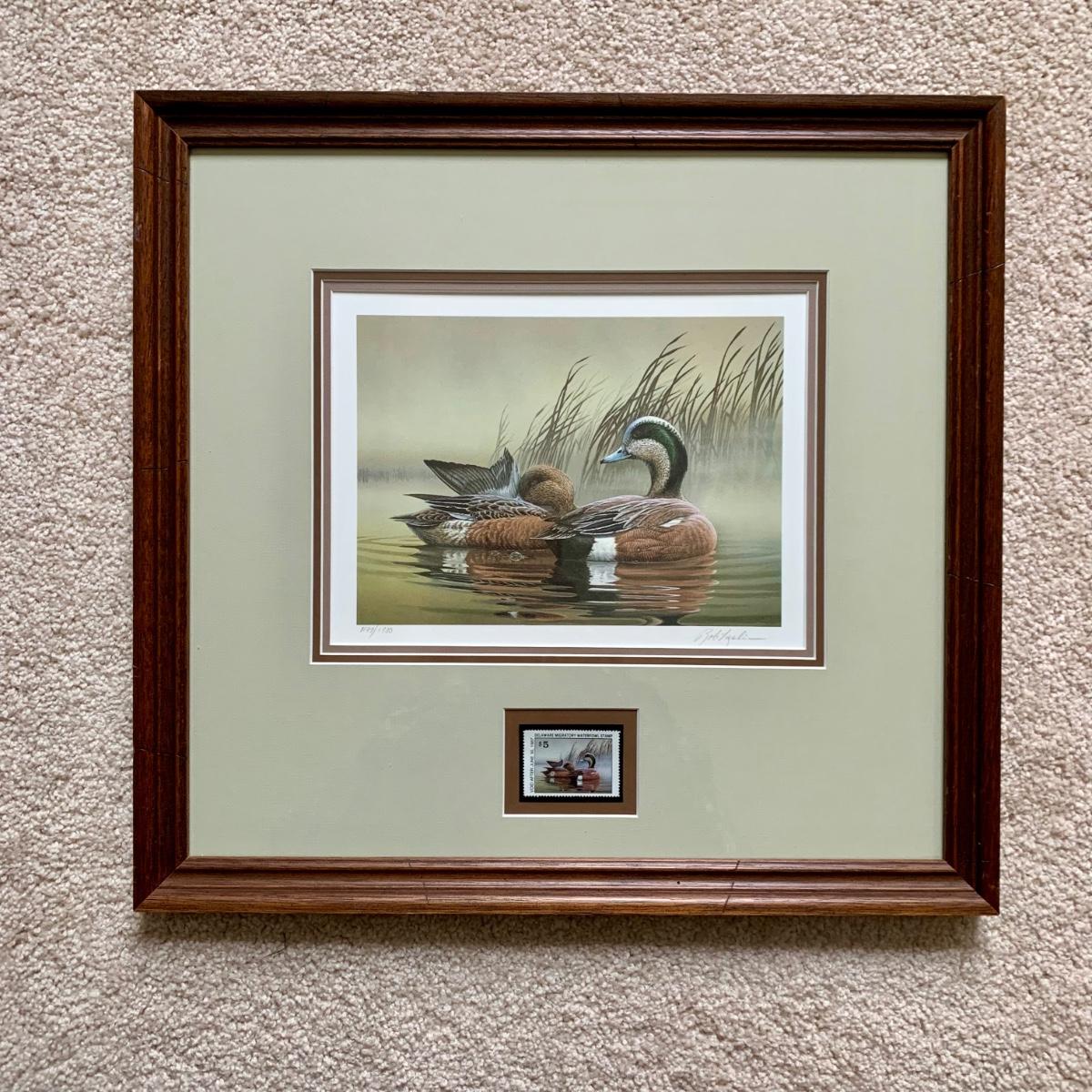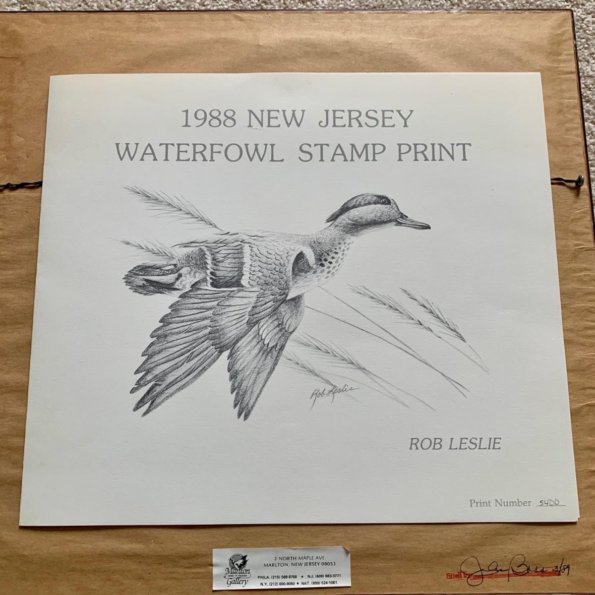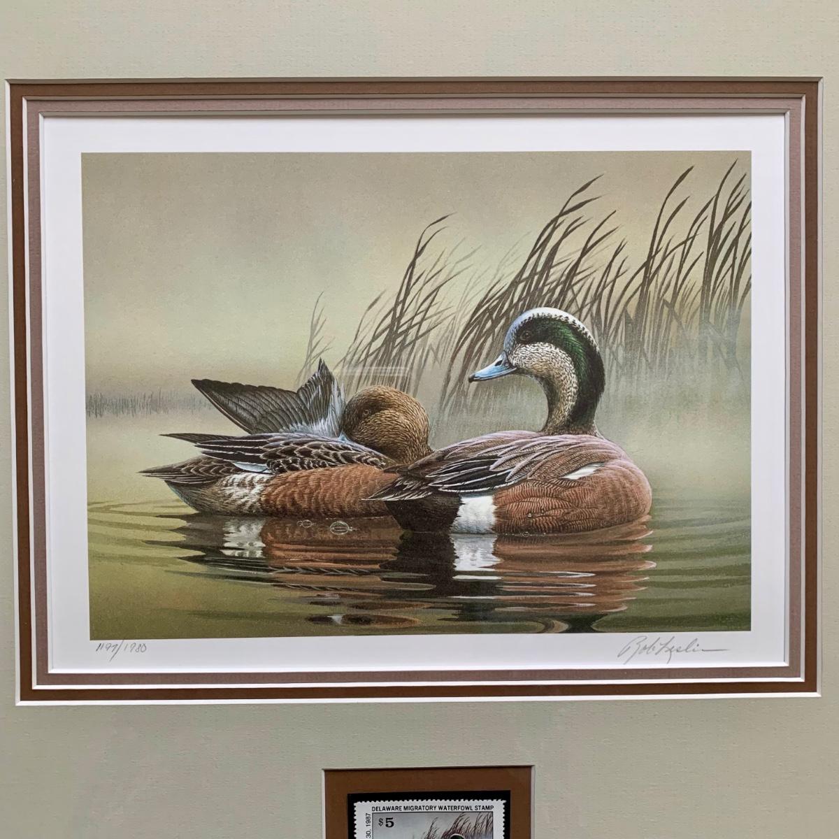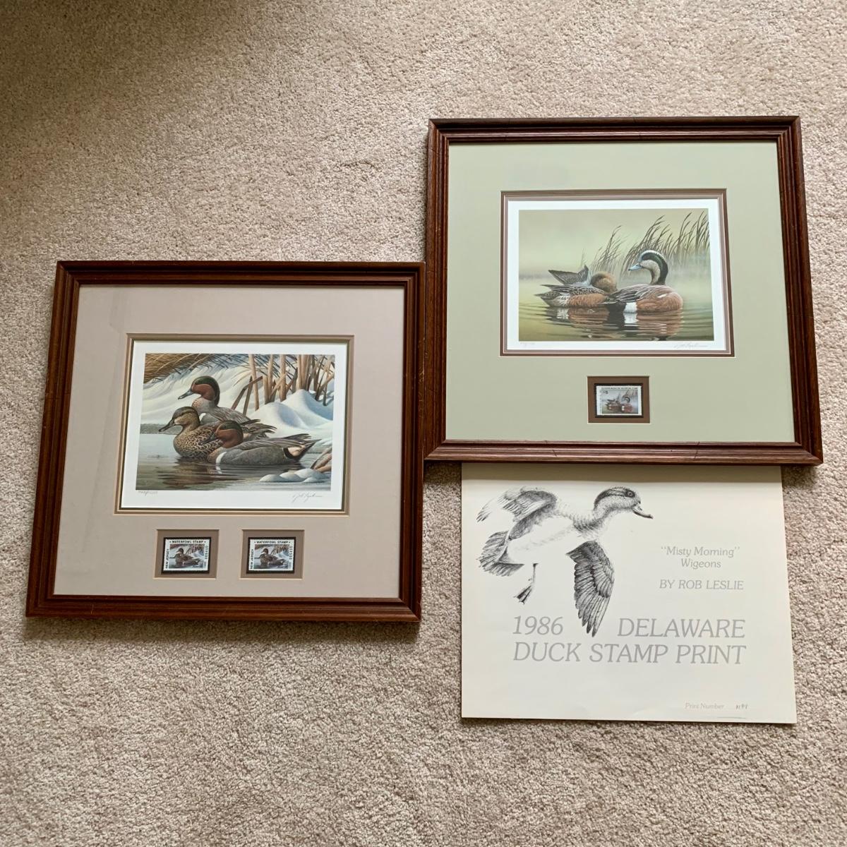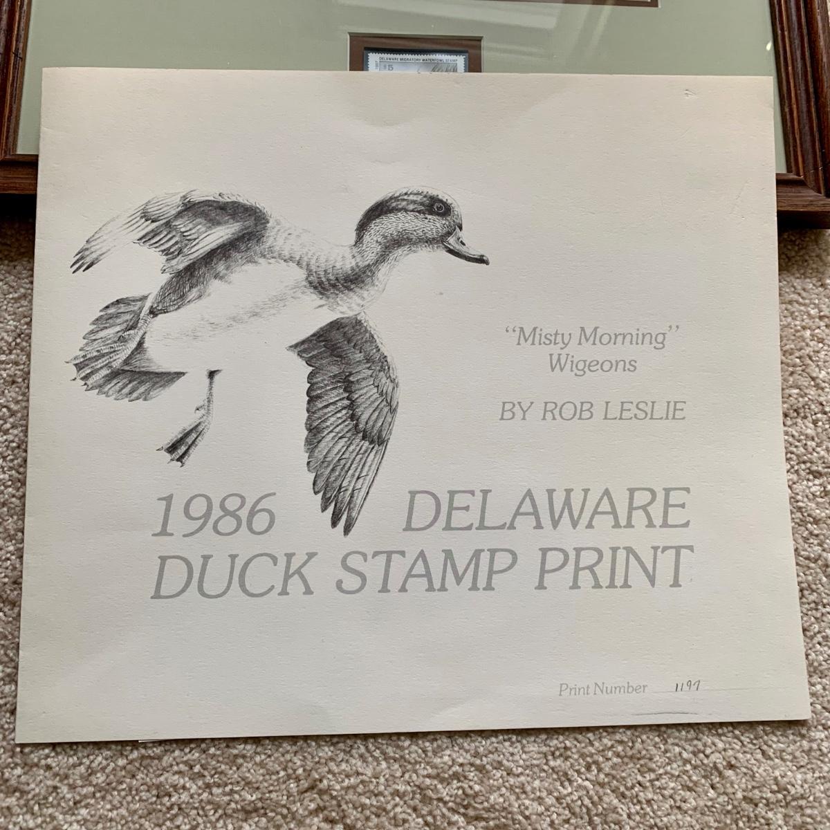 LOT 47 B: 1986 Delaware Duck Stamp Print "Misty Morning Widgeons" & 1988 New Jersey Waterfowl Stamp Print by Rob Leslie