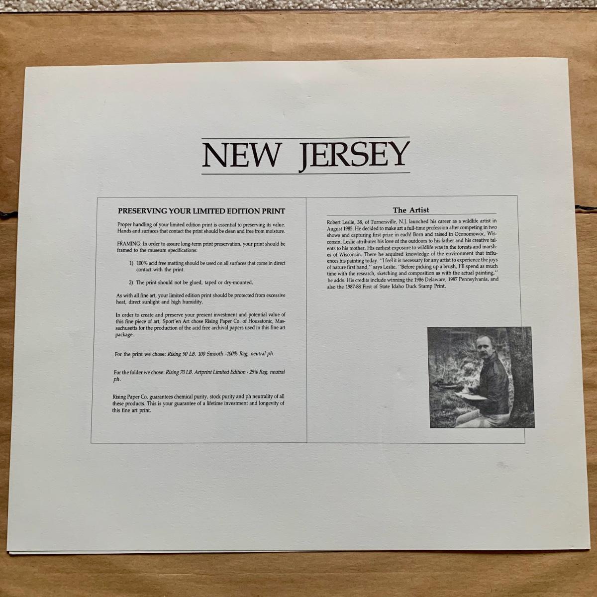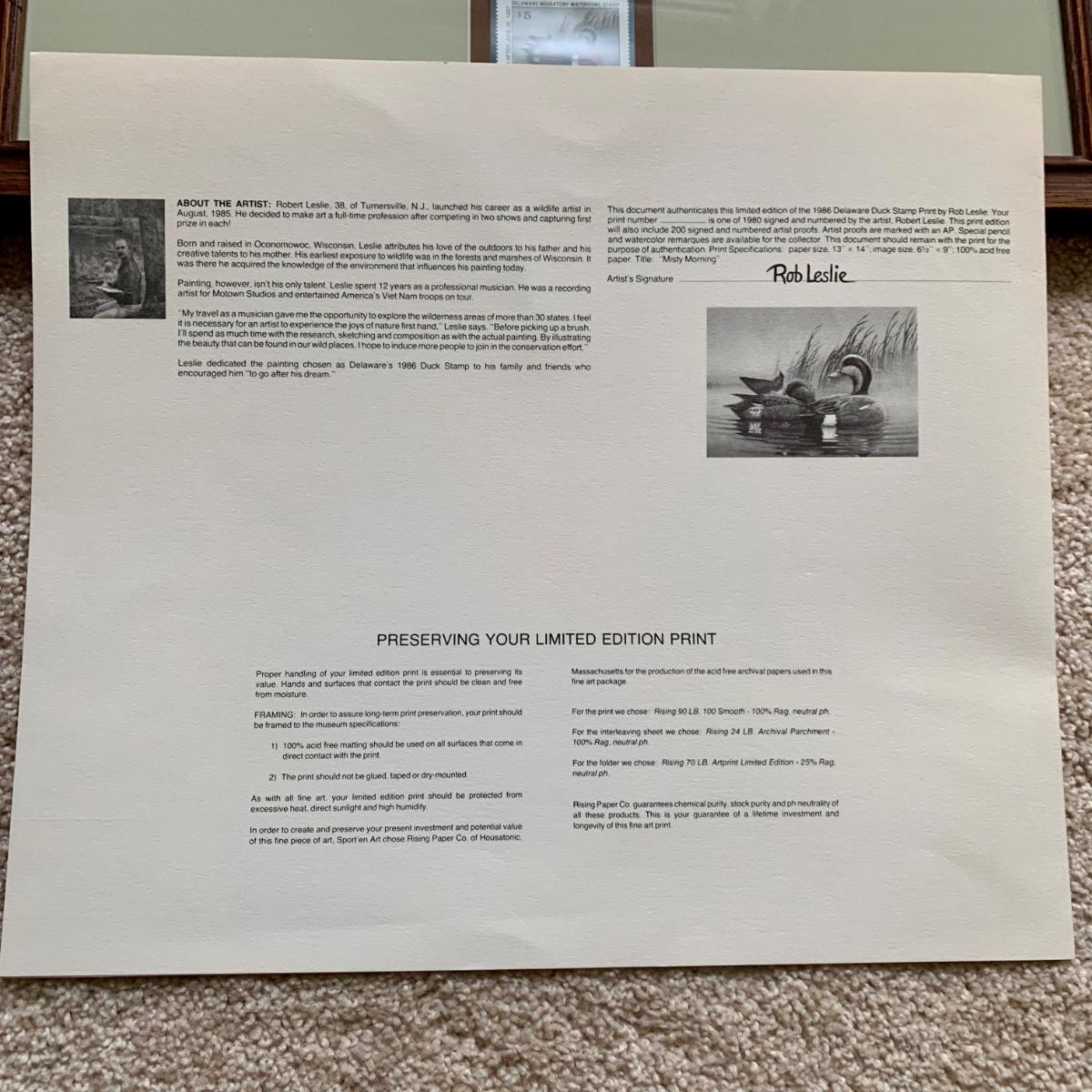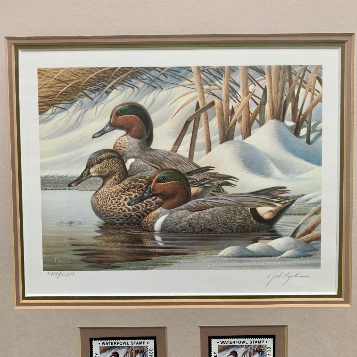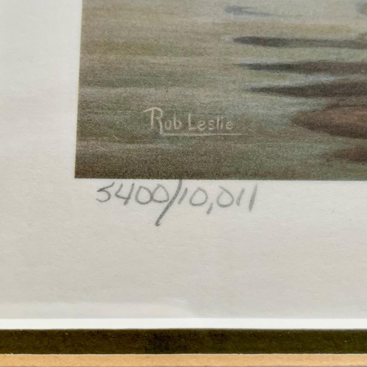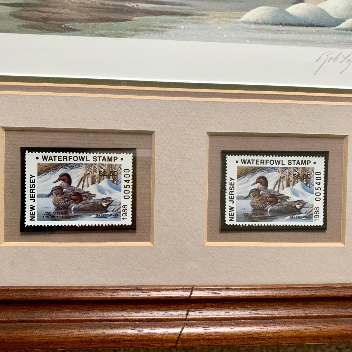 LOT 47 B: 1986 Delaware Duck Stamp Print "Misty Morning Widgeons" & 1988 New Jersey Waterfowl Stamp Print by Rob Leslie