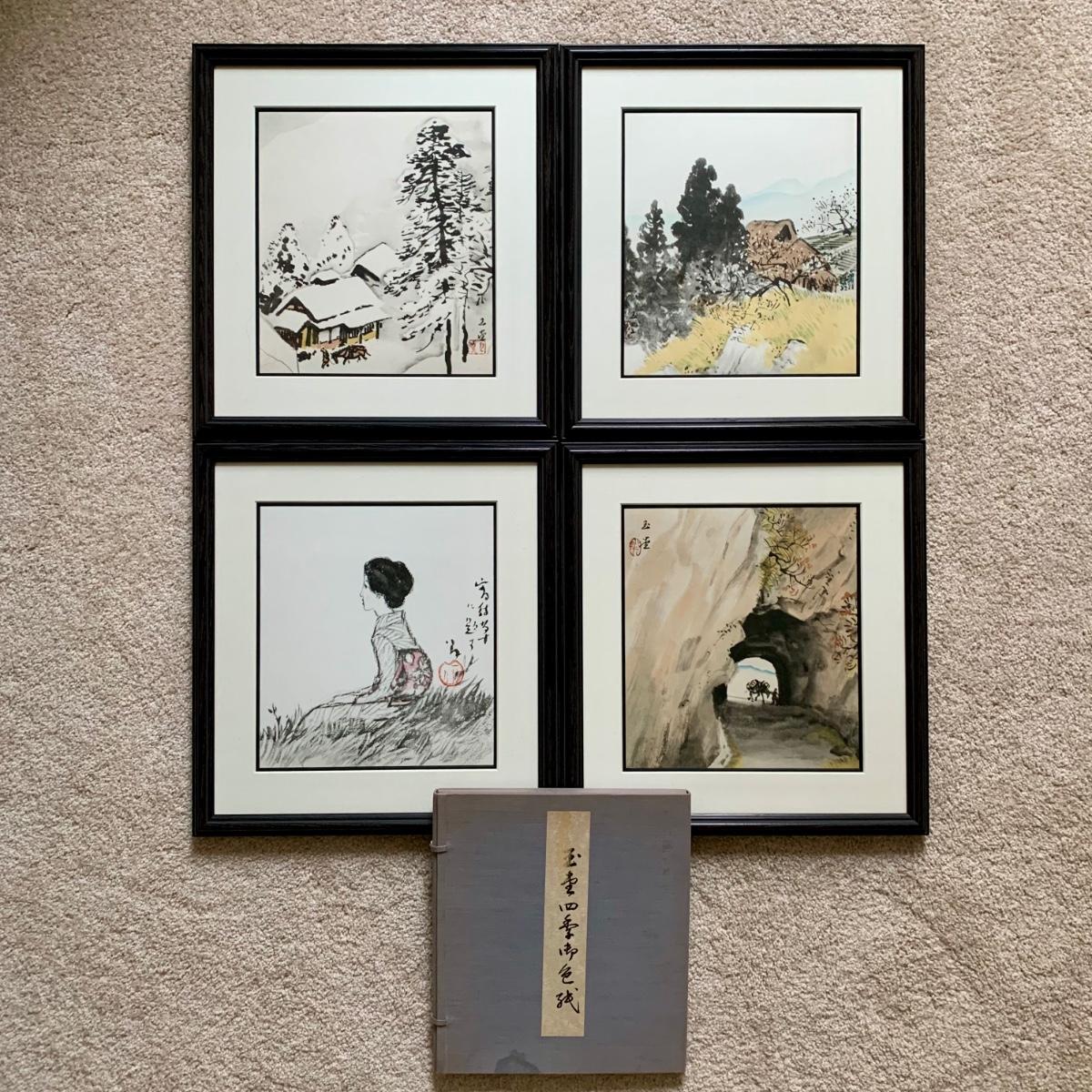 LOT 51 B: Set of 3 Framed Gyokudo Kawai (1873 - 1957) from the Four Seasons Collection Prints & Takehisa Yumeji 1920's "Machiyoigusa Front" Print