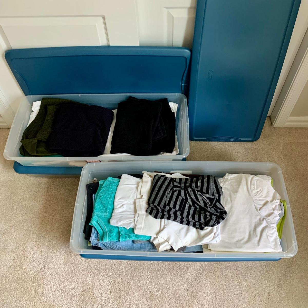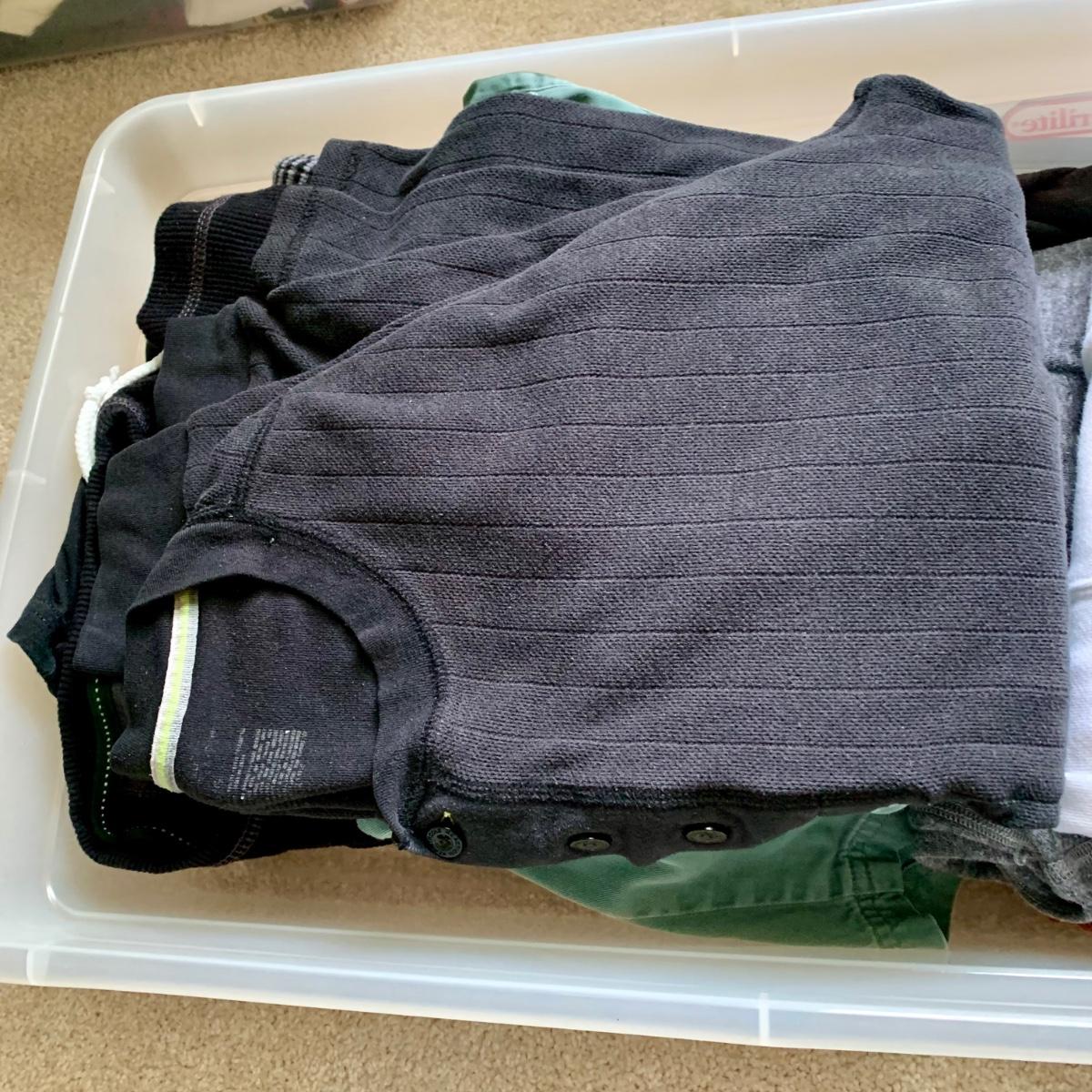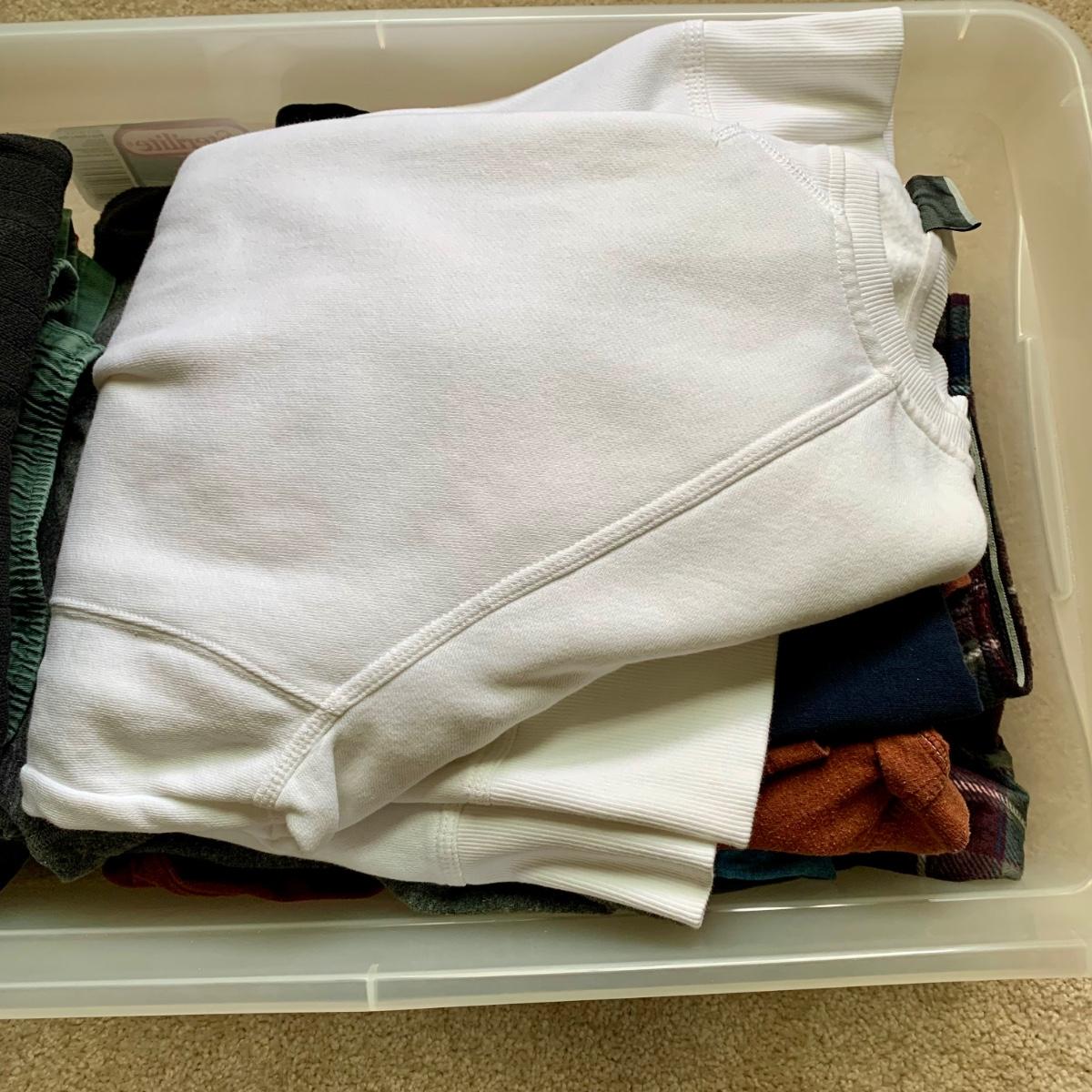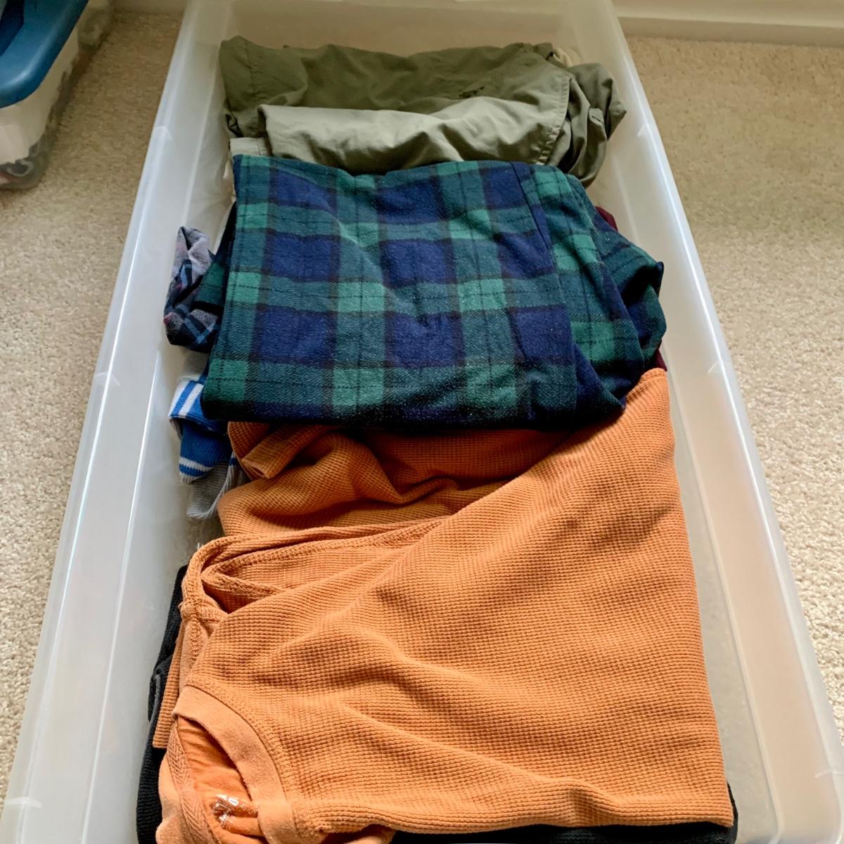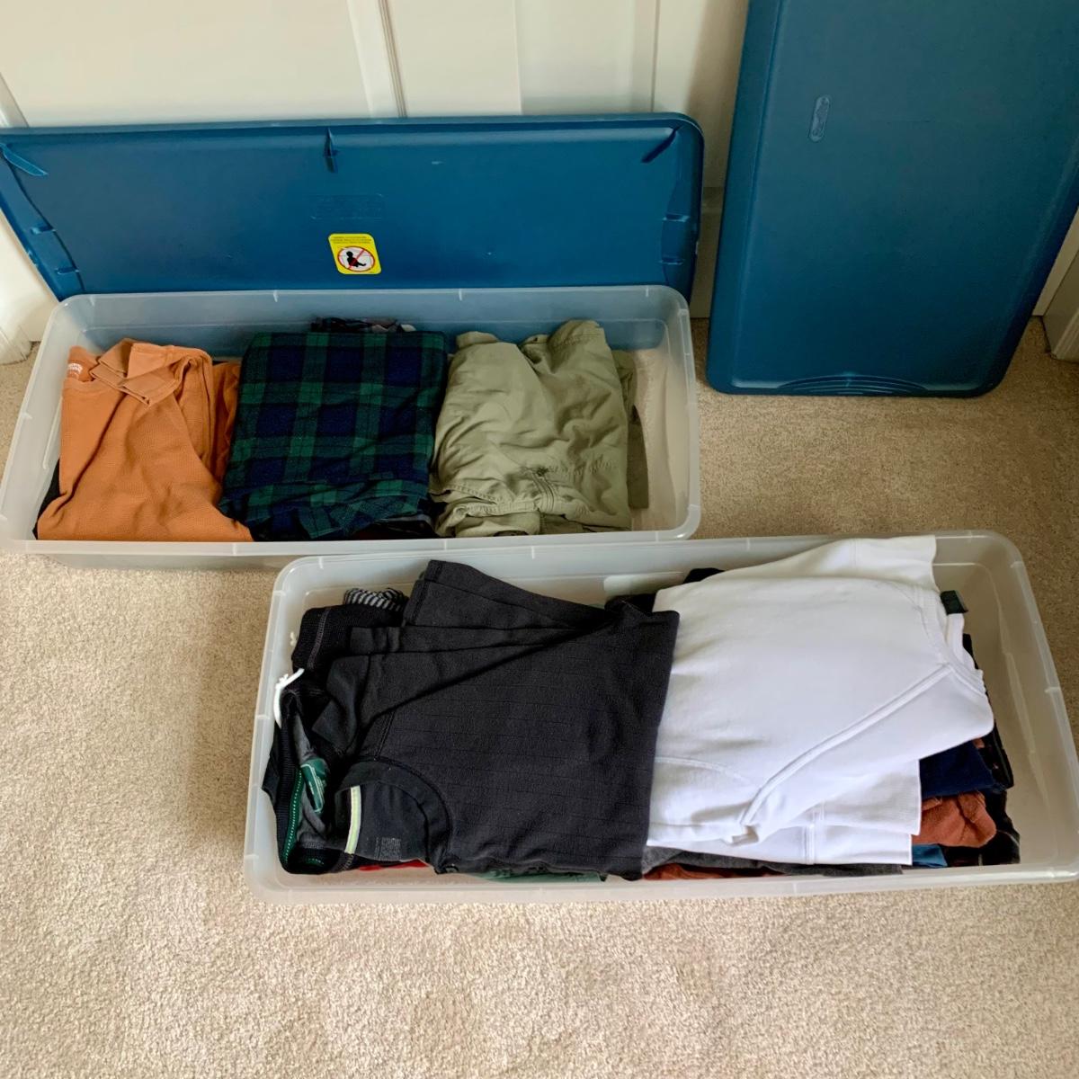 LOT 59 B: 4 Totes of Men & Women's Clothing: Columbia, Woolrich, Nautica, & More