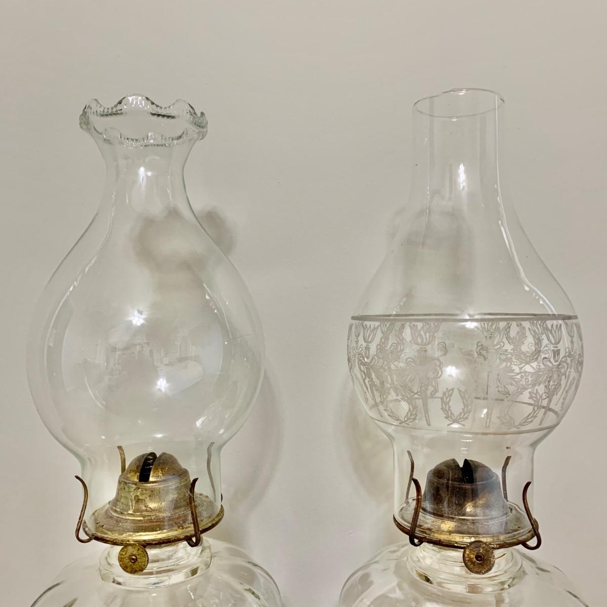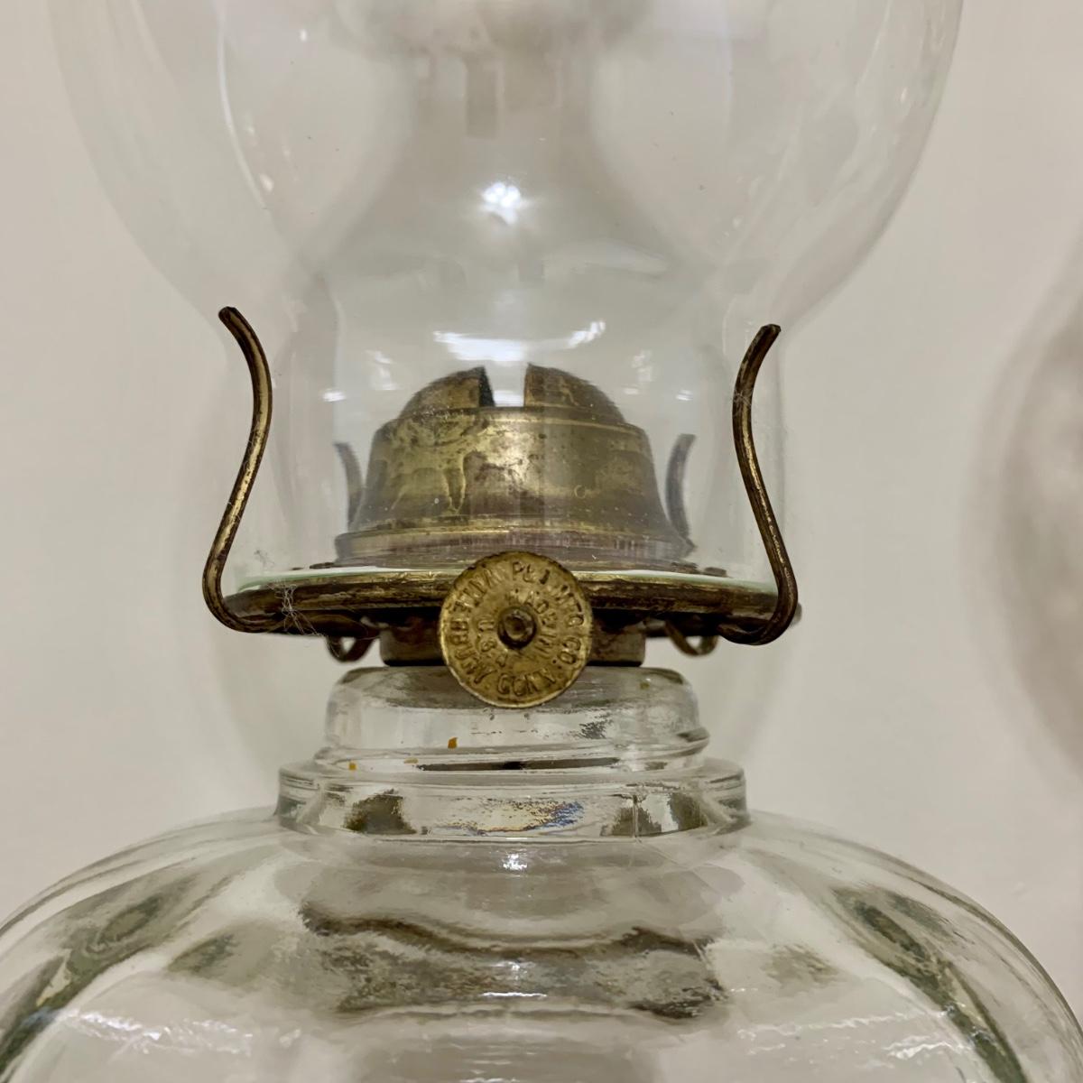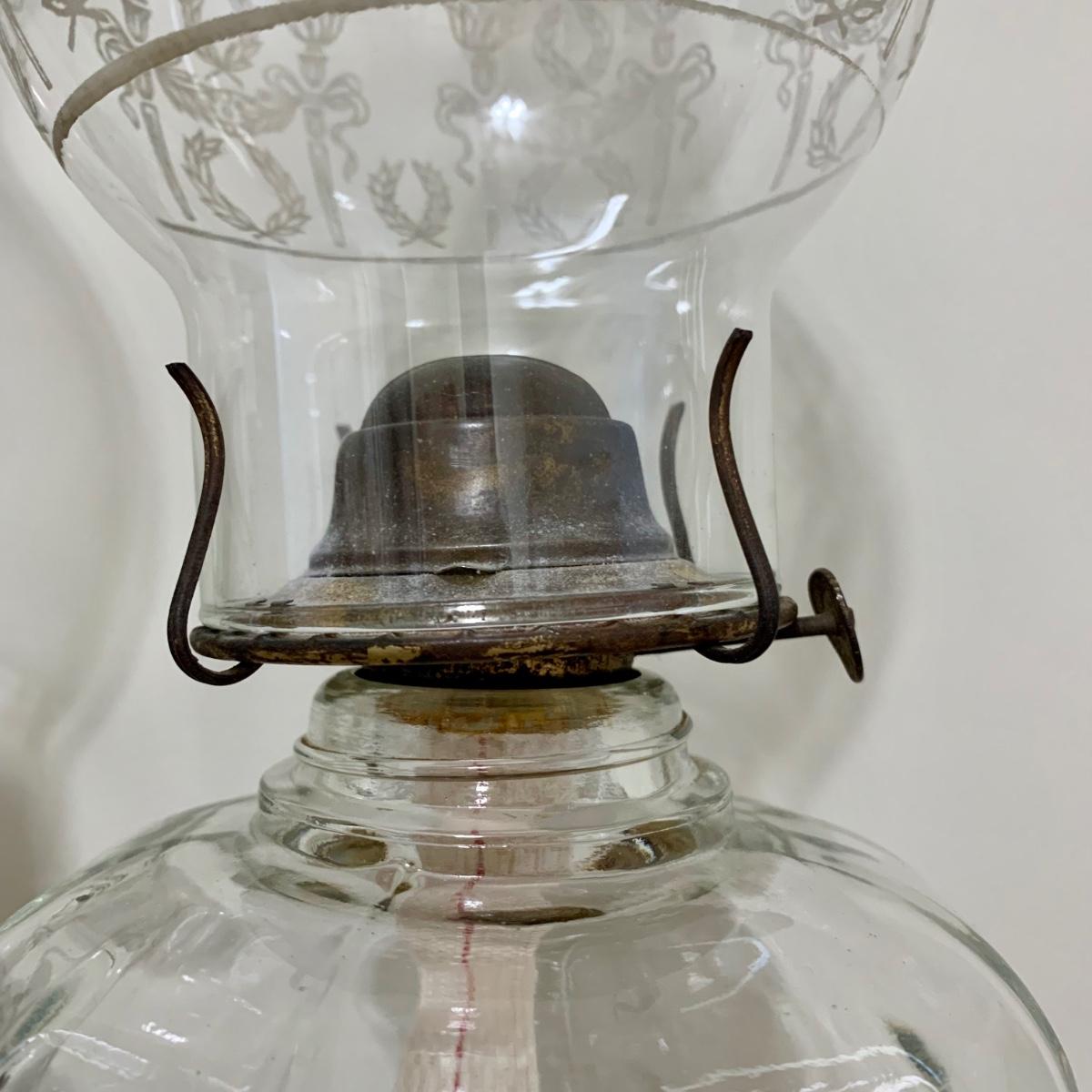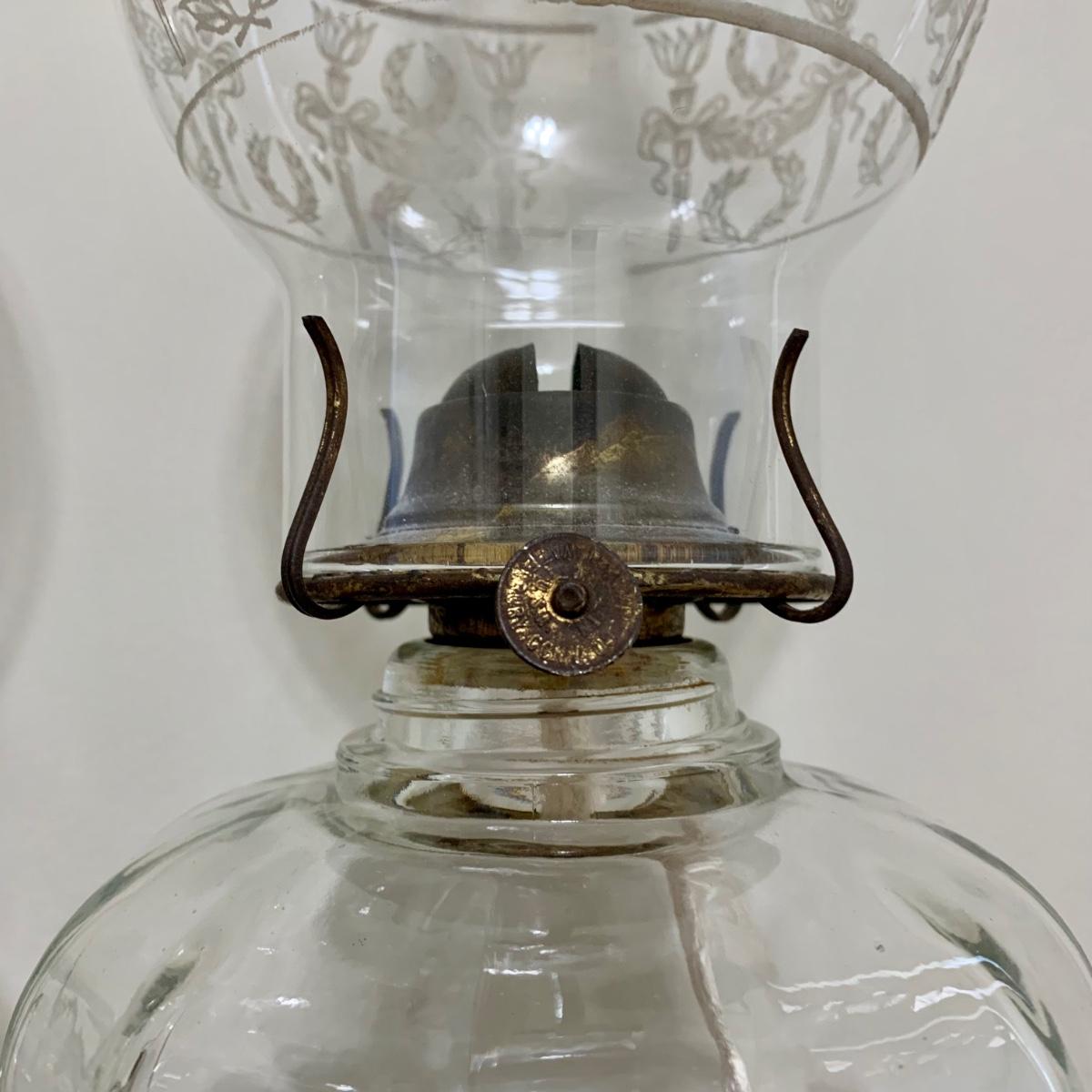 LOT 62 M: Vintage P&A Risdon Eagle Burner Oil Lamps Etched Glass Chimney & Ripple Top Chimney w/ Ribbed Glass Pedestals