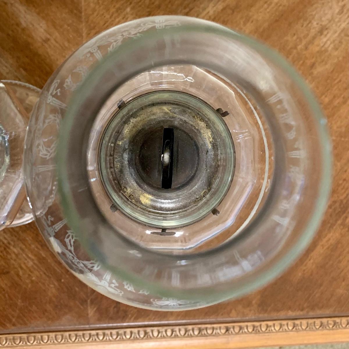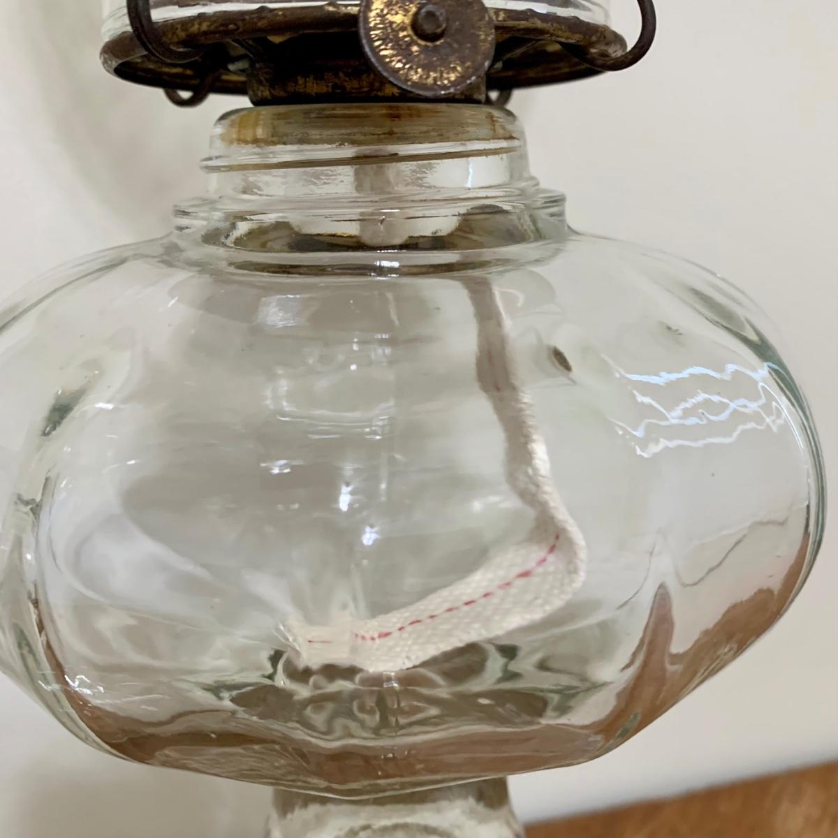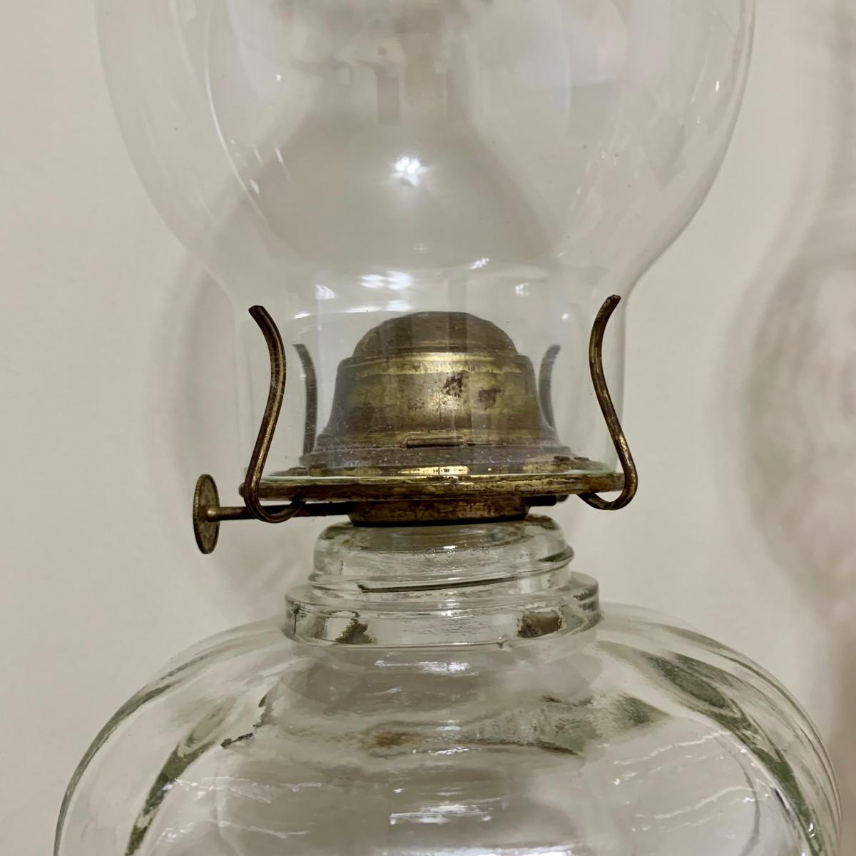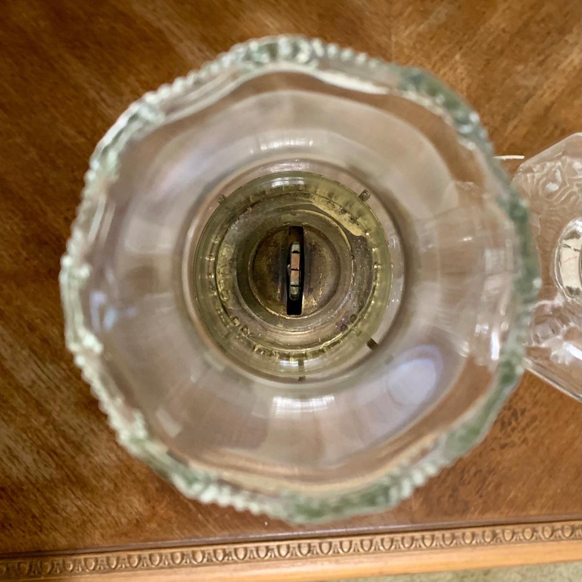 LOT 62 M: Vintage P&A Risdon Eagle Burner Oil Lamps Etched Glass Chimney & Ripple Top Chimney w/ Ribbed Glass Pedestals