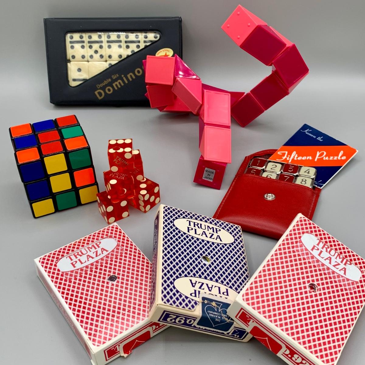 LOT 72 M: Double Six Dominoes Set, Fifteen Puzzle, Rubix Cube, & More