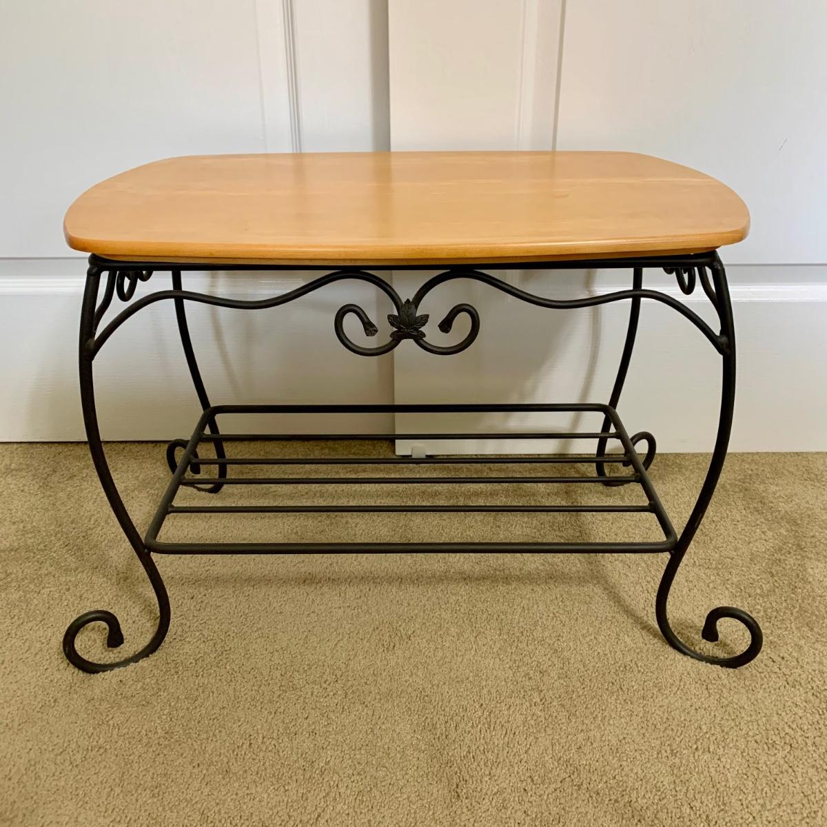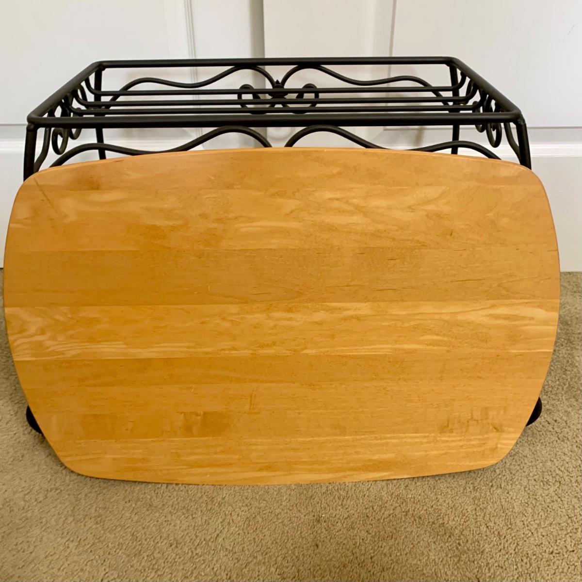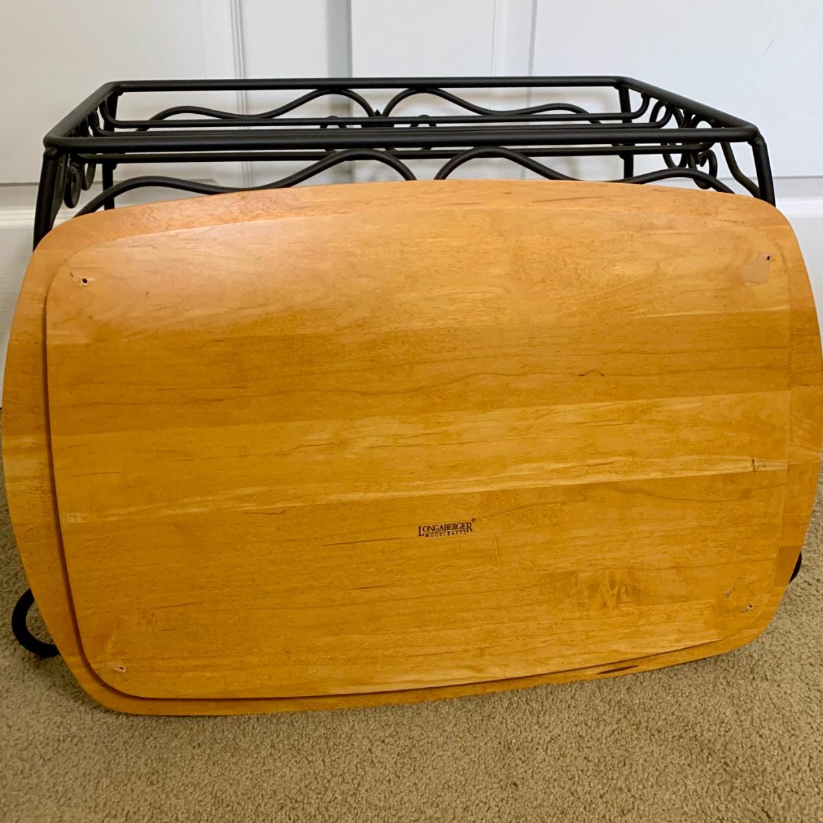 LOT 76 M: 1996 Longaberger Wrought Iron Treasure Basket Stand w/ Wooden Longaberger Table Top