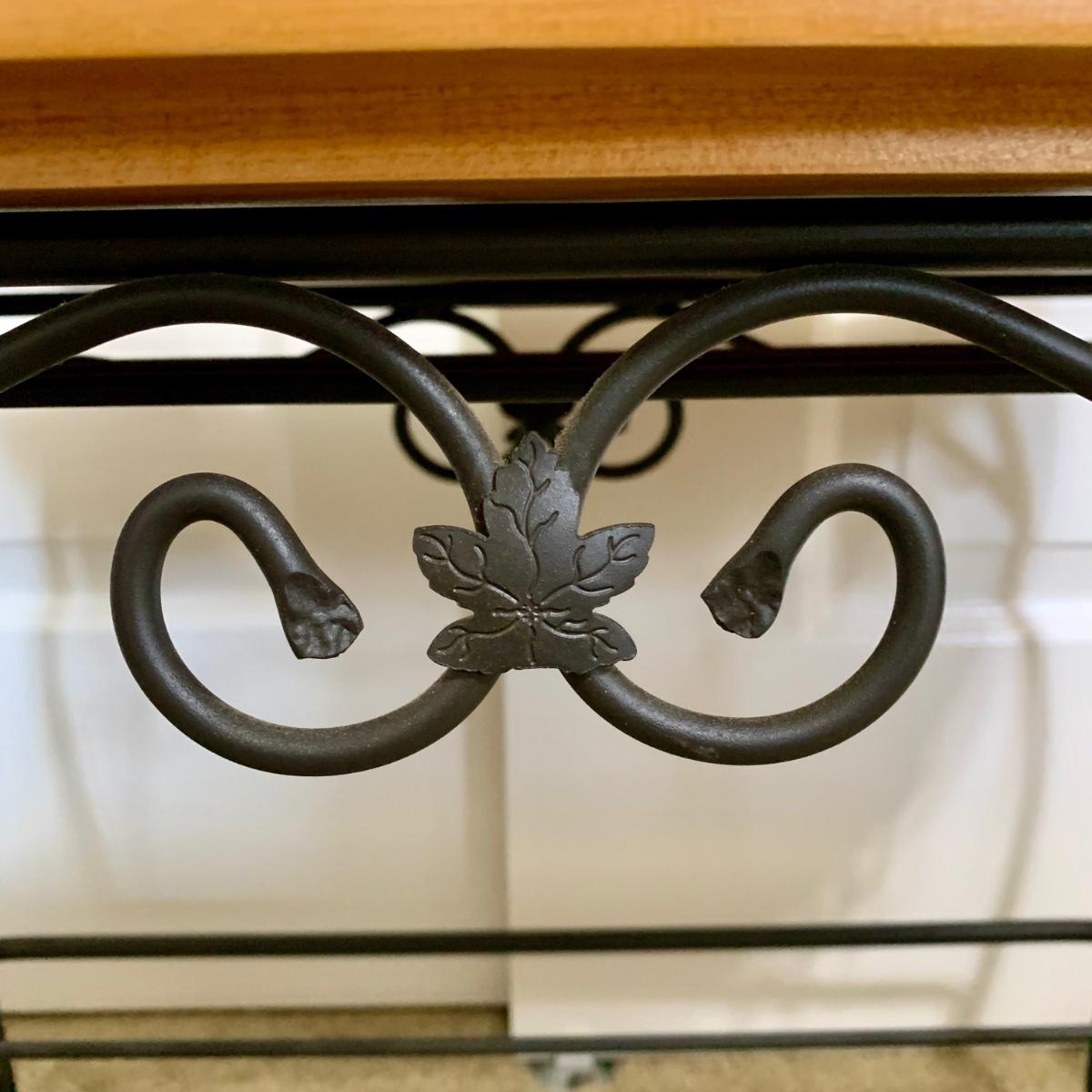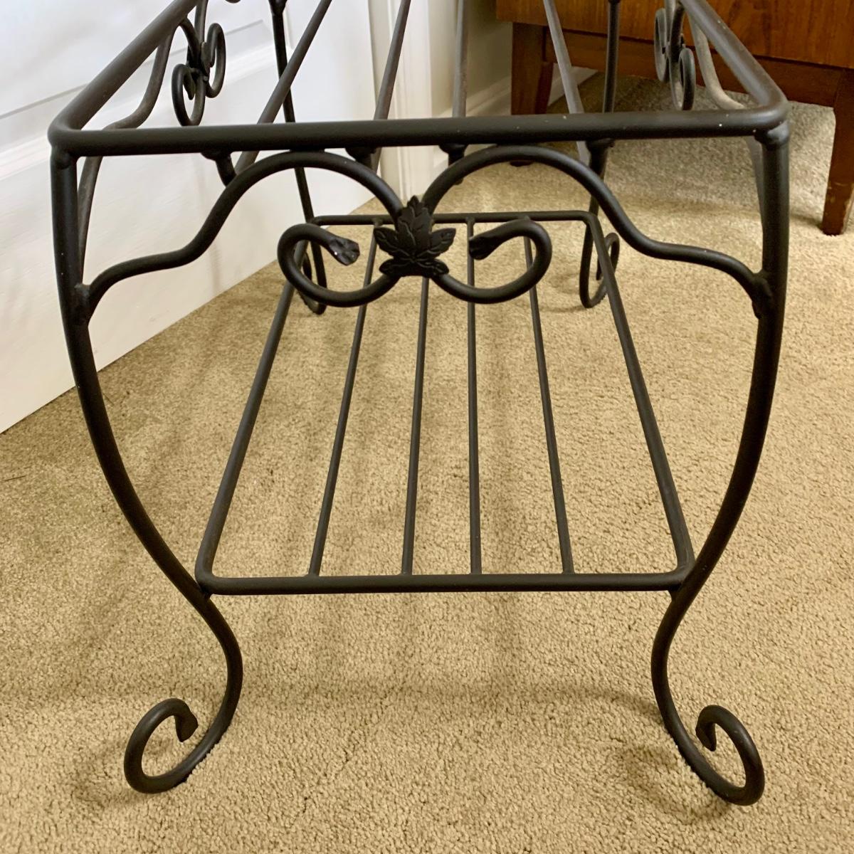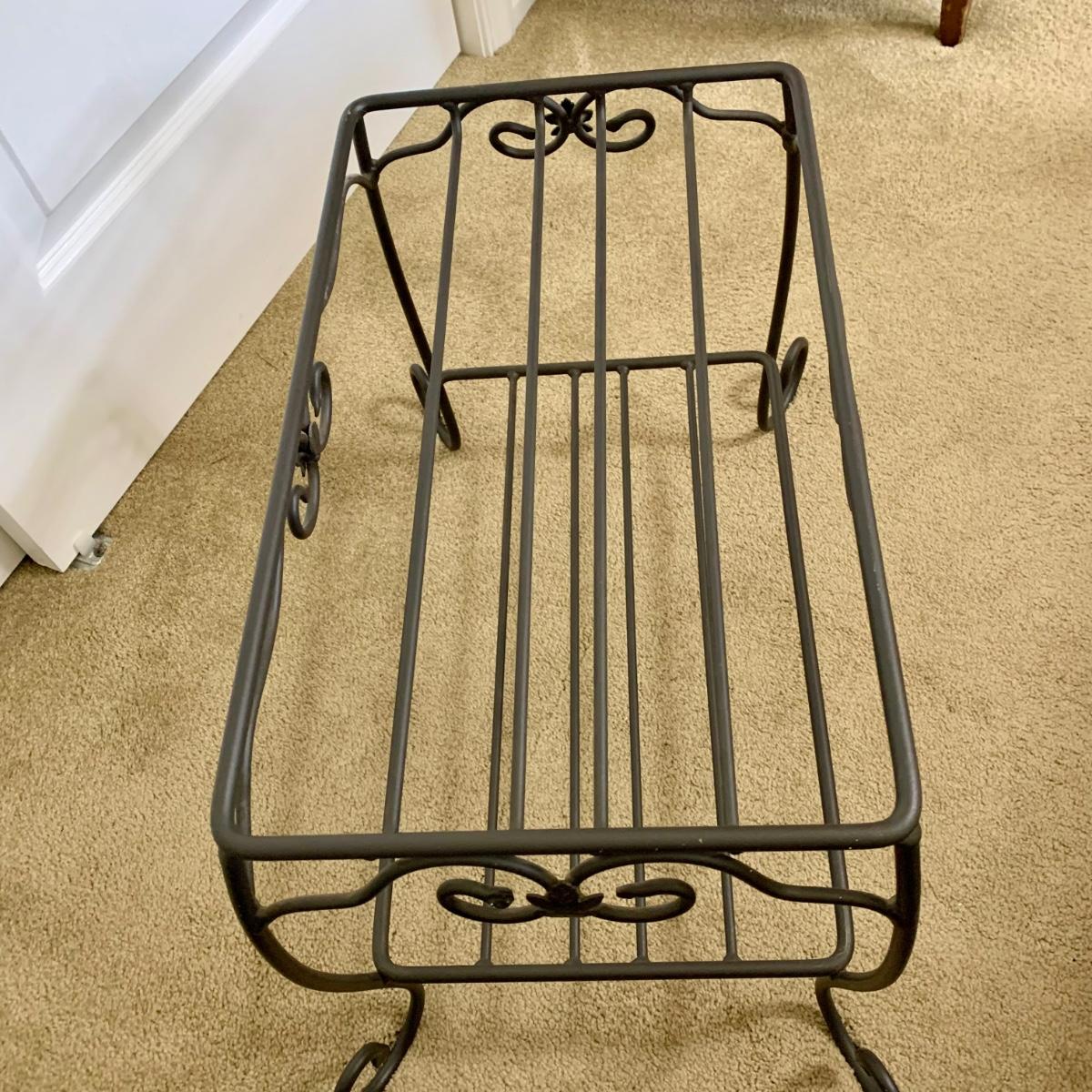 LOT 76 M: 1996 Longaberger Wrought Iron Treasure Basket Stand w/ Wooden Longaberger Table Top