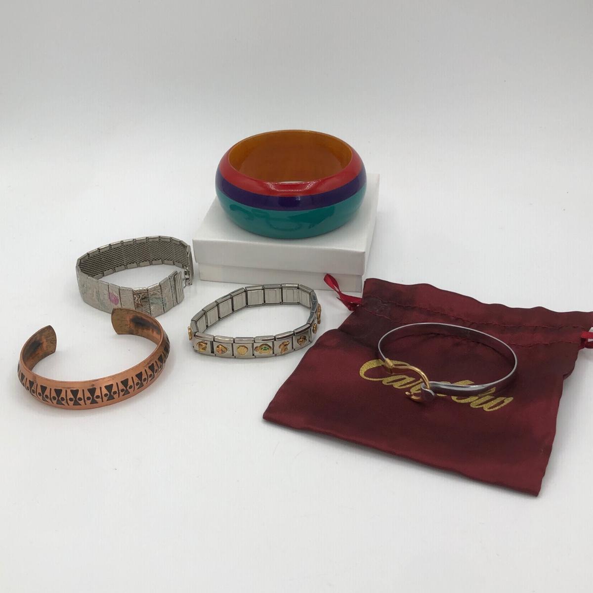 LOT 83J: Collection of Fashion Bracelets - Wood Bangle made in India, Link Charm w/ Nautical Theme & More