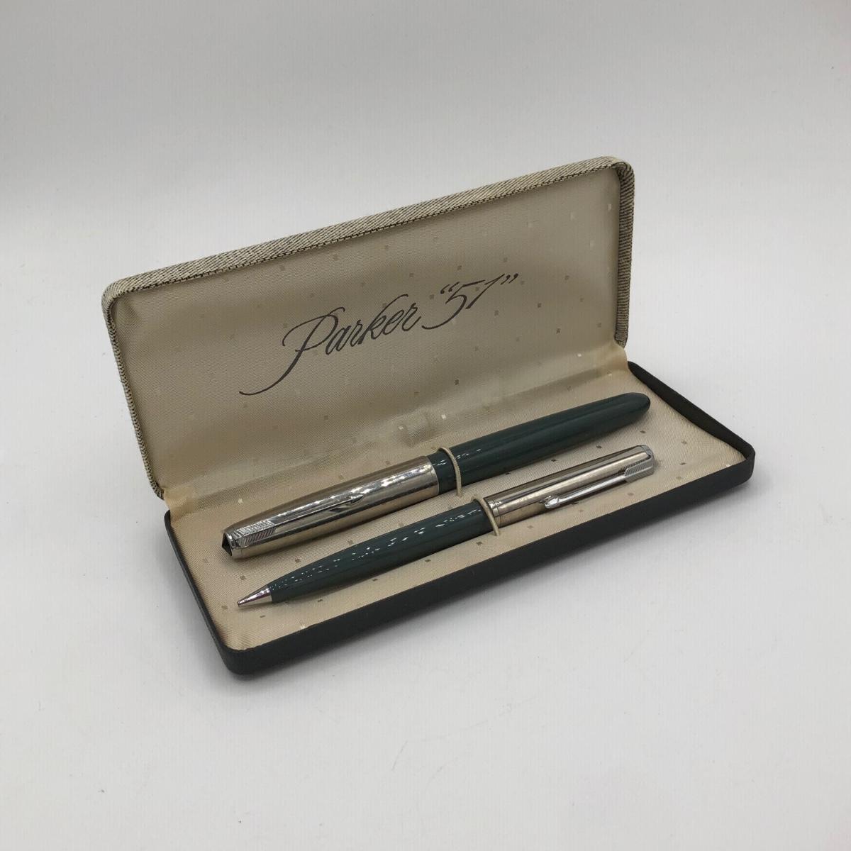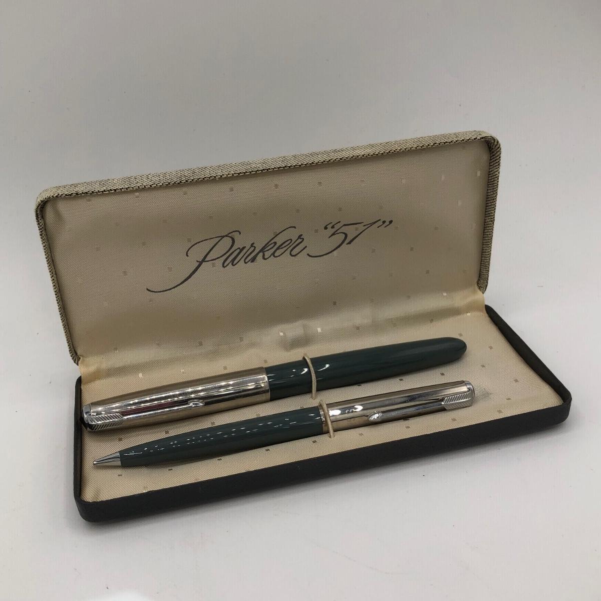 LOT 88J: Vintage Parker 51 Fountain Pen & Mechanical Pencil Set in Original Case