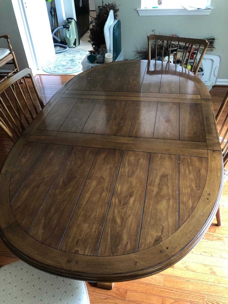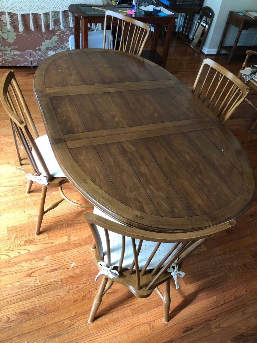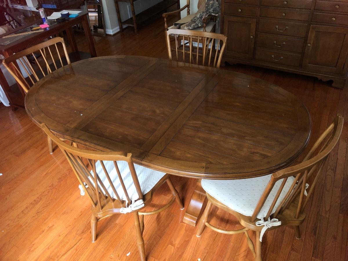 LOT 95L: Vintage Drexel Heritage Furnishings Wooden Dining Table w/ Leaf & 4 Chairs