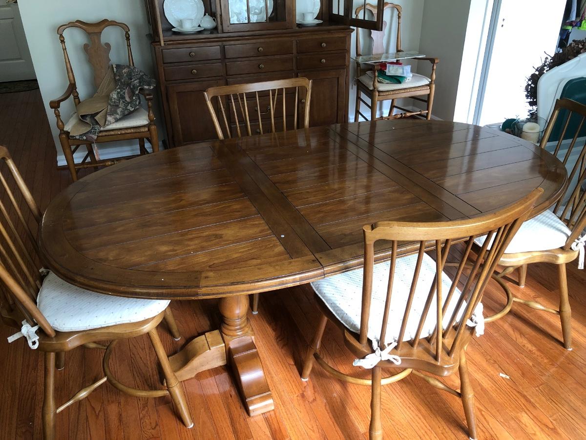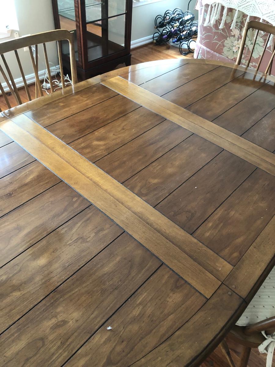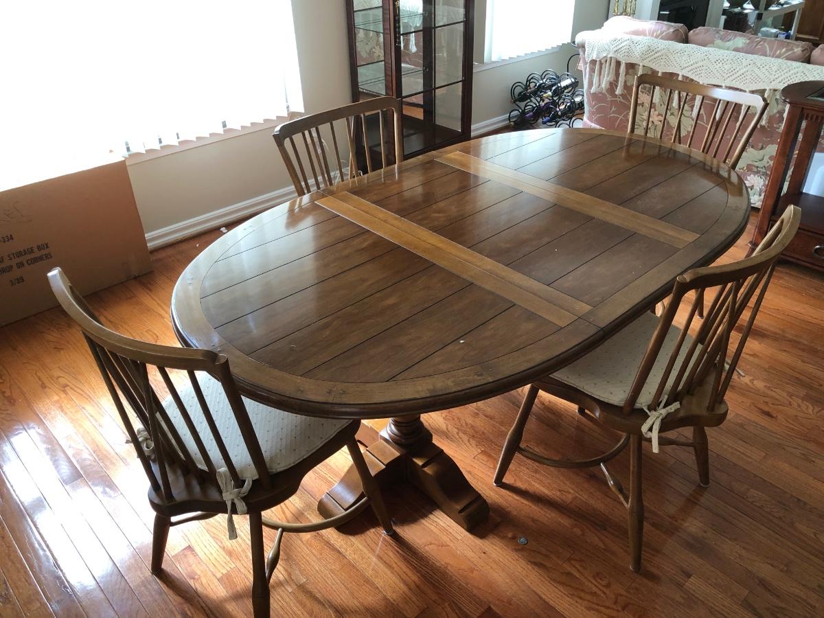 LOT 95L: Vintage Drexel Heritage Furnishings Wooden Dining Table w/ Leaf & 4 Chairs