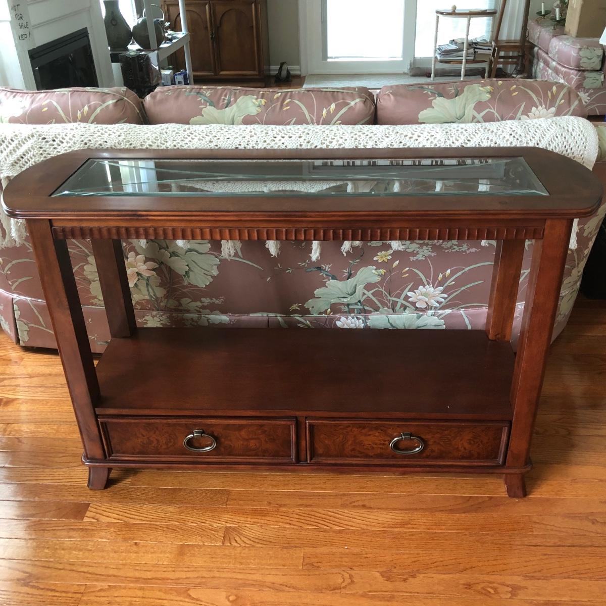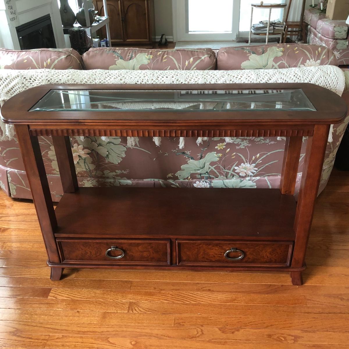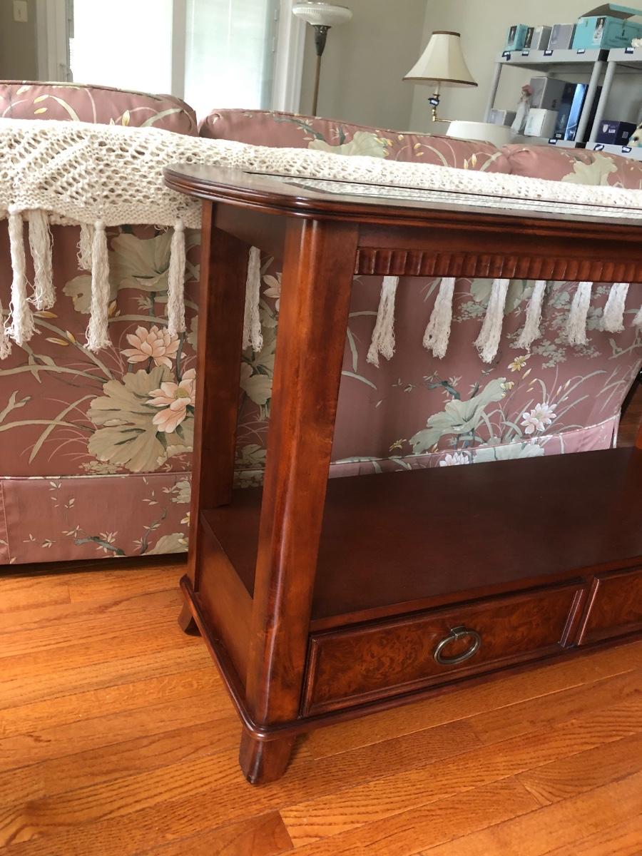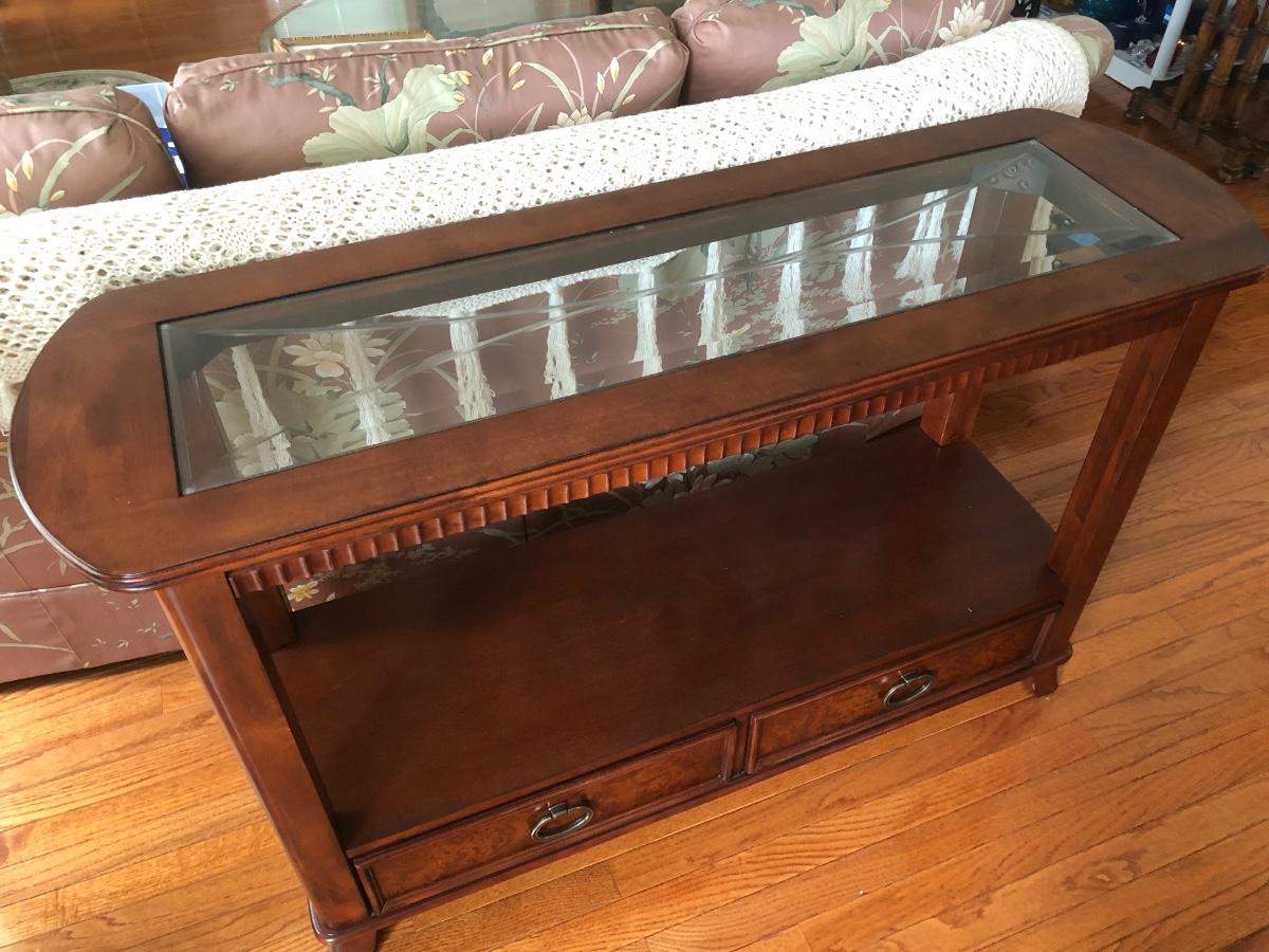 LOT 96L: Dorothy’s Furniture Glass Top Sofa Table
