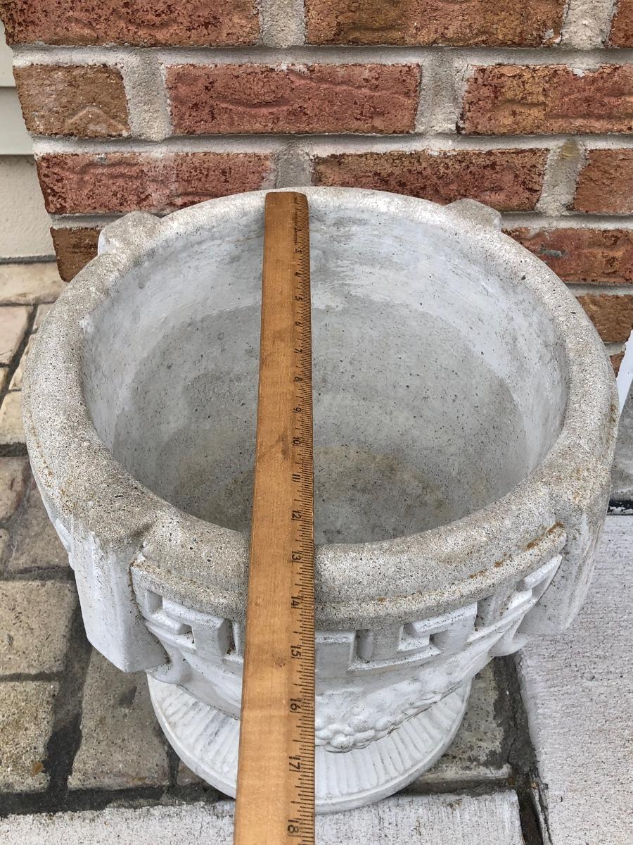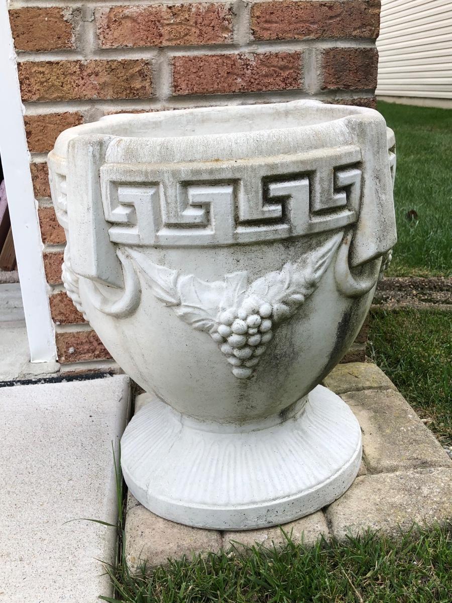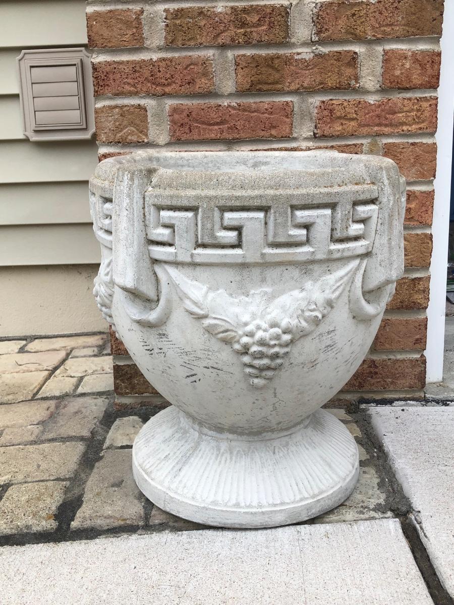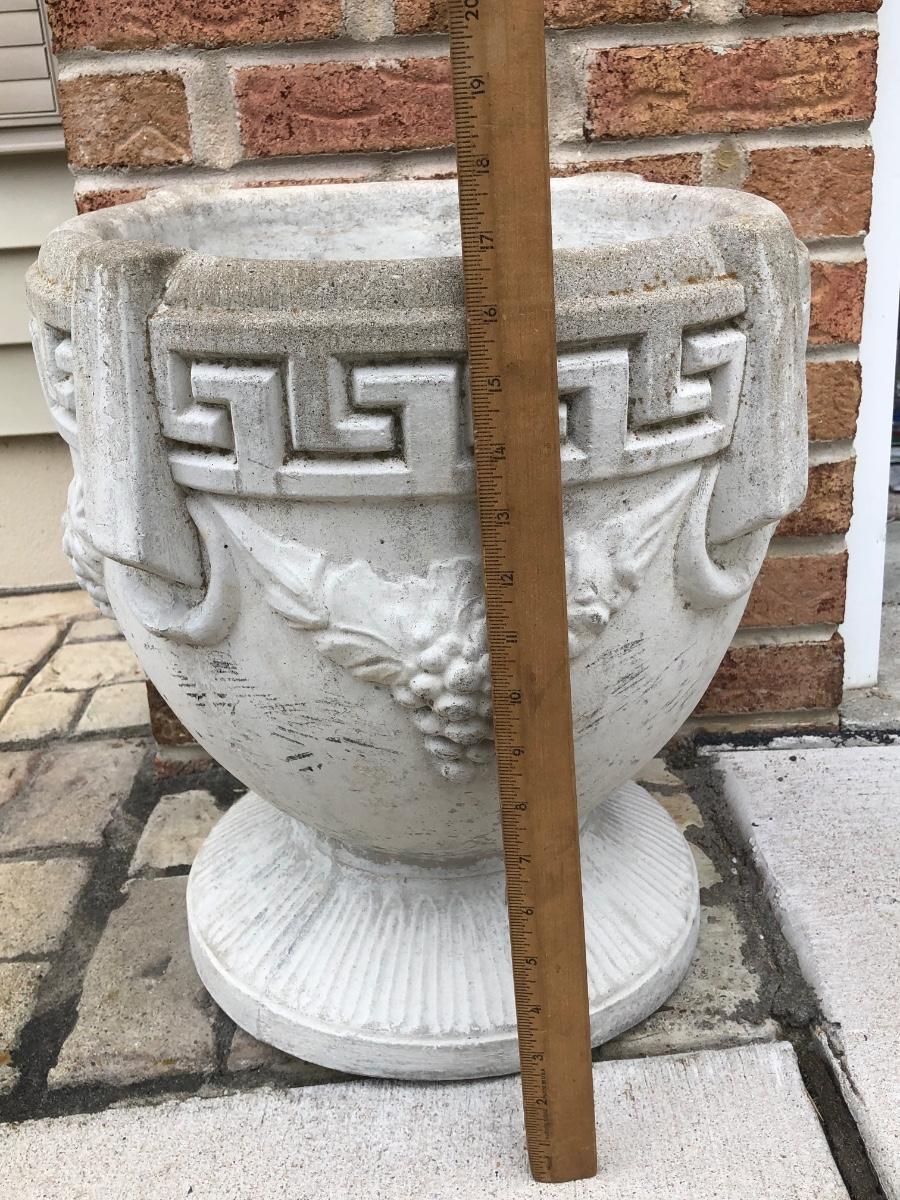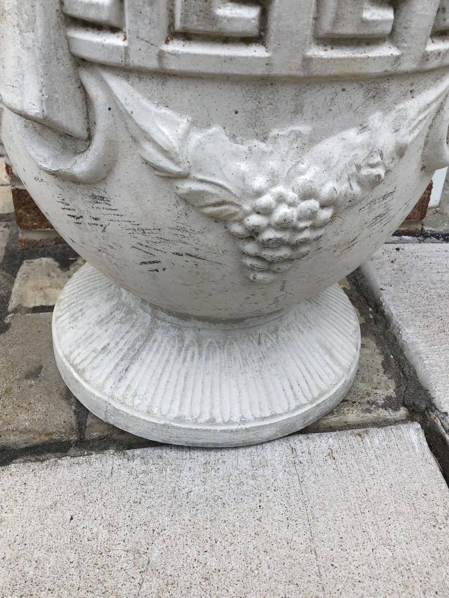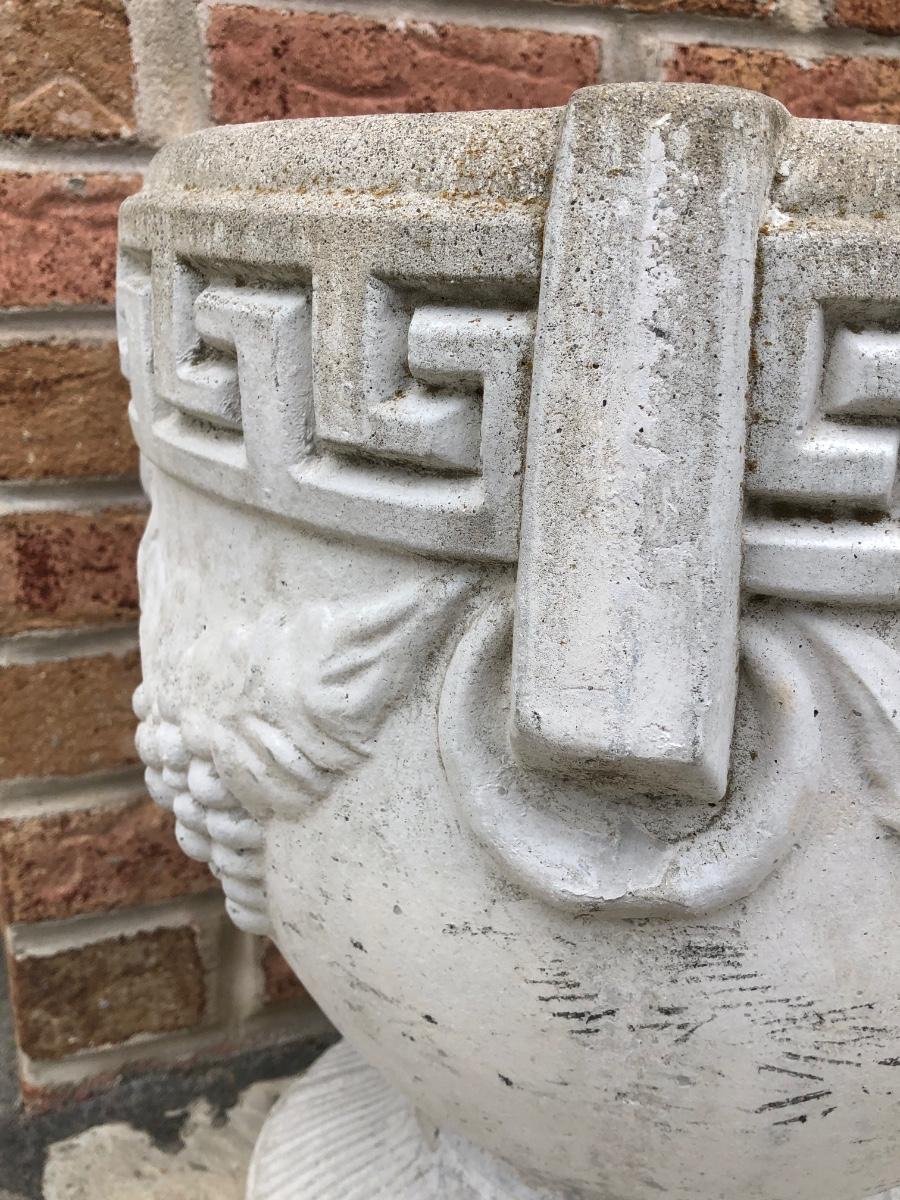 LOT 108P: Pair of Concrete Pedestal Planters w/ Grapes & Greek Key Design