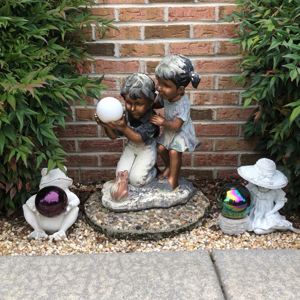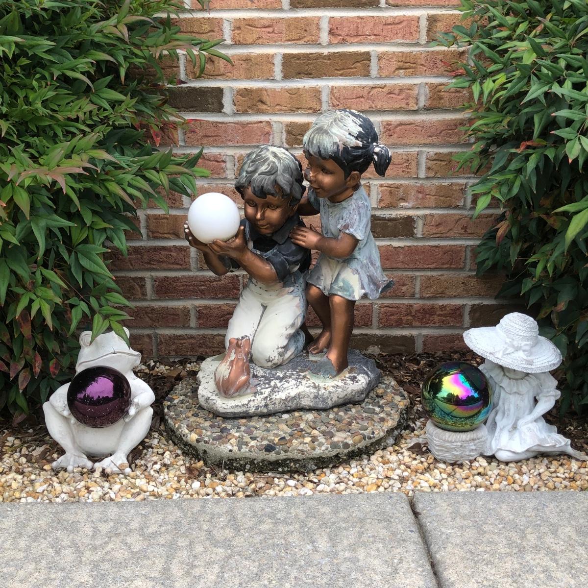 LOT 109P: Gazing Ball Garden Outdoor Statues - Children & Frog