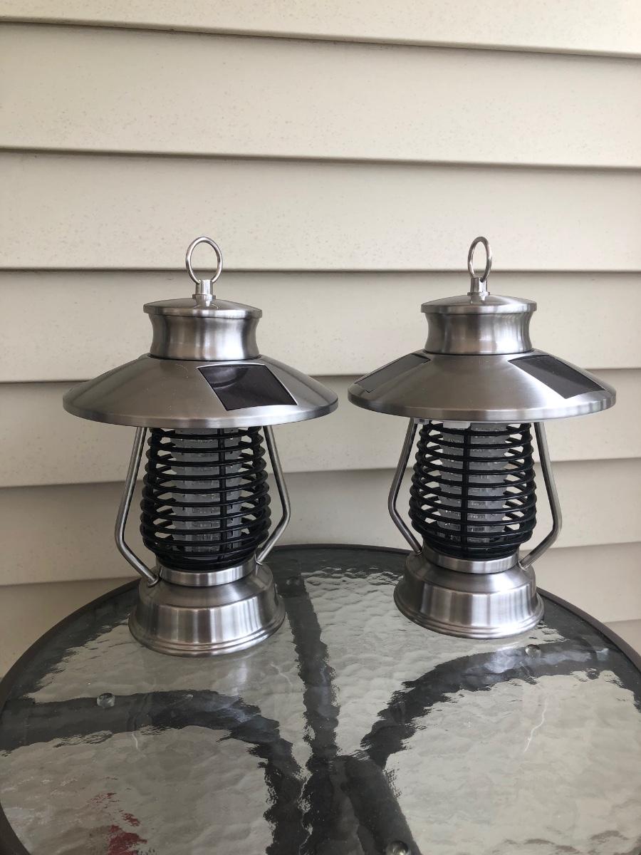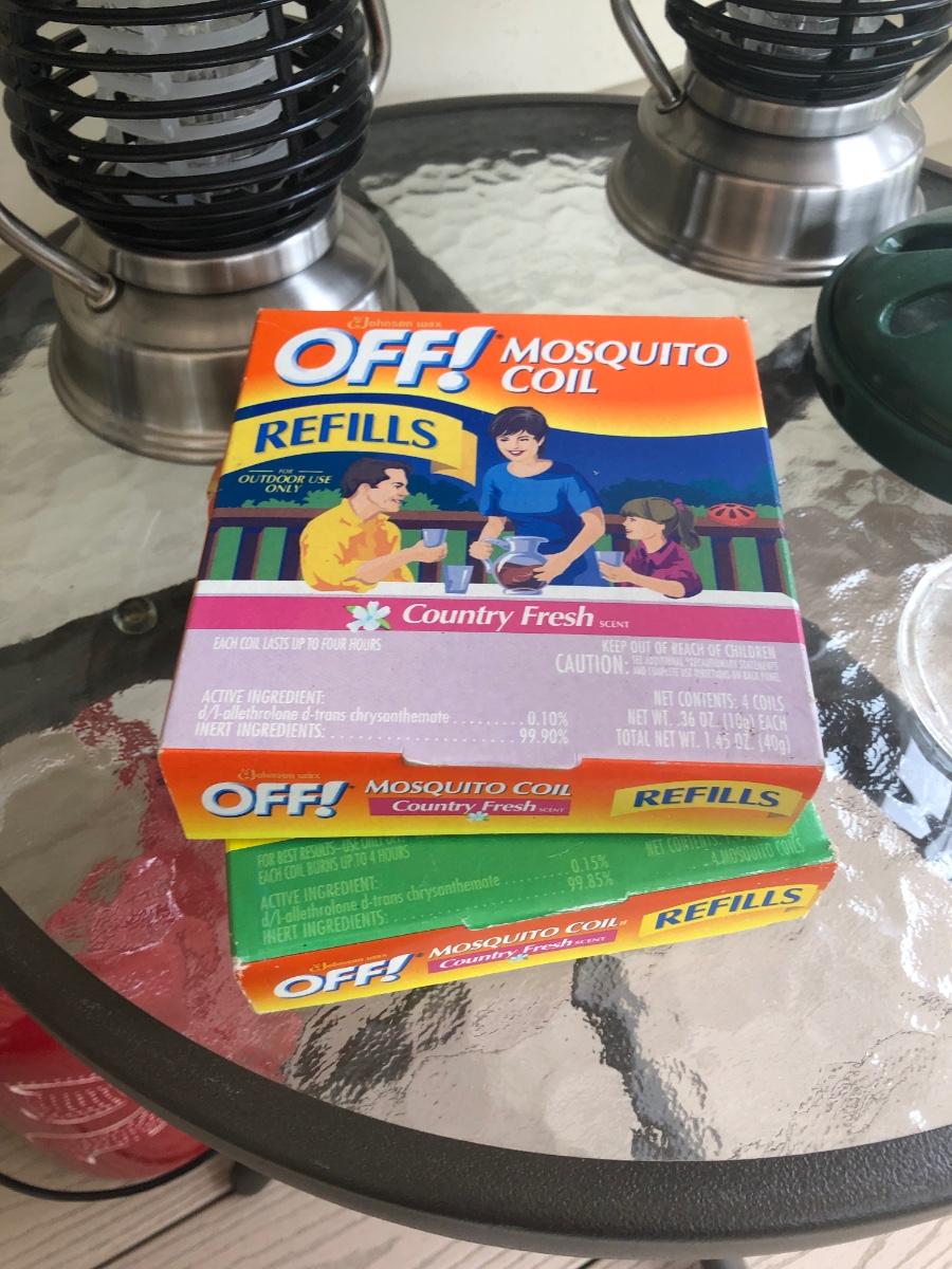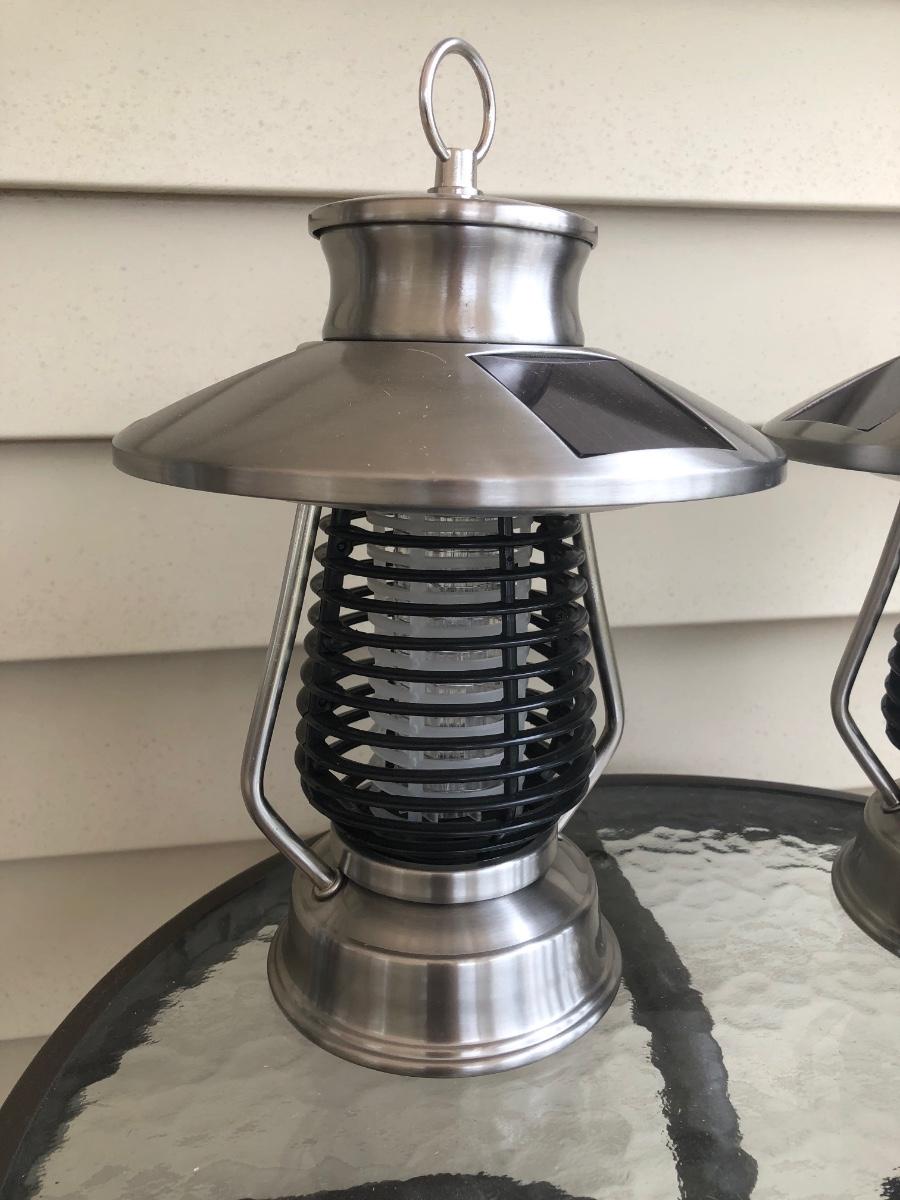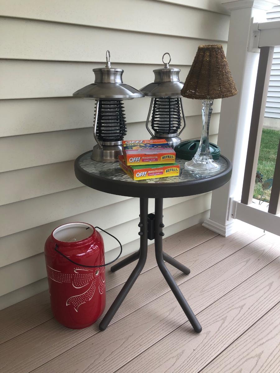 LOT 110P: Patio Essentials - Glass Top Table, Bug Zapper Lanterns, OFF! Mosquito Coil & Refills