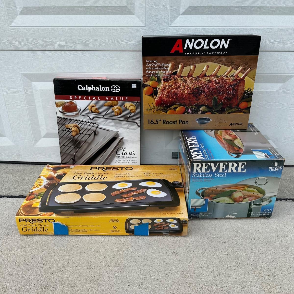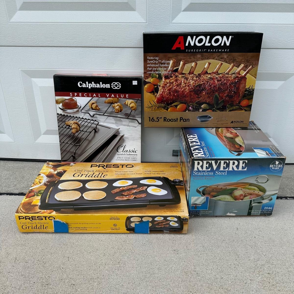 LOT 166G: Kitchen Essentials! Presto Griddle, Anolon 16.5” Roast Pan & More