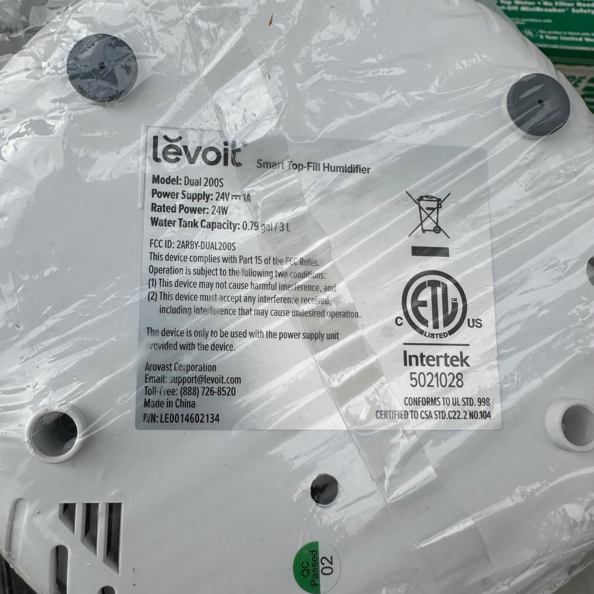 LOT 168G: Duracraft Humidifier w/ Box & Levoit Smart Top Fill Humidifier