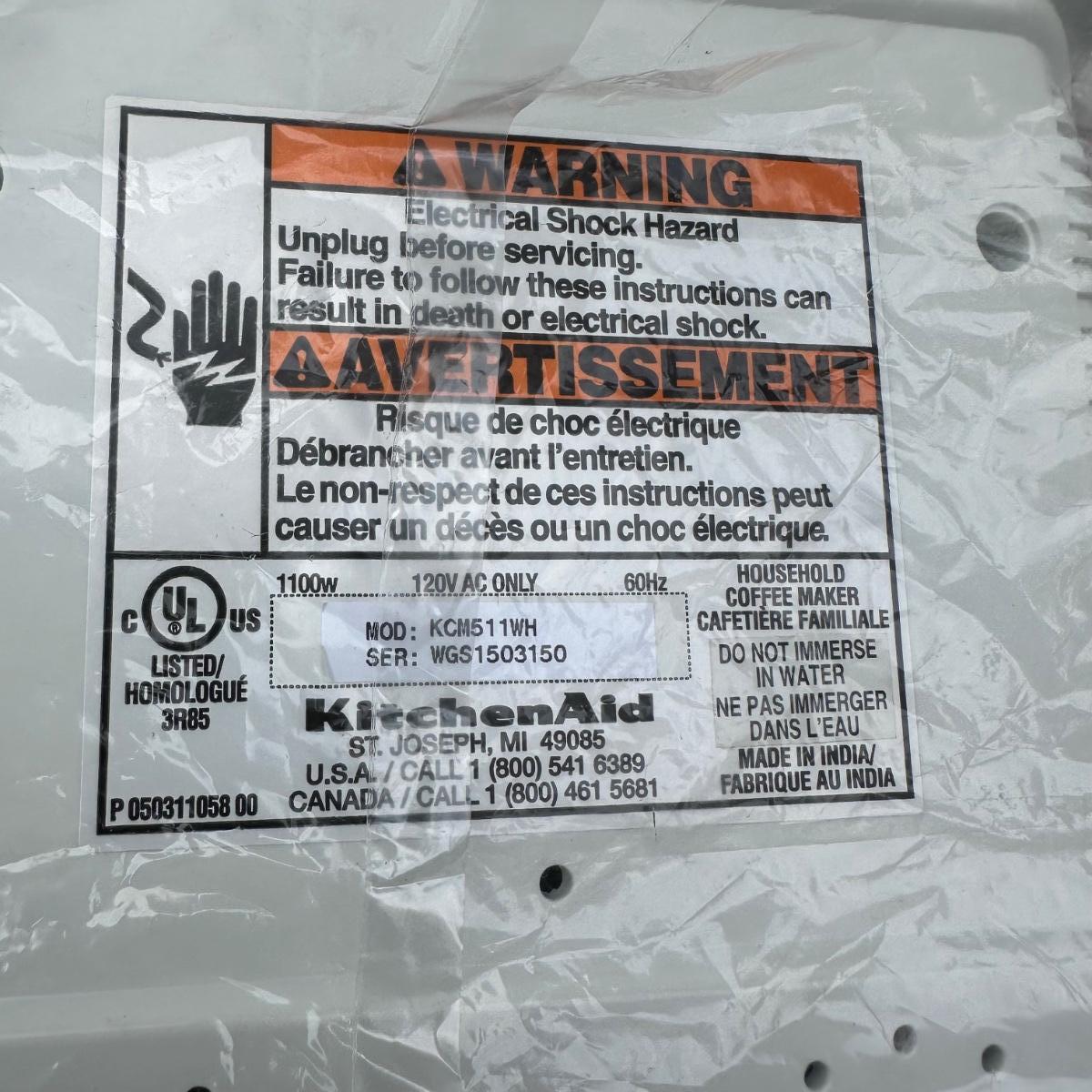 LOT 169G: 2 KitchenAid Coffee Makers - KCM2220B KCM511WH