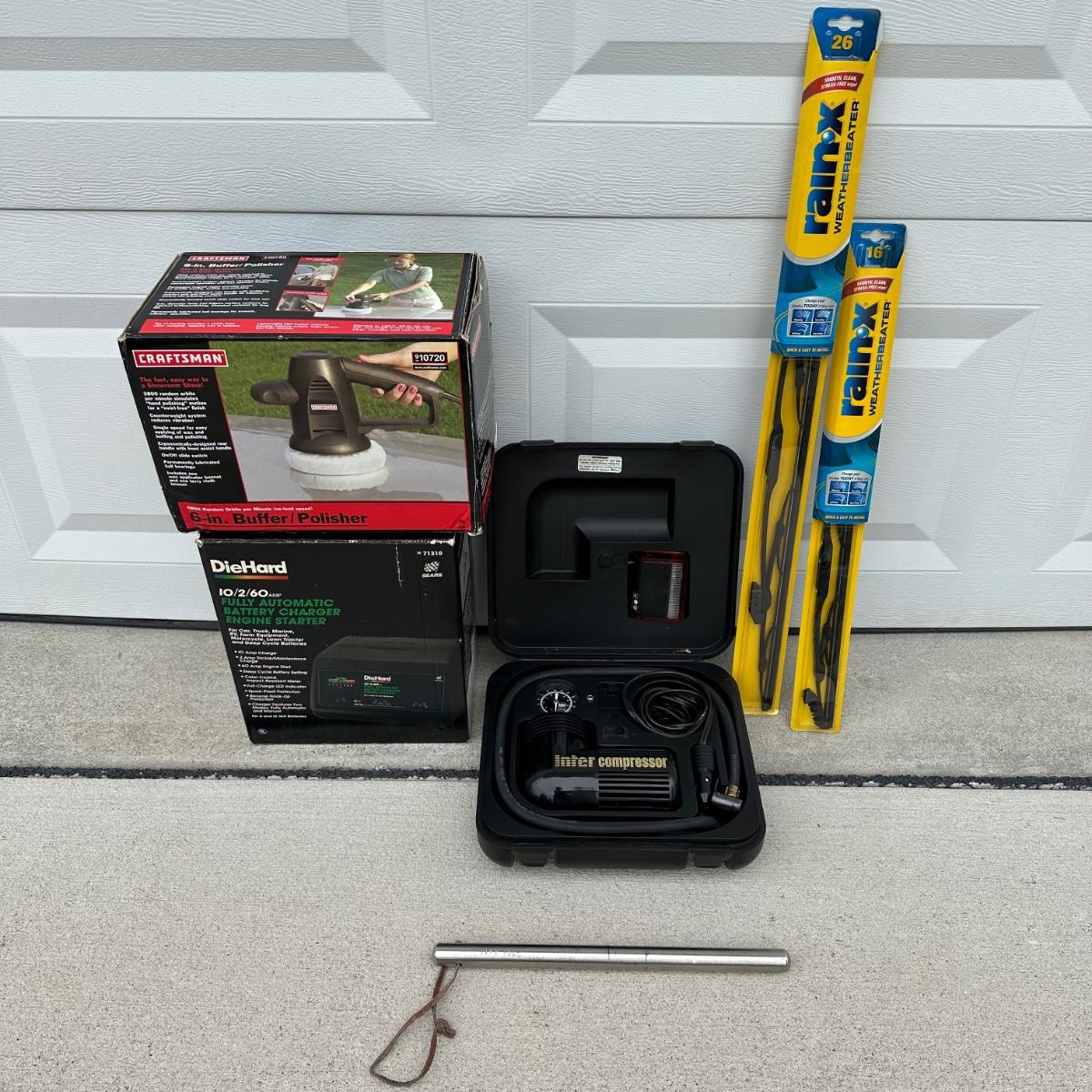 LOT 179G: Craftsman 6” Buffer/Polisher 910720, DieHard Fully Automatic Battery Charger 71310, RainX Rain Repellent Windshield Wipers & More