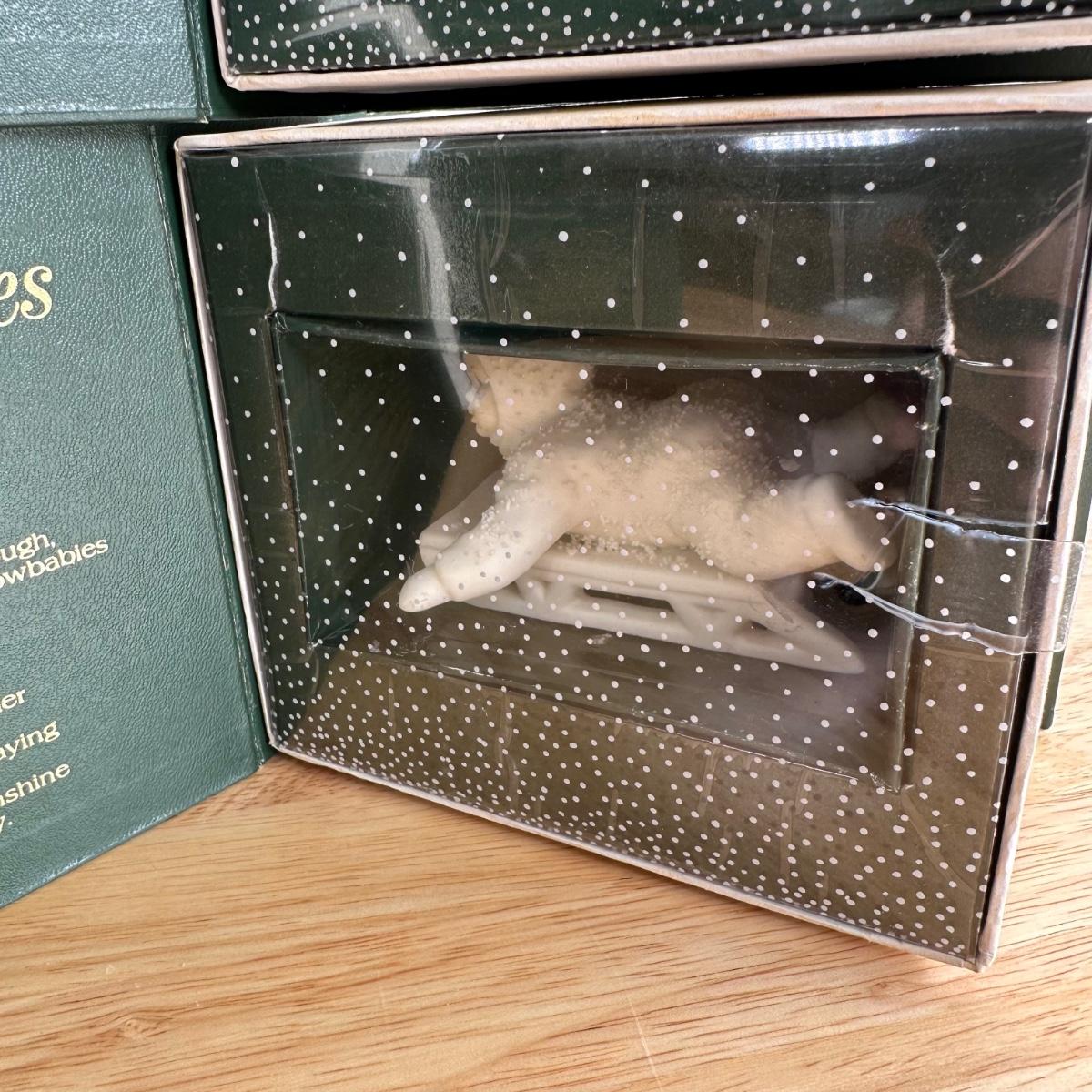 7 SnowBabies w/ box & 1 without the box Please see all pictures as they are the best representation of the items. The pictures show condition, measurements if taken, and what is included in the lot. Due to the large amount that we photograph and the time frame, we are not always able to take measurements. All items unless noted, are pre-owned and have been used. If you purchased furniture, you must bring help. We do not allow one person to carry large furniture out on their own. Bring help, tools and a truck for the safety of our client’s homes, and your personal safety. Any damages that result to the property including walls, and floors due to moving of the furniture will be charged to the buyer. Company policy. Thank you.