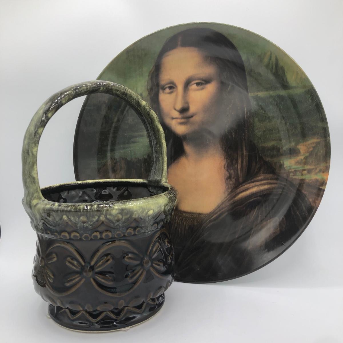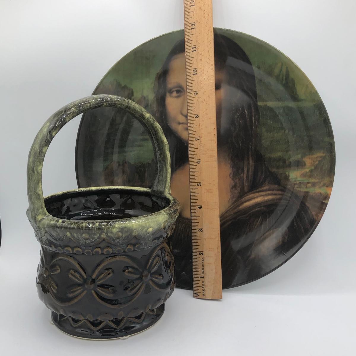 LOT 208L: House of Goebel Leonardo da Vinci Mona Lisa Plate & Vintage Hull USA Art Pottery Basket Planter