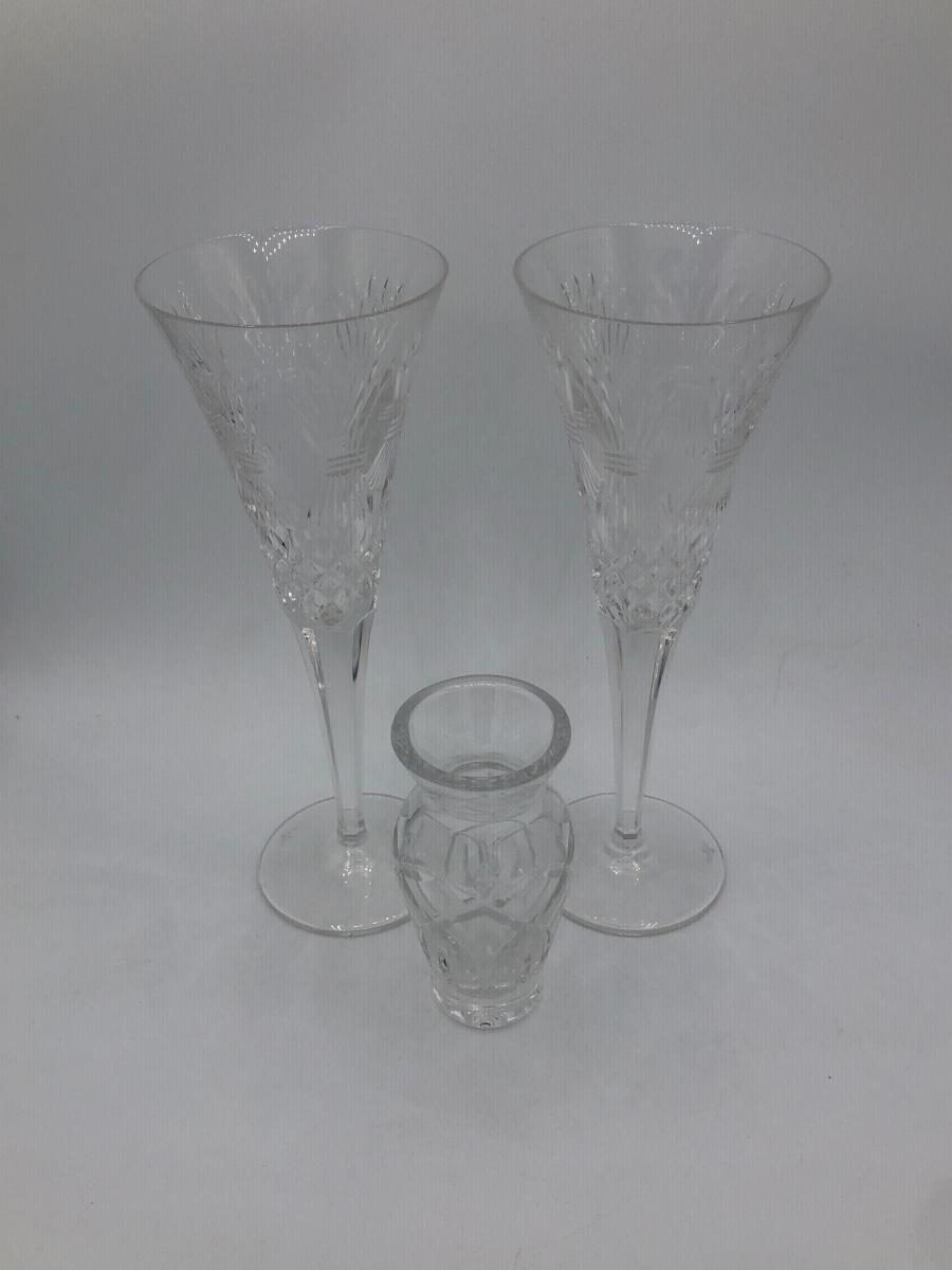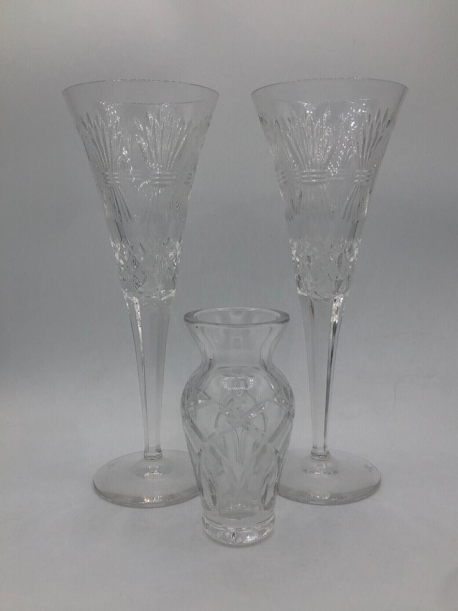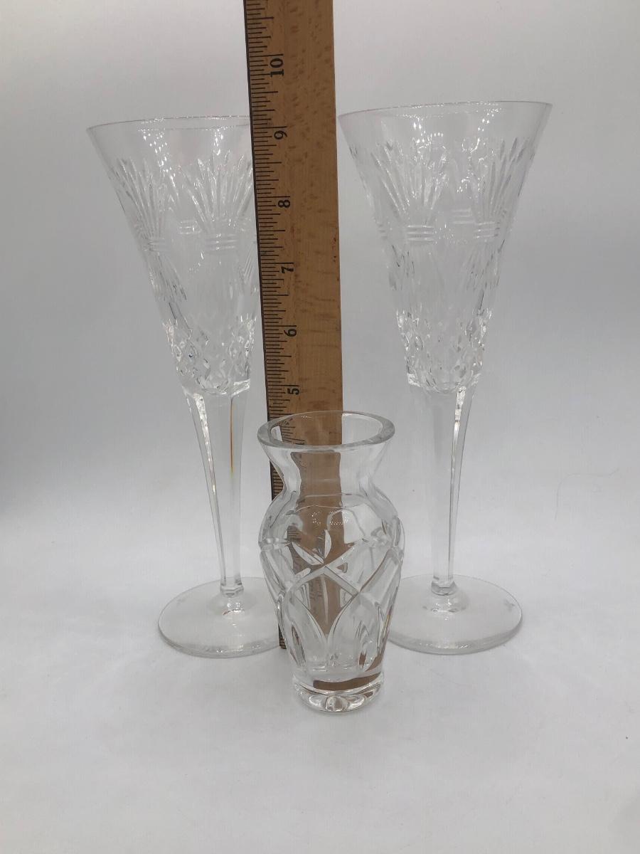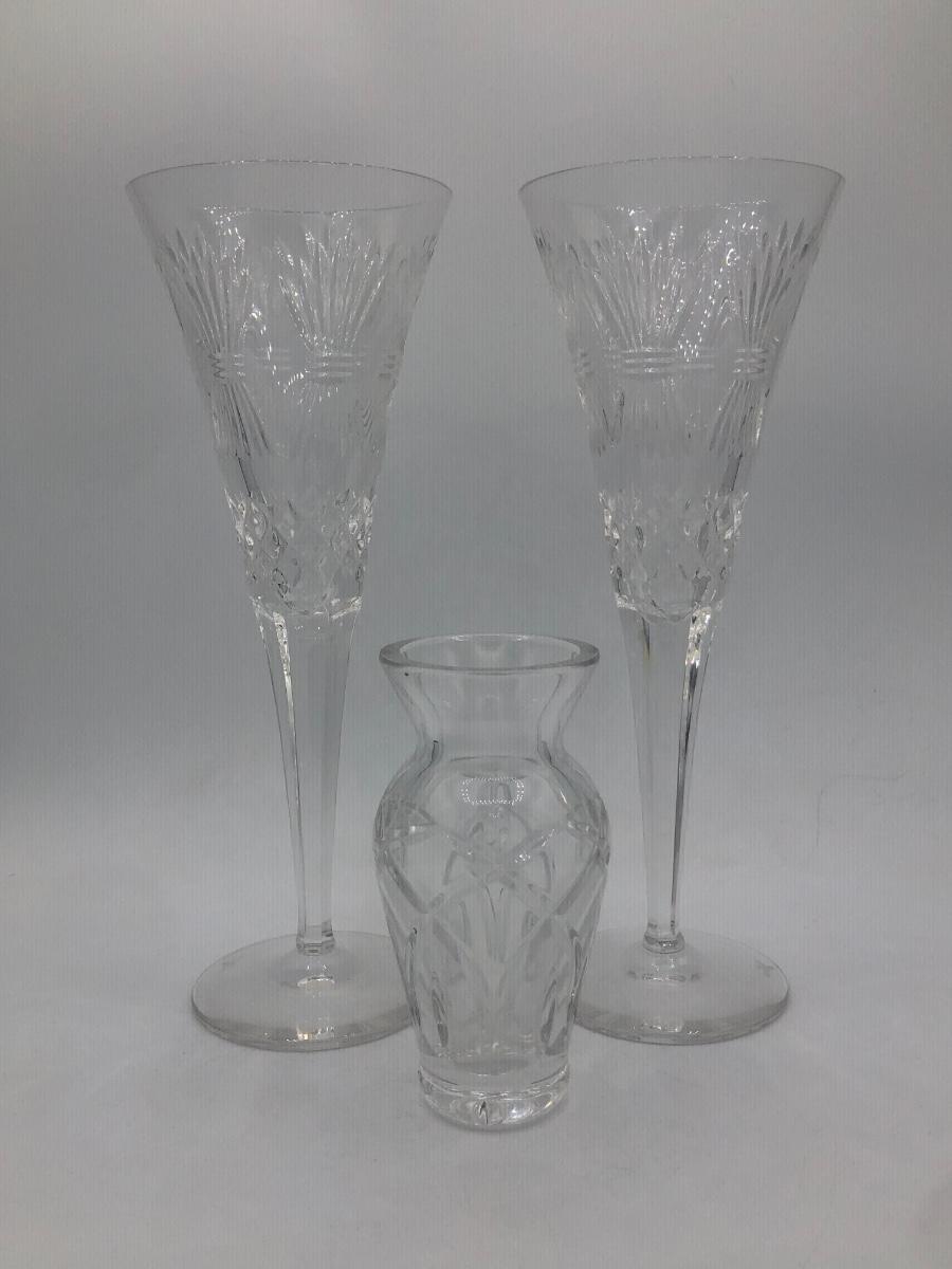 LOT 212L: Waterford Crystal Collection - Fluted Stemmed Glasses (2) & Bud Vase